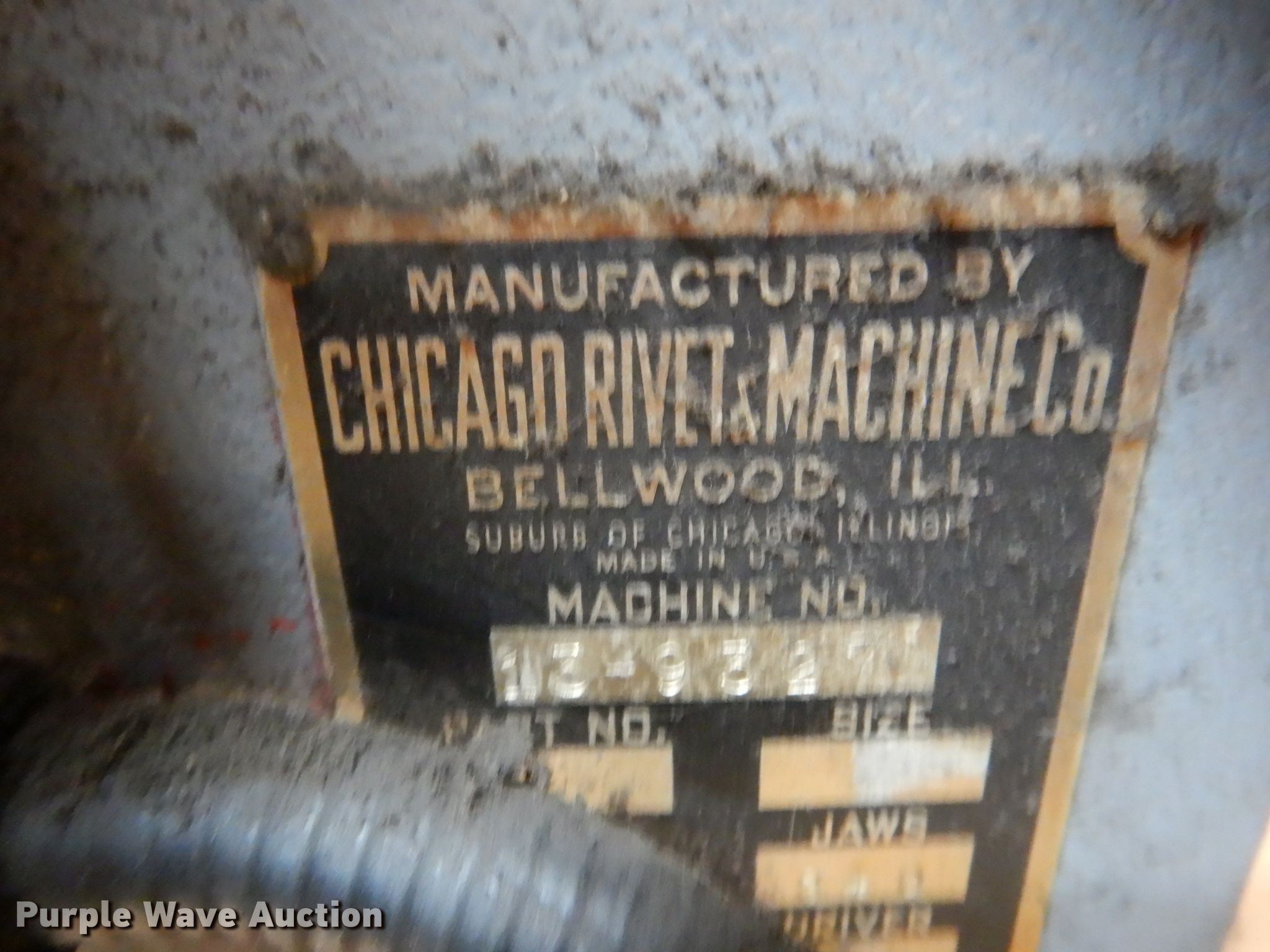Purple Wave is selling a used Tools in Missouri. This item is a Chicago Rivet and Machine 13-9327 riveter with the following: 340 jaws, Electric motor