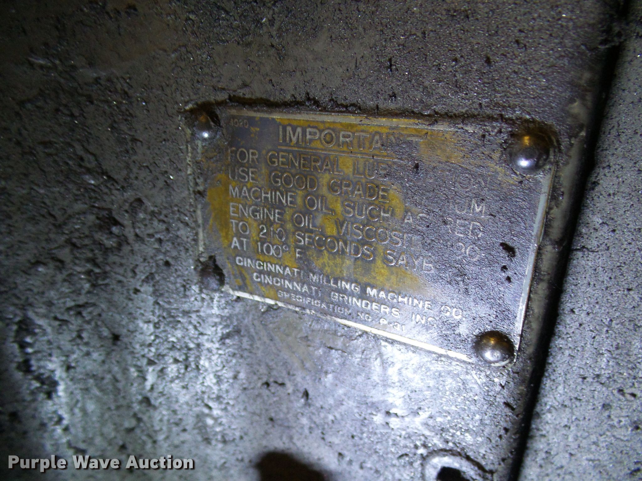 Purple Wave is selling a used Tools in Missouri. This item is a Cincinnati grinder with the following: Variable speed