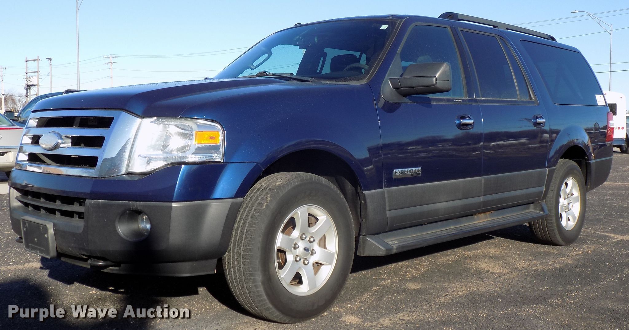Purple Wave is selling a used Passenger Vehicle in Nebraska. This item is a 2007 Ford Expedition EL XLT SUV with the following: 168,586 miles on odometer, 5.4L V8 SOHC 16V gas engine, Automatic transmission, Four wheel drive, AC and heat, Cruise, Power windows, locks, and seat, Sunroof, P265/70R17 tires, Owners manual, Cracked windshield