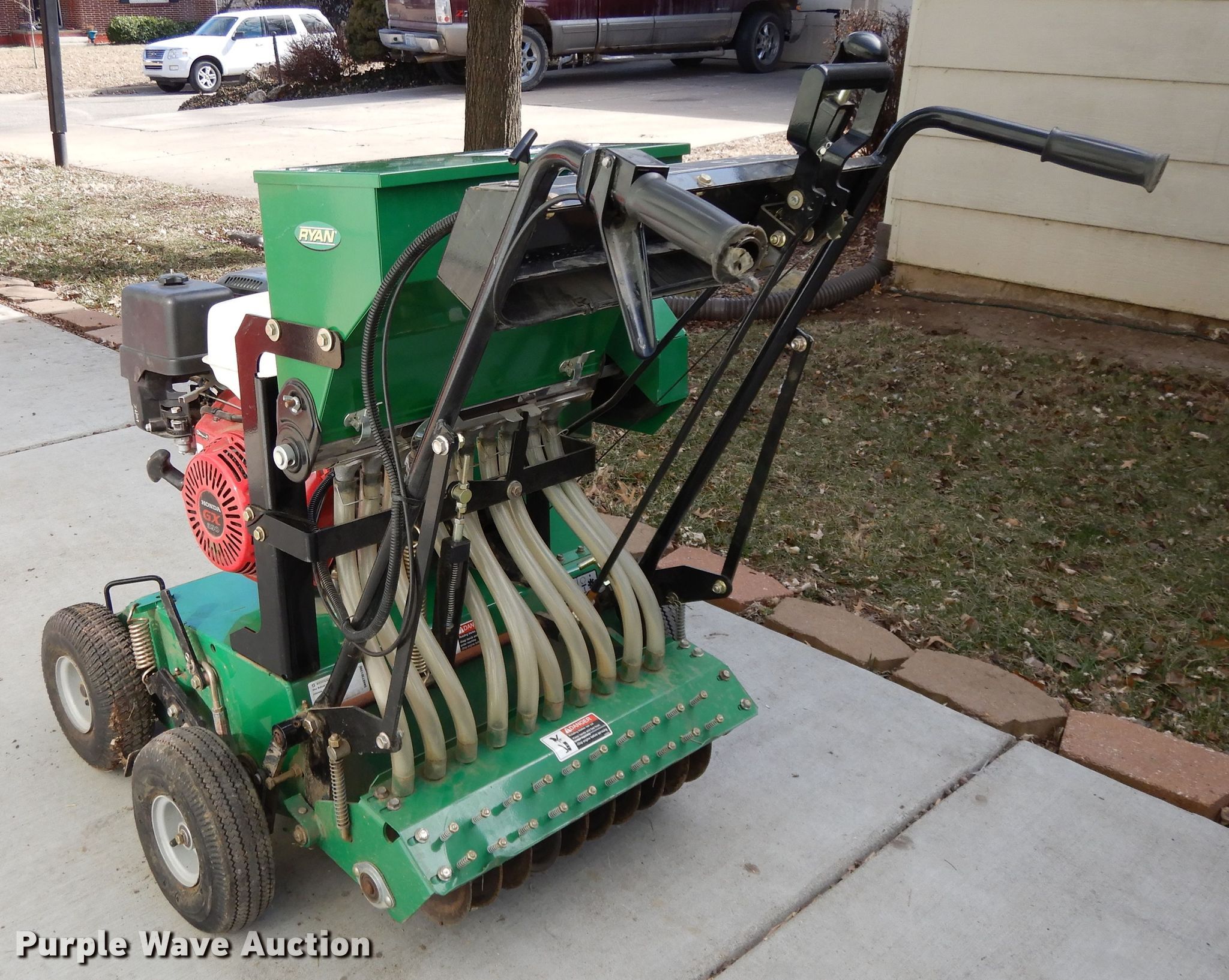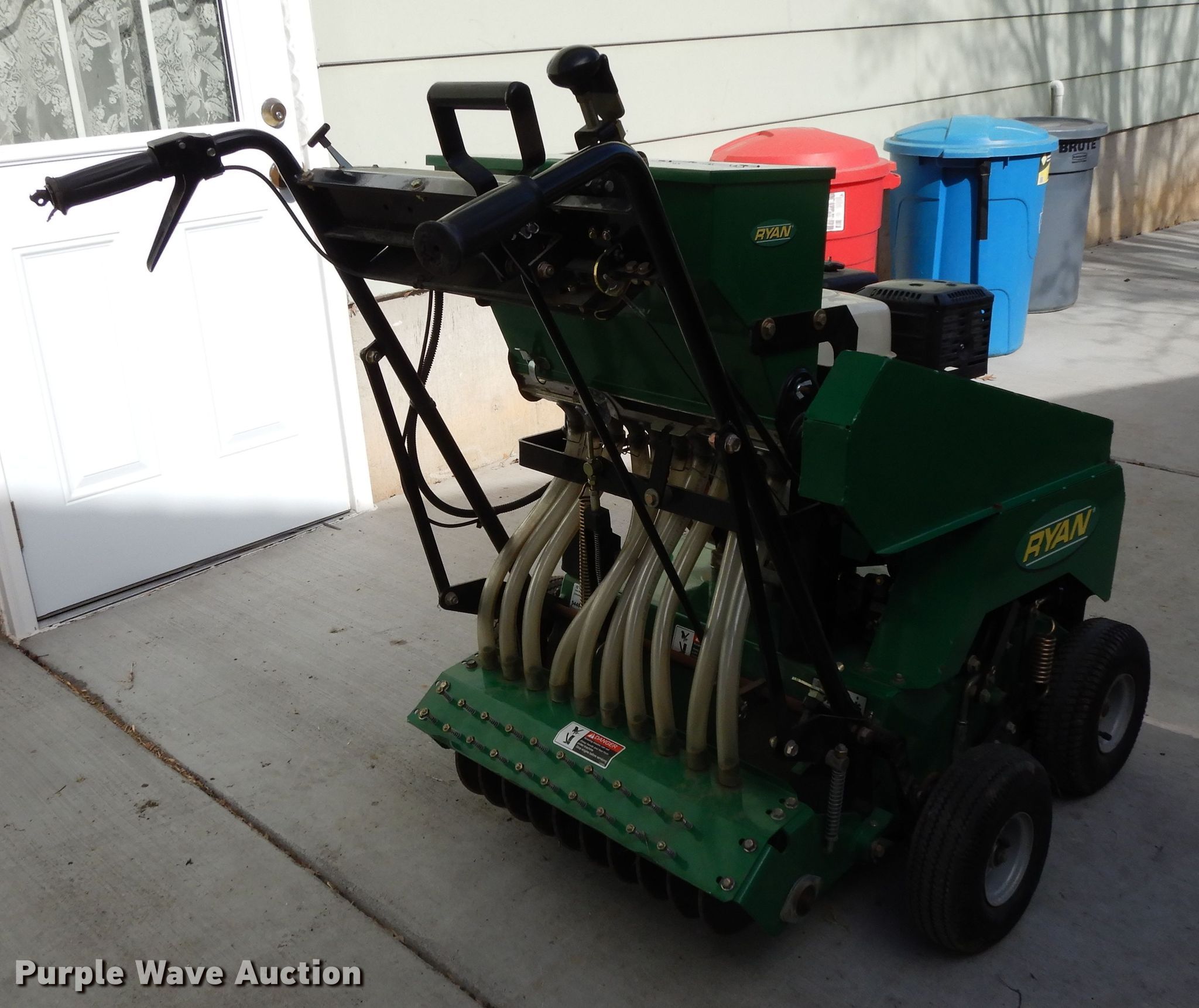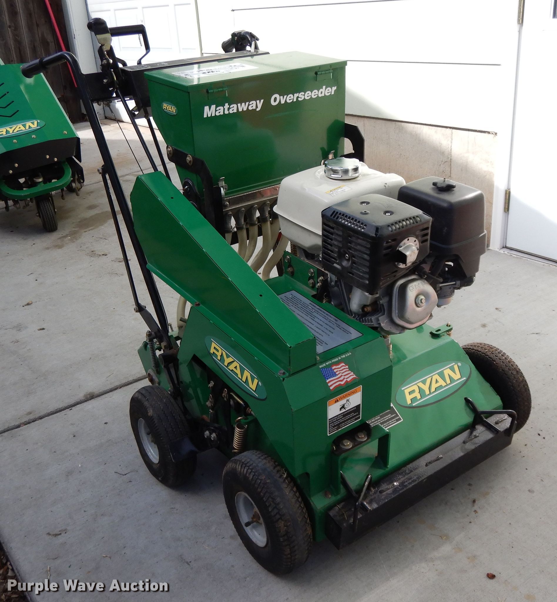 Purple Wave is selling a used Lawn and Garden in Kansas. This item is a Ryan Mataway Overseeder lawn seeder with the following: 20" seeding width, Honda GX390 single cylinder gas engine, Dirt agitator, Approx. 50 lbs seed capacity, 4.10/3.50-4 tires, Serial 544873D