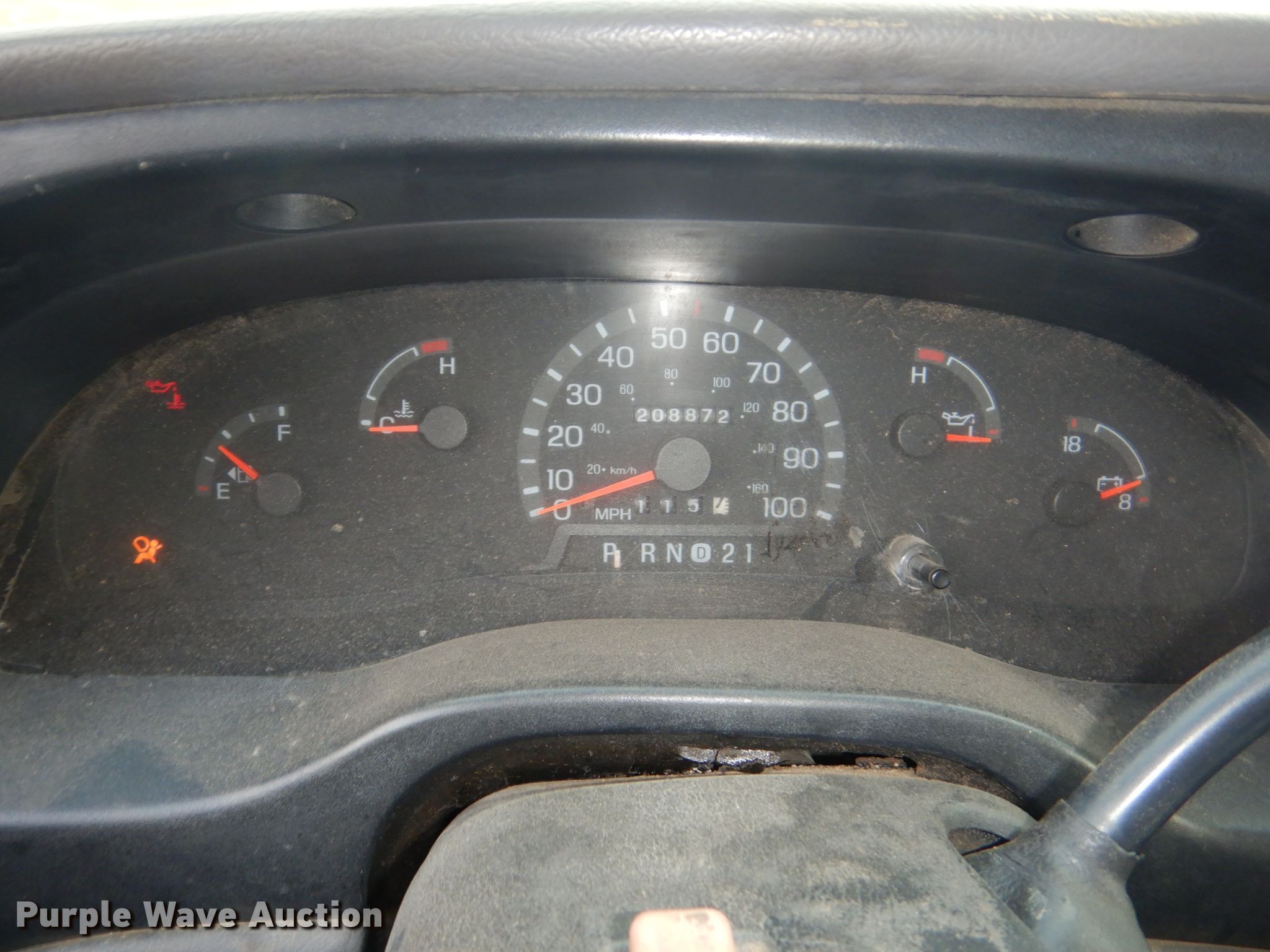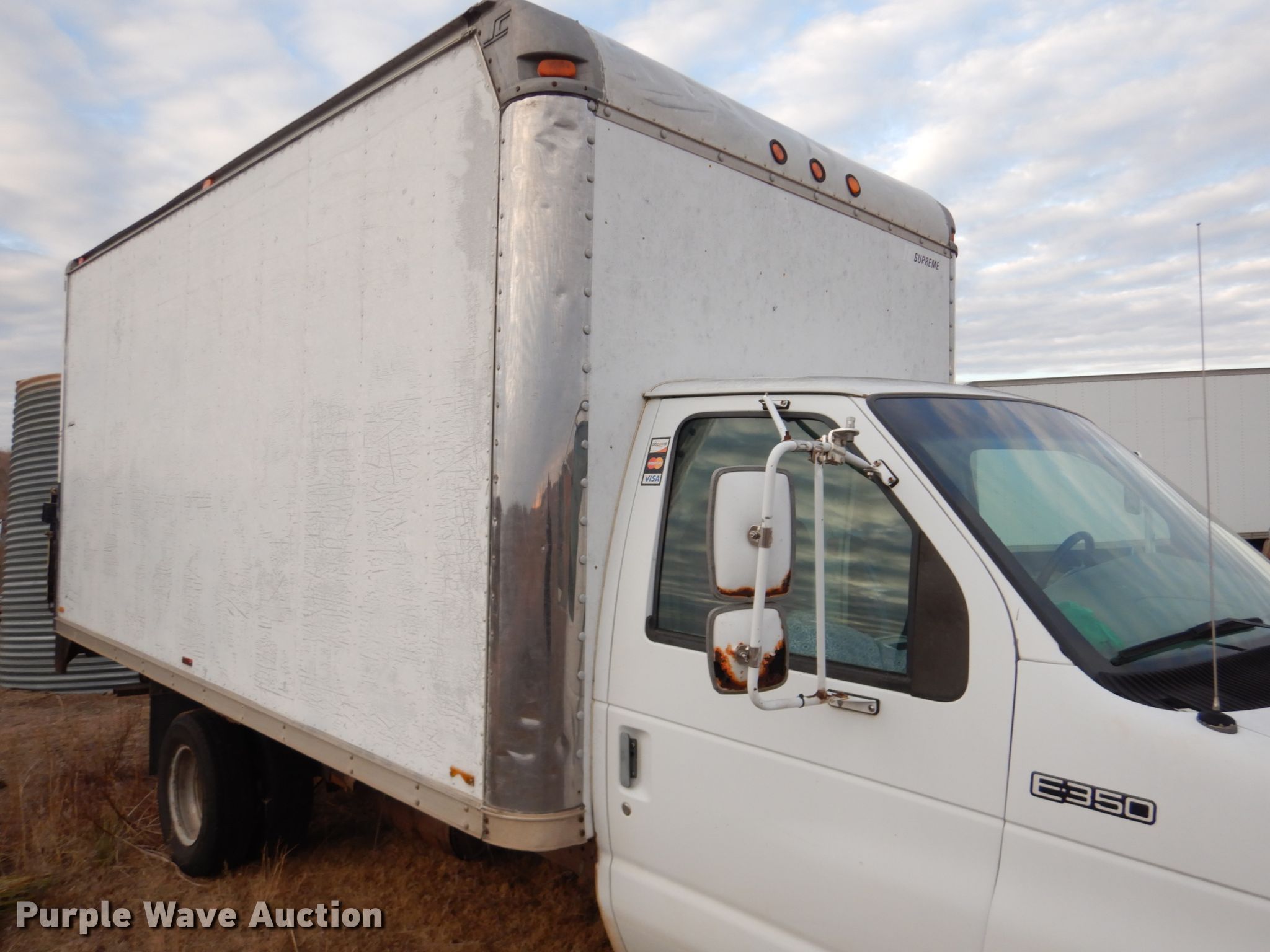 Purple Wave is selling a used Box Truck in Kansas. This item is a 1997 Ford E350 box truck with the following: 208,872 miles on odometer, 5.4L V8 SOHC 16V gas engine, Automatic transmission, Single axle, AC and heat, Diamond box bed, 15'L x 78"W x 84"H, Wood floor, Tommy Gate 911348 end gate lift, Spring suspension, Hydraulic brakes, 225/75R16 tires, GVWR 7,800 lbs, Cracked windshield, Non-operational fan, Contents not included