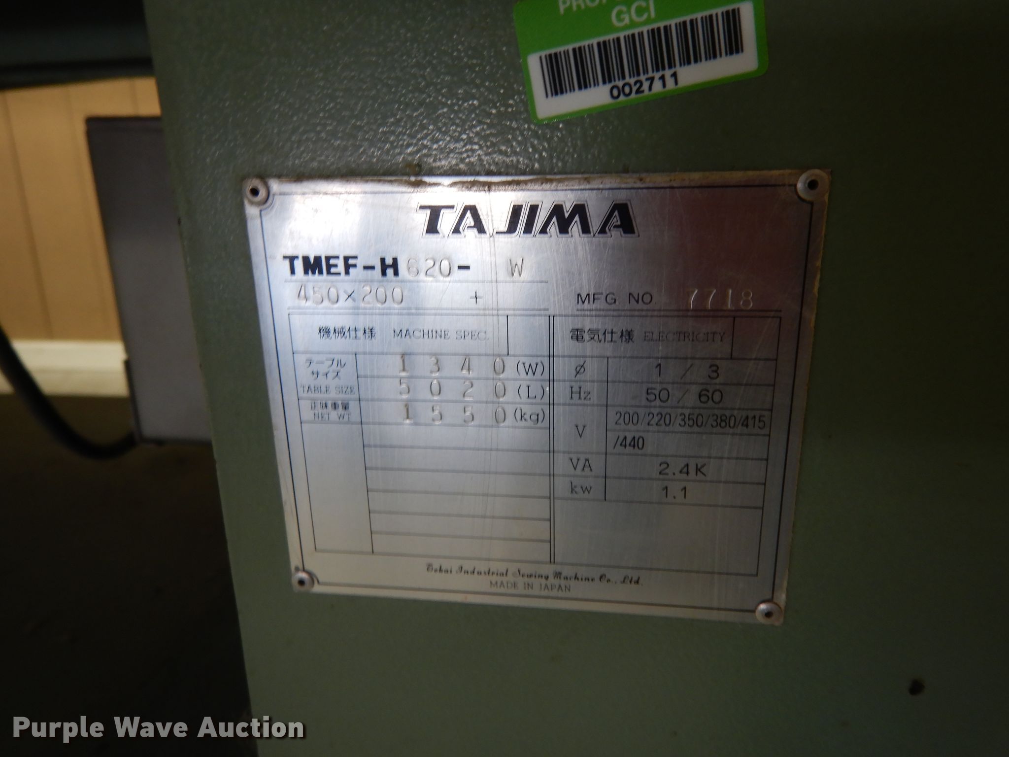 Take a look at this used Tajima TMEF-H620-W embroidery machine being sold on March 18th, 2020 in the SOLD! March 18 Vehicles and Equipment Auction made by Tajima. Take a look at all of the item information below or take a look at similar auctions for Other Industrial and Personal Property.