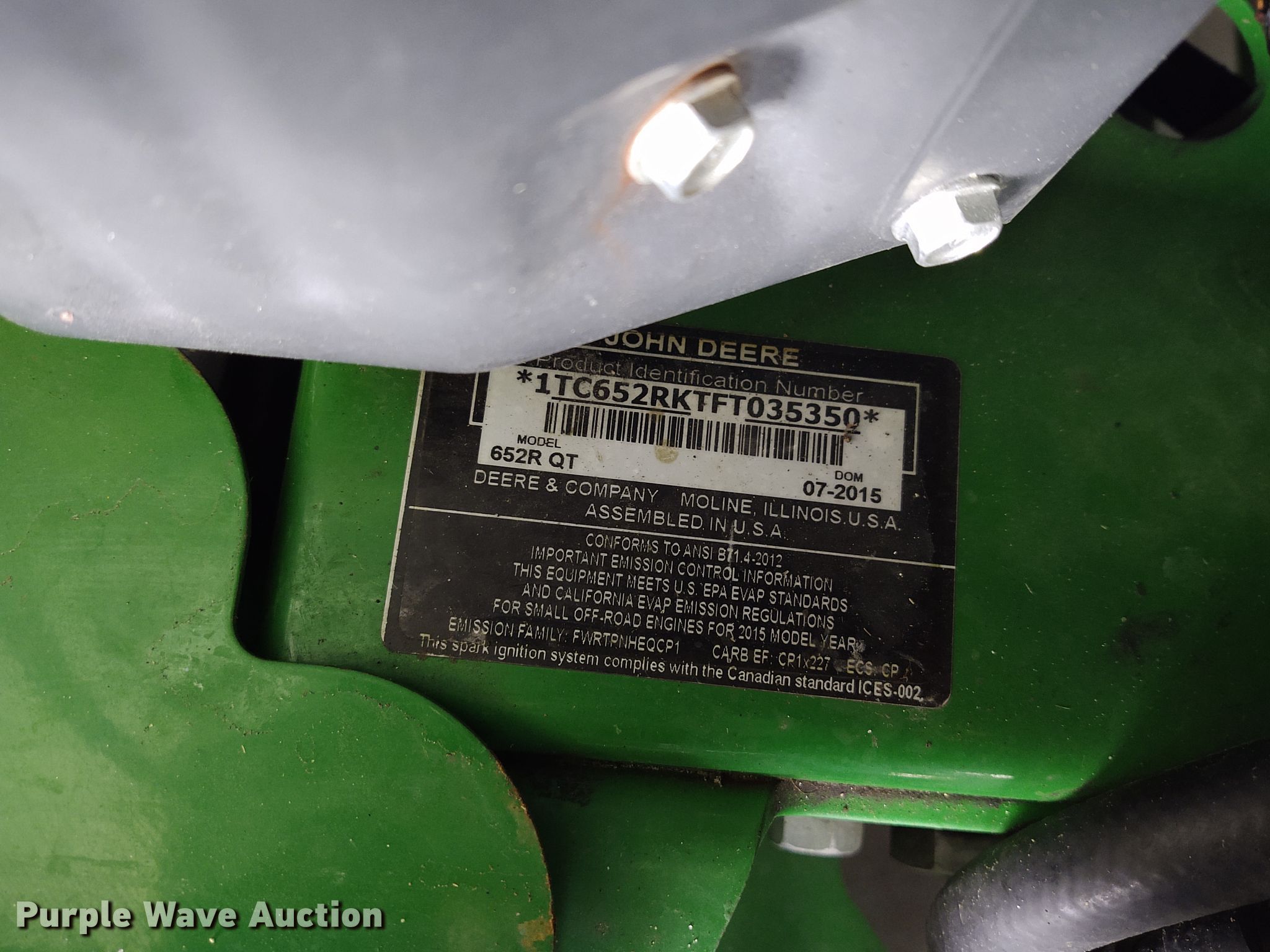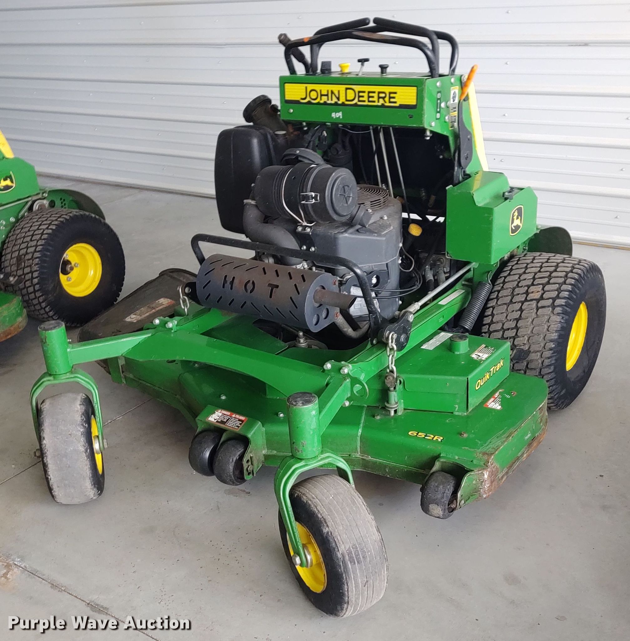 Purple Wave is selling a used Commercial Turf Mower in Kansas. This item is a John Deere 652R Quik Trak ZTR lawn mower with the following: 1,093 hours on meter, Gas engine, Hydrostatic transmission, 13 x 6.50-6/4.50 front tires, 20 x 10.00-8 rear tires, Serial 1TC652RKTFT035350
