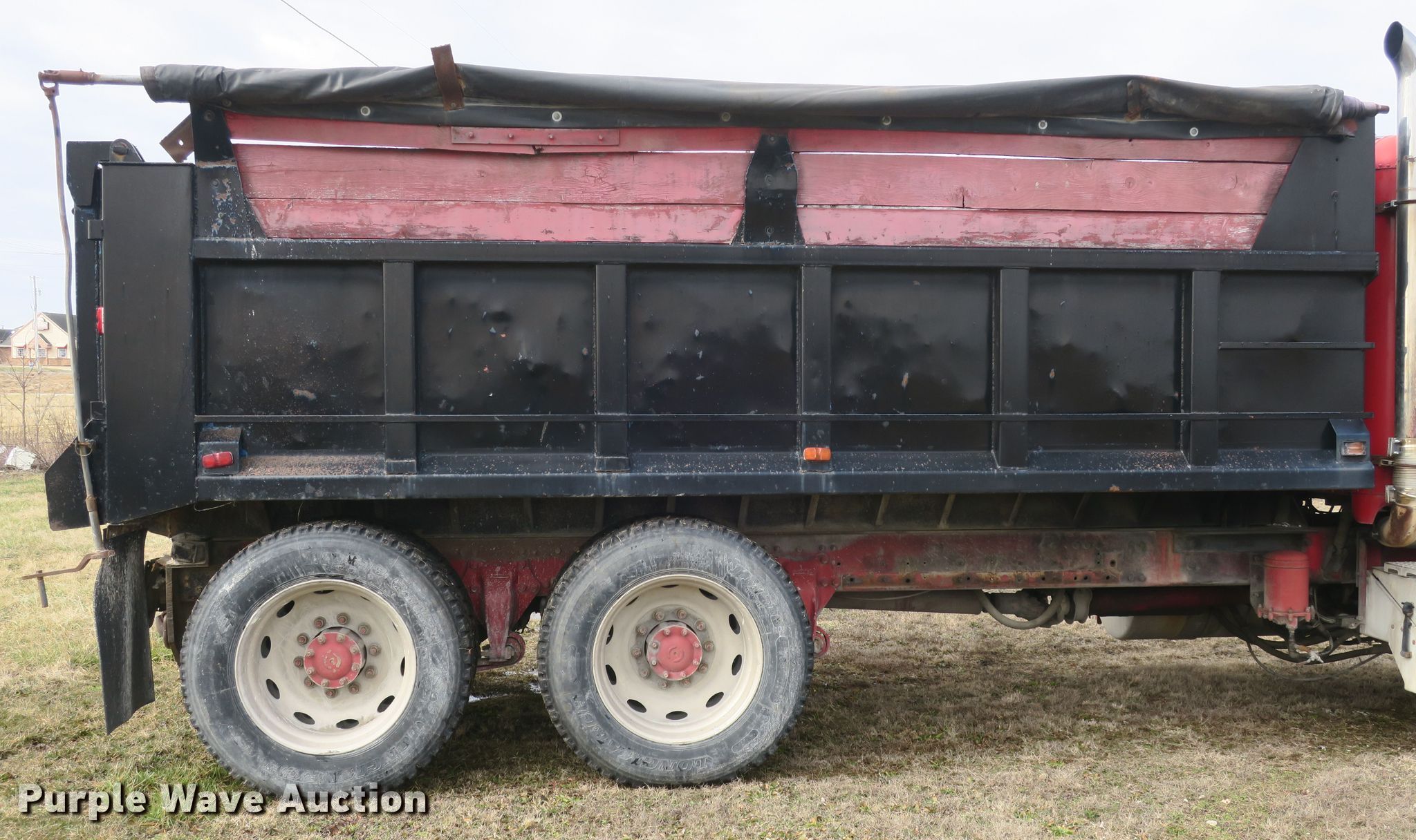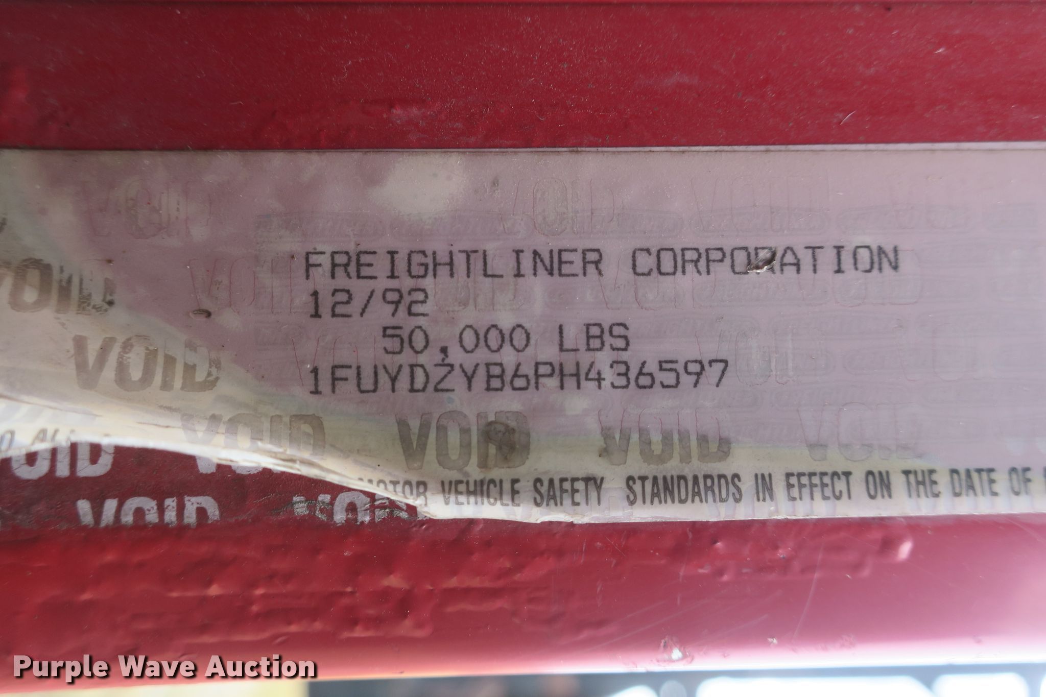 Purple Wave is selling a used Construction Dump Truck in Missouri. This item is a 1993 Freightliner FLD dump truck with the following: 1,131,824 miles on odometer, Detroit Diesel Series 60 12.7L L6 diesel engine, 450 HP, Eaton Fuller Road Ranger manual transmission, Tandem axle, Inter-axle differential lock, Heat, PTO, 16'L x 96"W steel dump bed, 36" side height, 22" side board height, Single ram hoist, Air operated end gate, Roll tarp, Spring suspension, Air brakes, Engine brake, 315/80R22.5 front tires, 285/75R24.5 rear tires, GVWR 50,000 lbs, FAWR 12,000 lbs, IAWR 19,000 lbs, RAWR 19,000 lbs