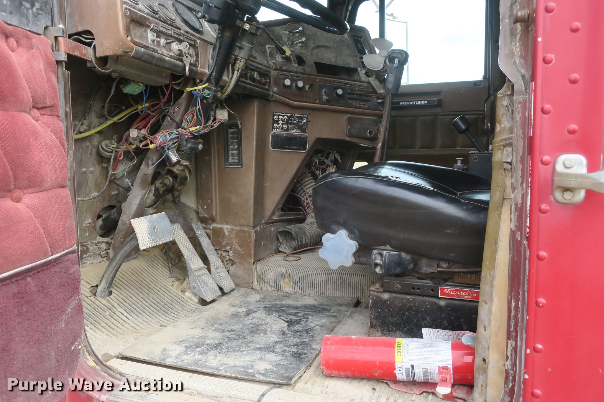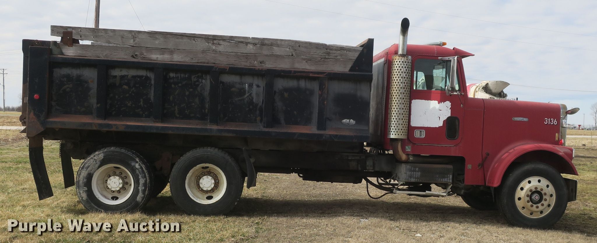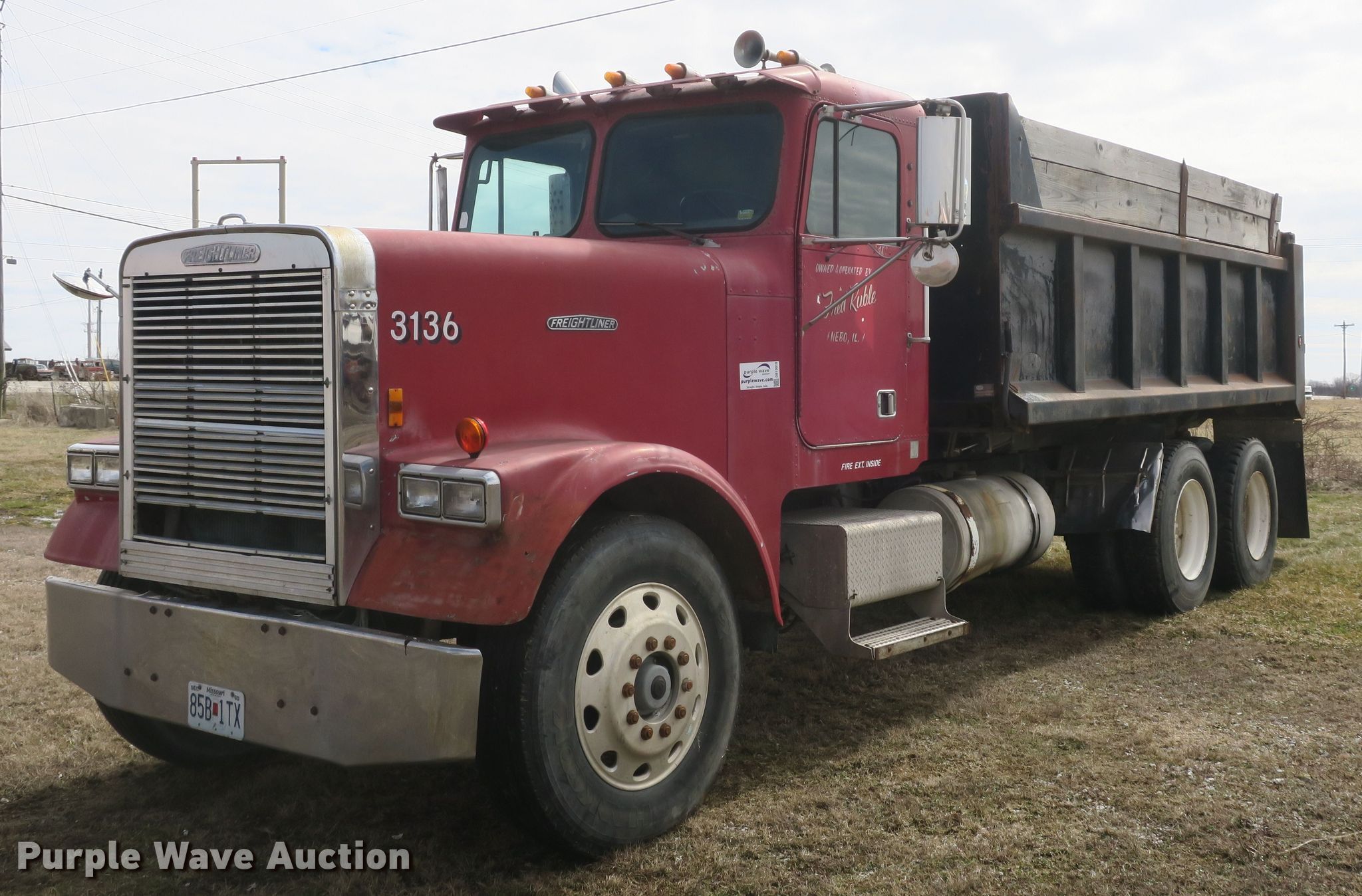 Purple Wave is selling a used Construction Dump Truck in Missouri. This item is a 1985 Freightliner FLC dump truck with the following: Caterpillar 3406 six cylinder diesel engine, Eaton Fuller 15 speed manual transmission, Tandem axle, Heat, PTO, Heil steel dump bed, 16'L x 96"W, 40" side height, Single ram hoist, Air operated end gate, Spring suspension, Air brakes, 11R24.5 front tires, 11R22.5 rear tires, Non-operational odometer