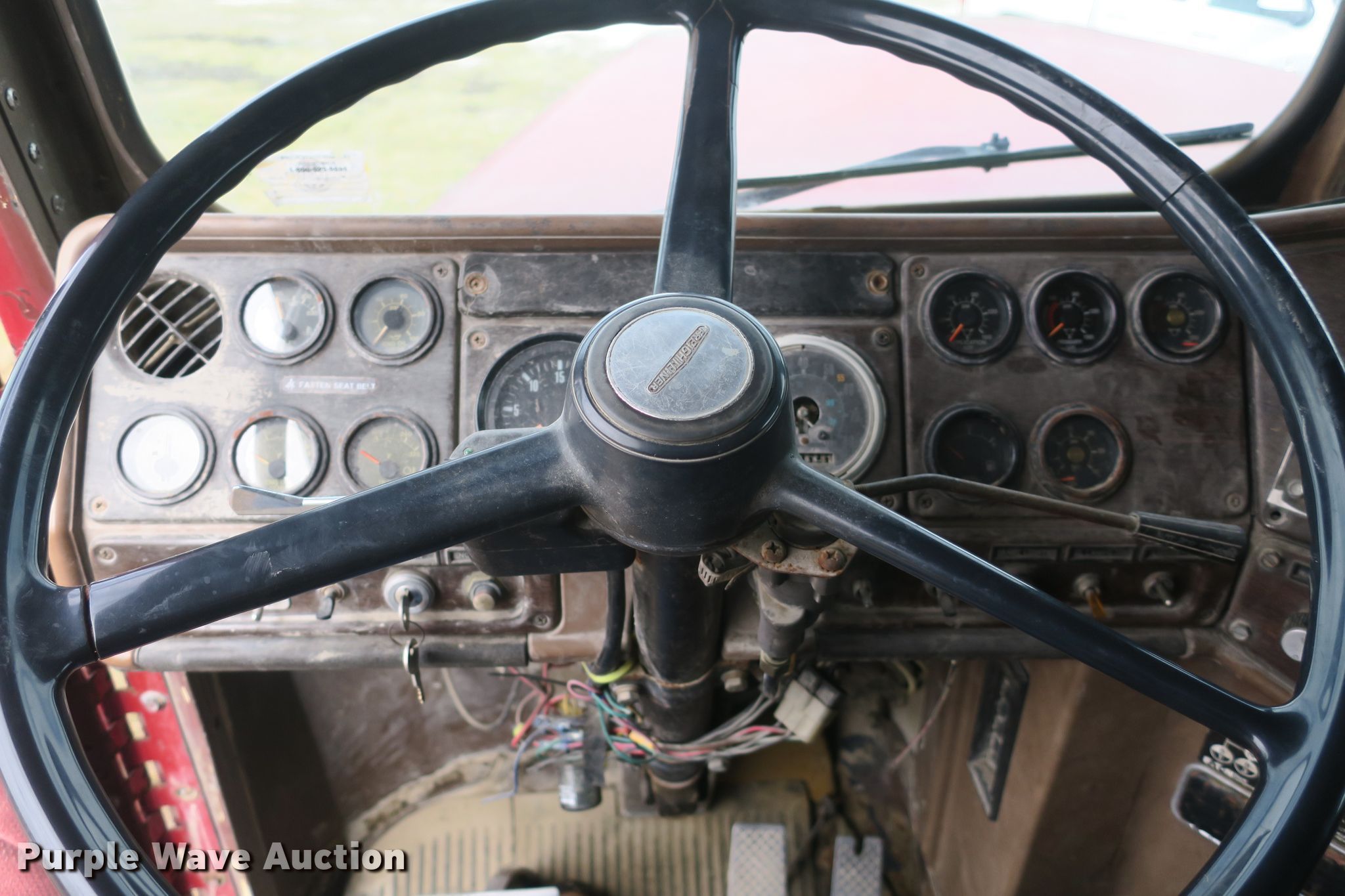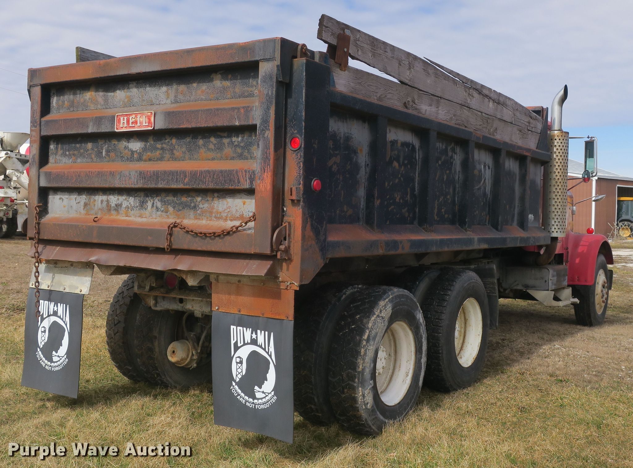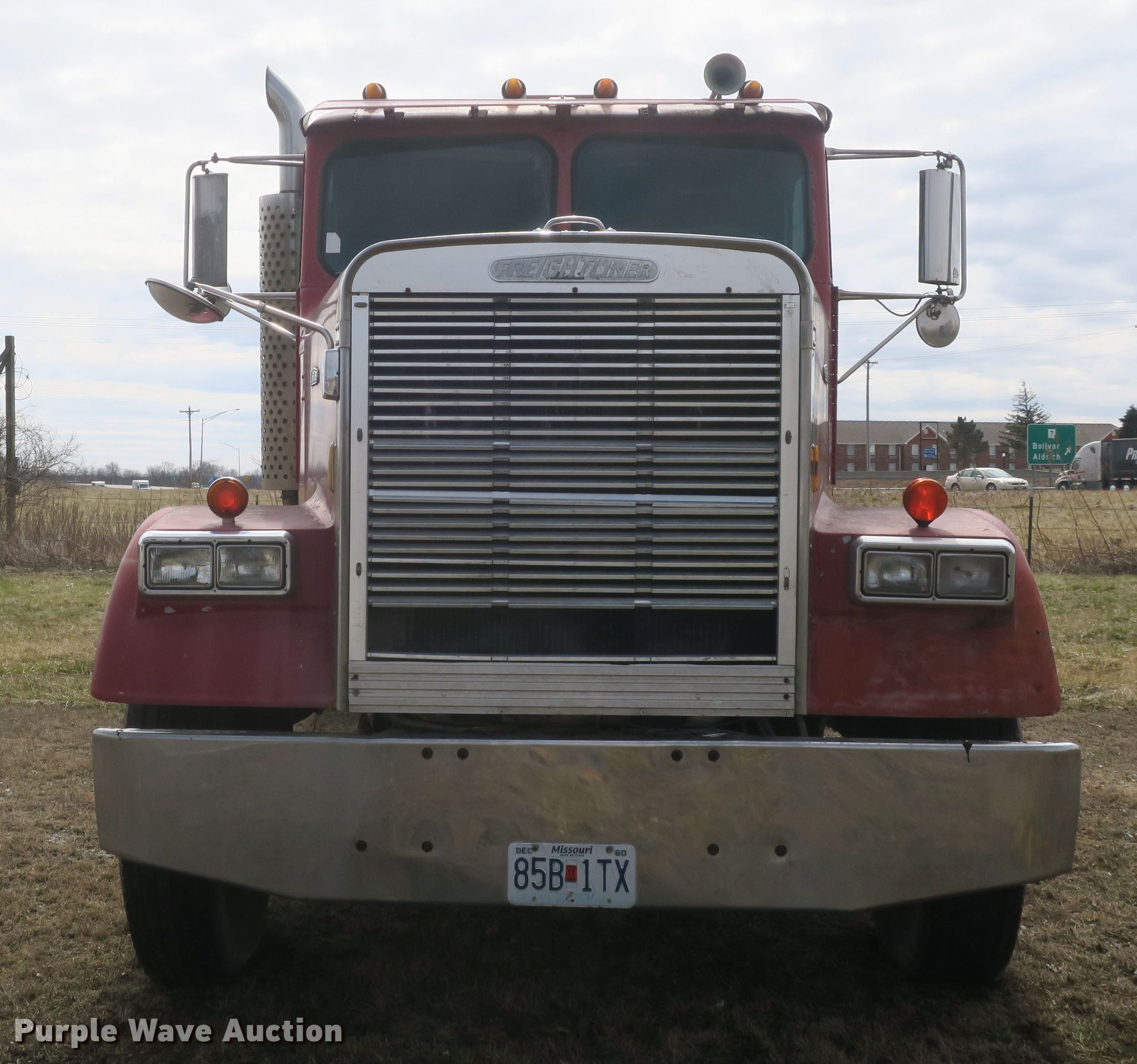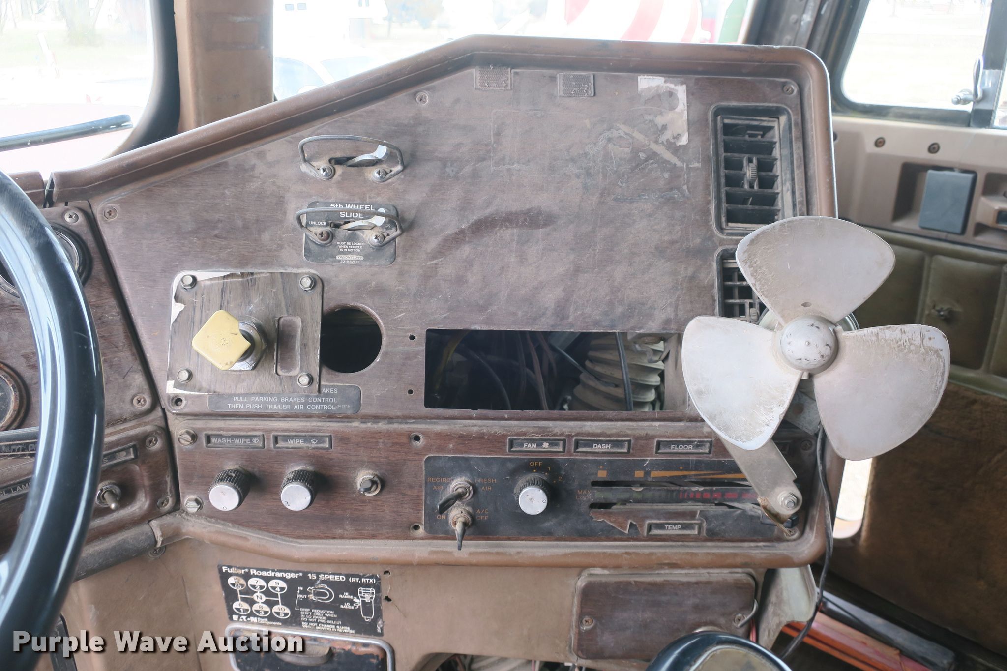 Purple Wave is selling a used Construction Dump Truck in Missouri. This item is a 1985 Freightliner FLC dump truck with the following: Caterpillar 3406 six cylinder diesel engine, Eaton Fuller 15 speed manual transmission, Tandem axle, Heat, PTO, Heil steel dump bed, 16'L x 96"W, 40" side height, Single ram hoist, Air operated end gate, Spring suspension, Air brakes, 11R24.5 front tires, 11R22.5 rear tires, Non-operational odometer