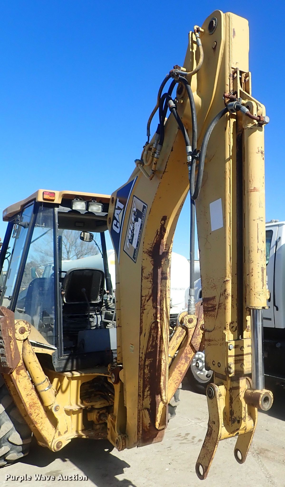 1997 Caterpillar 426C backhoe. 5,978 hours on meter, Caterpillar 3054 4.0L four cylinder diesel engine Serial 5HK62219, Shuttle shift transmission 4F-4R gears, Four wheel drive, Enclosed cab Wobble stick backhoe controls, 86"W loader bucket Bolt-on cutting edge, Extendable stick backhoe 12"W bucket, 22"W bucket, Auxiliary hydraulics, 12.5/80-18 front tires, 19.5L-24 rear tires, Doors missing, Serial 6XN01026. Dondlinger & Sons Construction. 2656 S Sheridan St. Wichita, KS 67217