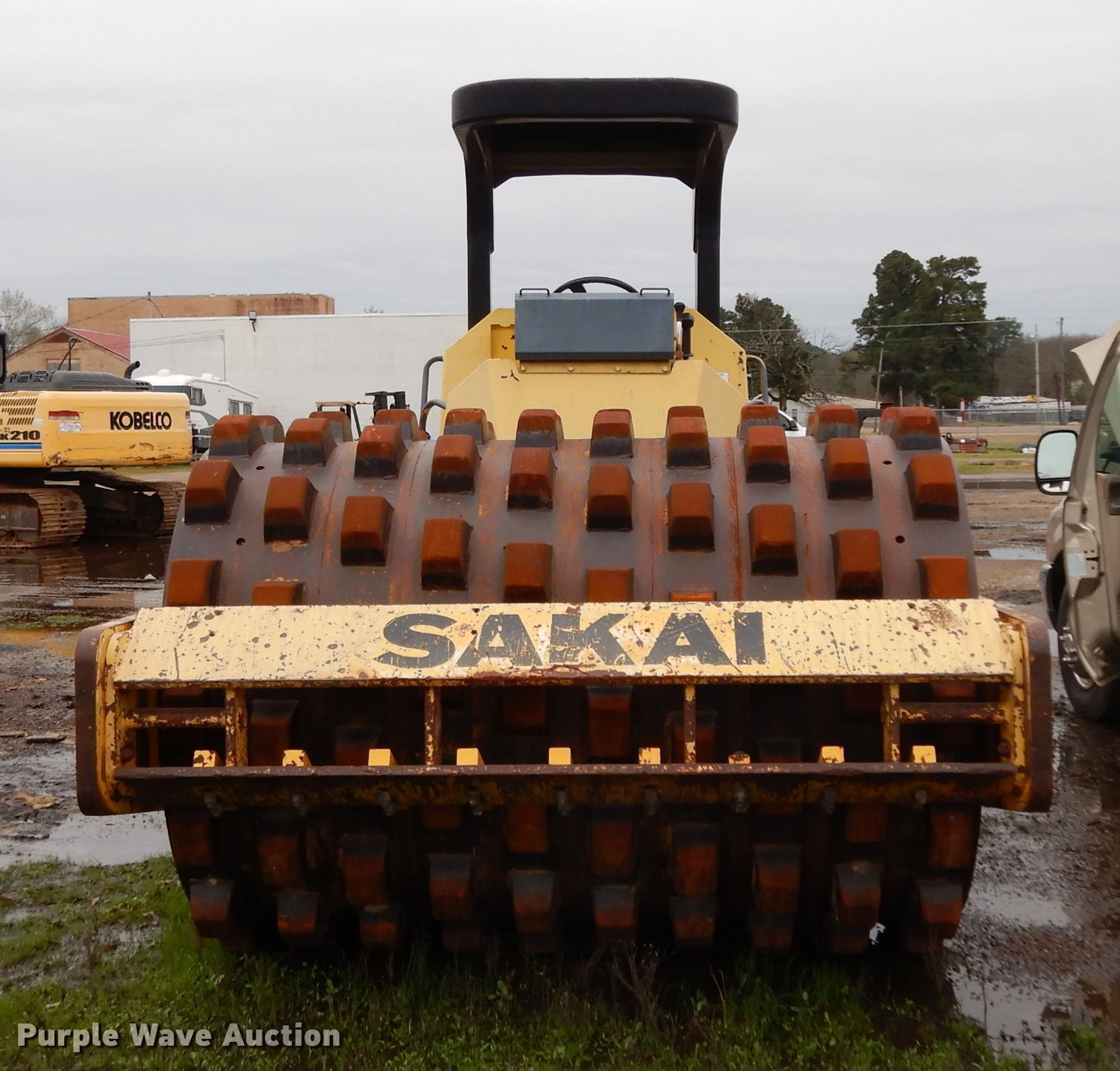Purple Wave is selling a used Single Drum Roller Compactor in Texas. This item is a Sakai SV510TF single drum roller with the following: Isuzu six cylinder diesel engine, Two speed hydrostatic transmission, OROPS, 84"W x 65" diameter padfoot drum, Front drum scraper, 23.1-26 tires, Serial VSV11T10111