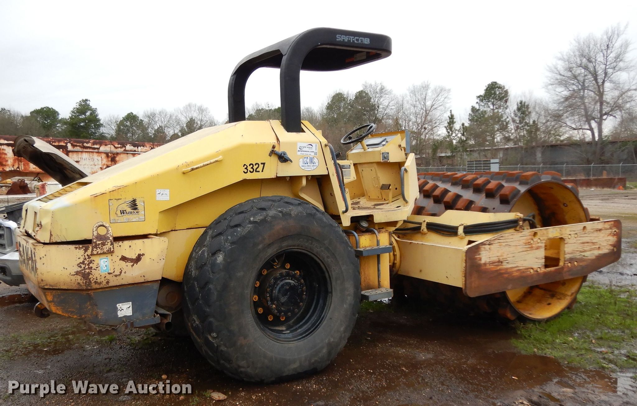 Sakai SV510TF single drum roller. Isuzu six cylinder diesel engine, Two speed hydrostatic transmission, OROPS, 84"W x 65" diameter padfoot drum, Front drum scraper, 23.1-26 tires, Serial VSV11T10111. Tatum Excavating Company. 2416 South Lake Drive. Texarkana, TX 75501