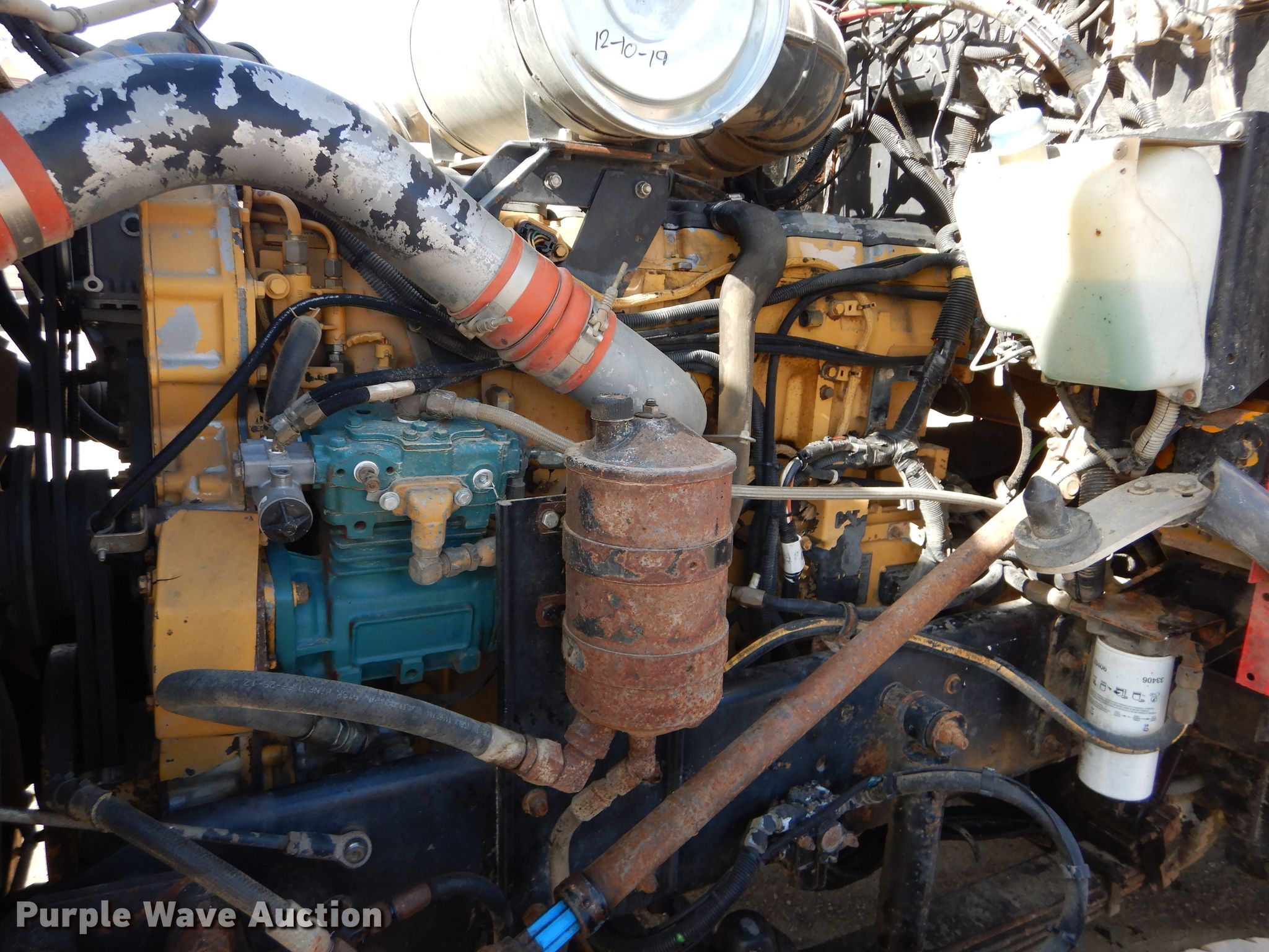 Purple Wave is selling a used Construction Dump Truck in Kansas. This item is a 2001 Kenworth T800 dump truck with the following: 443,550 miles on odometer, Miles may vary, unit still in use, Caterpillar C15 14.6L L6 diesel engine, 425 HP, Serial 6NZ41666, Eaton Fuller FRO16210C 10 speed manual transmission, Tandem axle, Inter-axle differential lock, AC and heat, Cruise, Heated mirrors, PTO, OX Bodies steel barrel bed, 16'L x 96"W, 58" side height, Single ram hoist, Air operated end gate, Roll tarp, Spring over walking beam suspension, Air brakes, Engine brake, Double frame, 212" wheelbase, 385/65R22.5 front tires, 275/80R22.5 pusher axle tires, 11R24.5 rear tires, GVWR 66,000 lbs, FAWR 20,000 lbs, IAWR 23,000 lbs, RAWR 23,000 lbs, Lift axle GAWR 20,000 lbs, Unit# 7-9