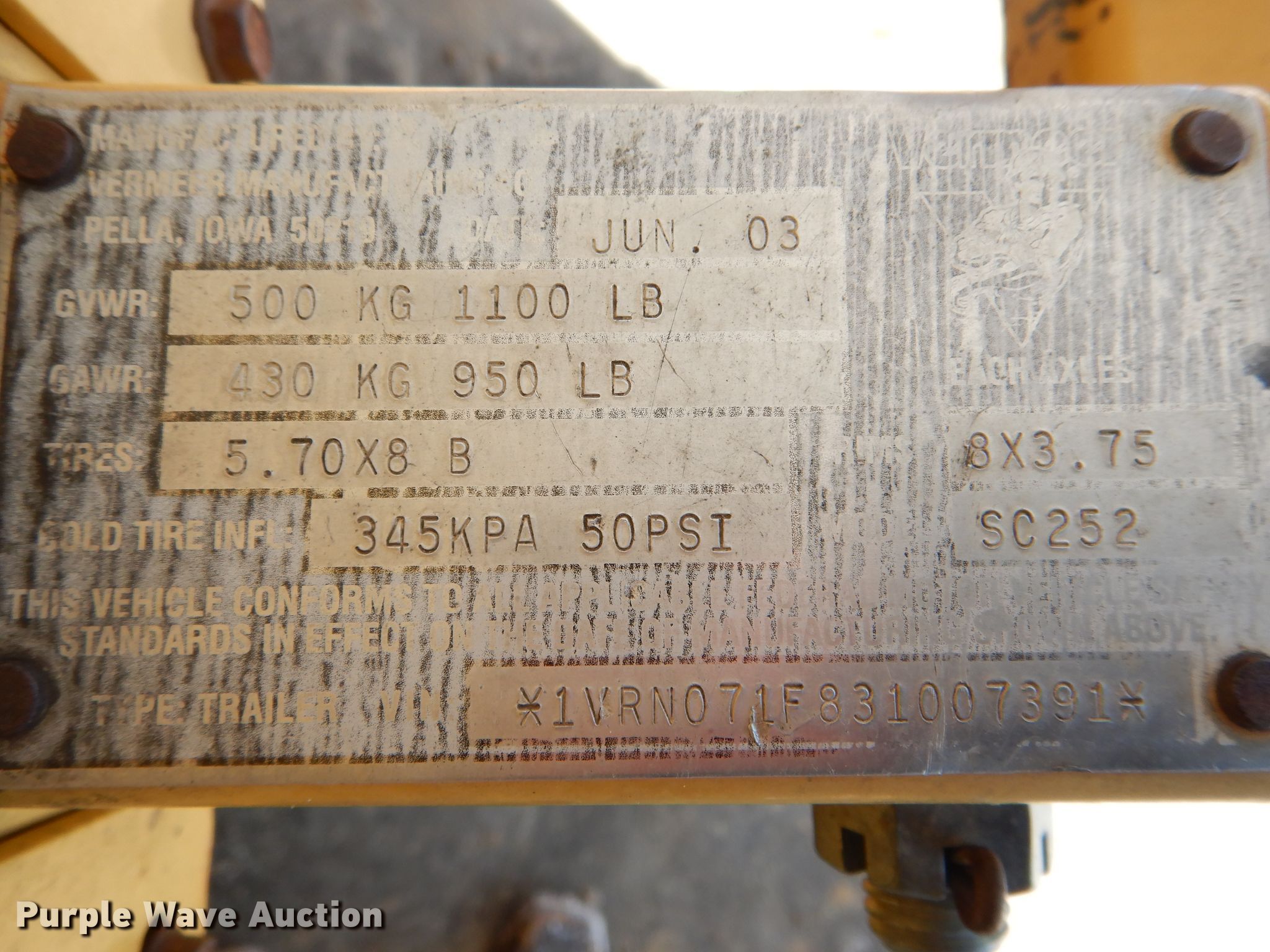 2003 Vermeer SC252 stump grinder. 1,540 hours on meter, Kohler Command Pro two cylinder gas engine 25 HP, 17" diameter cutting head, 13 x 5.00- front tries, 5.70-8 rear tires, Trailer model TLR25 Jack stand, 2" ball hitch, 4.80-8 tires, Serial 1VRN071F831007391. View repairs. Transfer of ownership documentation will be a bill of sale. 1VRN091J731002781. Royal Fix. 2626 Market st. Hannibal, MO 63401