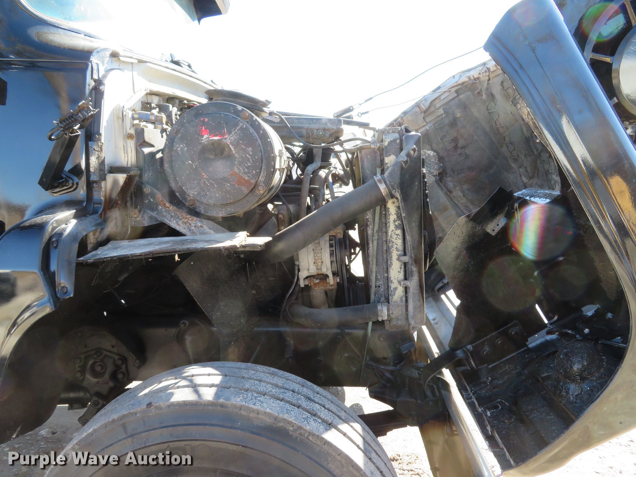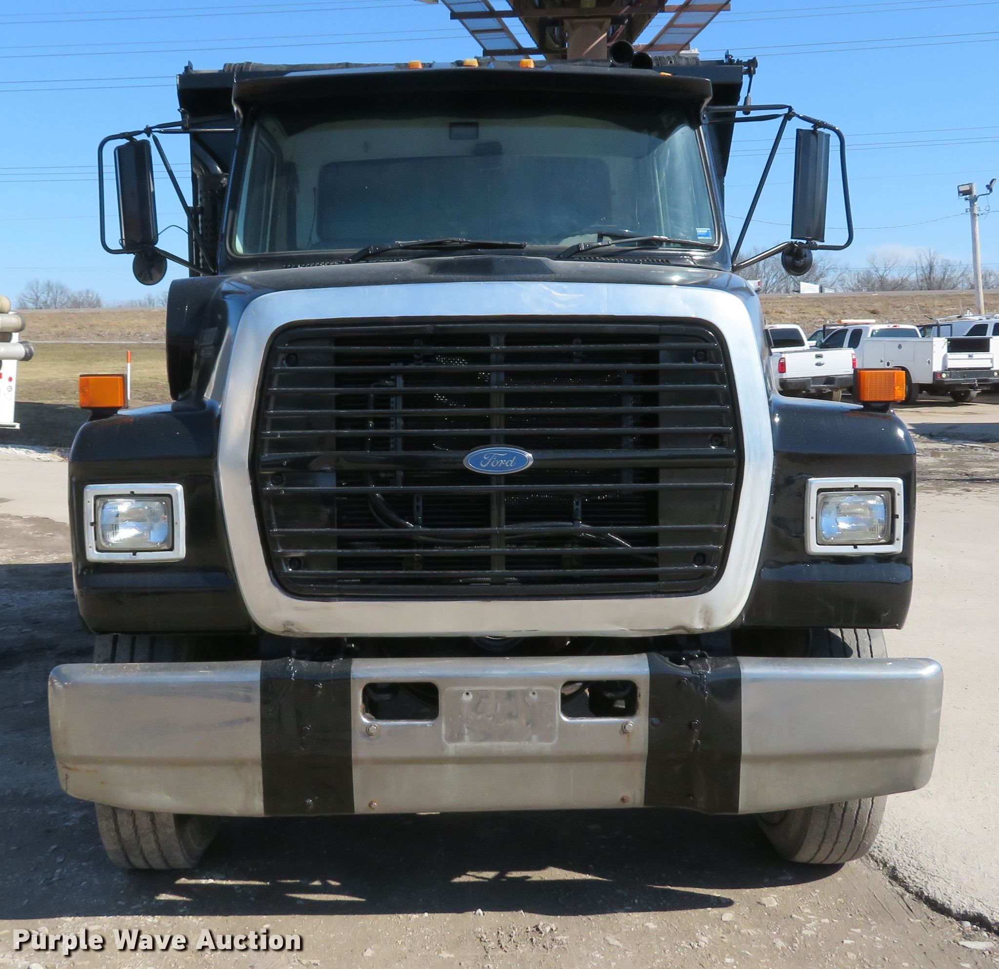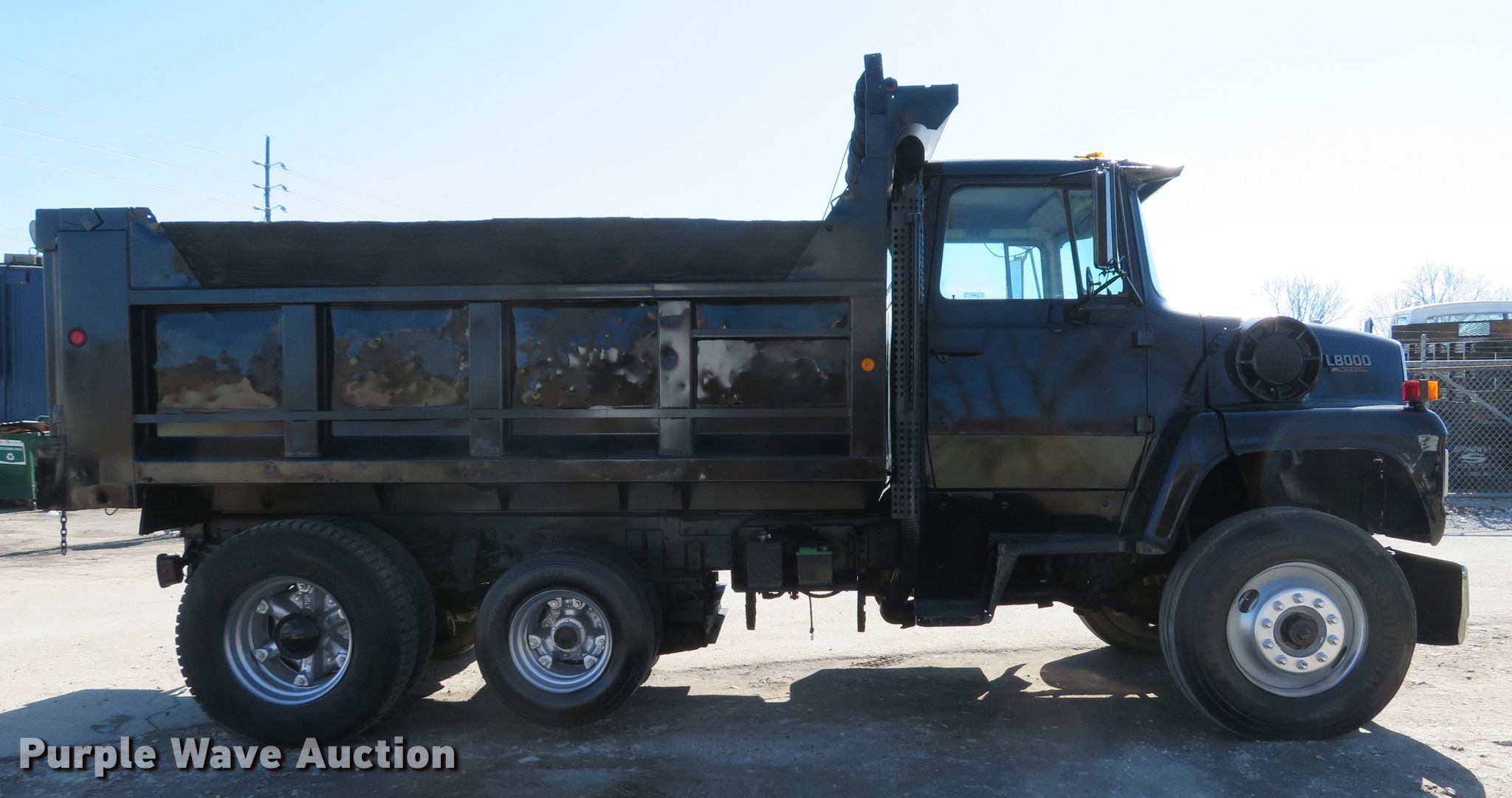 Purple Wave is selling a used Construction Dump Truck in Missouri. This item is a 1990 Ford L8000 dump truck with the following: 331,478 miles on odometer, 3,642 hours on meter, Ford 7.8L L6 diesel engine, 210 HP, Automatic transmission, Single axle, AC, Brake controller, PTO, 12'L x 96"W steel dump bed, 30" side height, 10" side board height, Single ram hoist, Air operated end gate, Roll tarp, Double frame, Spring suspnesion, Air brakes, 175" wheelbase, 11R22.5 front tires, 235/75R17.5 pusher axle tires, 11R22.5 rear tires, GVWR 33,000 lbs, Windshield cracked, Engine smokes