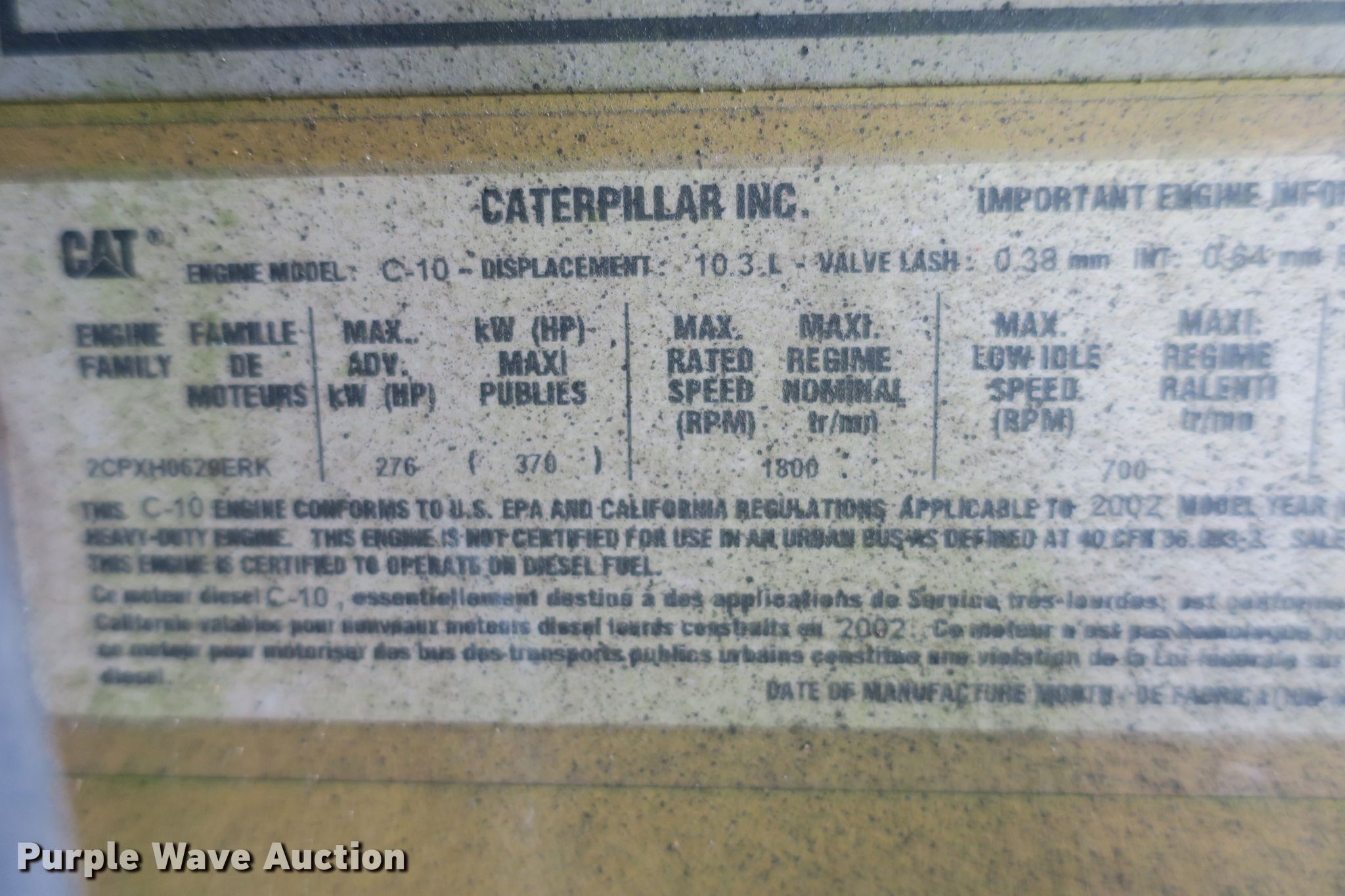 Purple Wave is selling a used Engine in Missouri. This item is a Caterpillar C10 10.3L six cylinder diesel engine with the following: 275 HP, 370 kW, Removed from a 2003 Sterling, Wiring harness included, Engine stand included