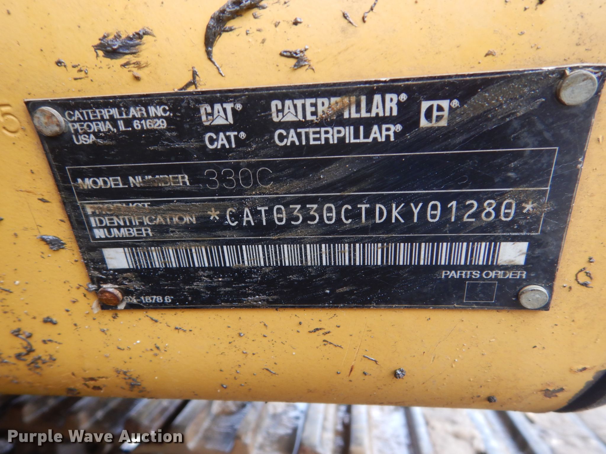 Purple Wave is selling a used Hydraulic Excavator in Minnesota. This item is a 2003 Caterpillar 330C L excavator with the following: 14,345 hours on meter, Caterpillar C9 six cylinder diesel engine, Serial 4ZF06166, Two speed hydrostatic transmission, EROPS, AC and heat, Pattern changer, Standard boom, 12'10" stick length, Hydraulic quick coupler, Caterpillar 50"W bucket, 2.14 cu. yd. capacity, (4) teeth, Thumb bracket, 33.5" steel triple grouser track pads, Serial CAT0330CTDKY01280