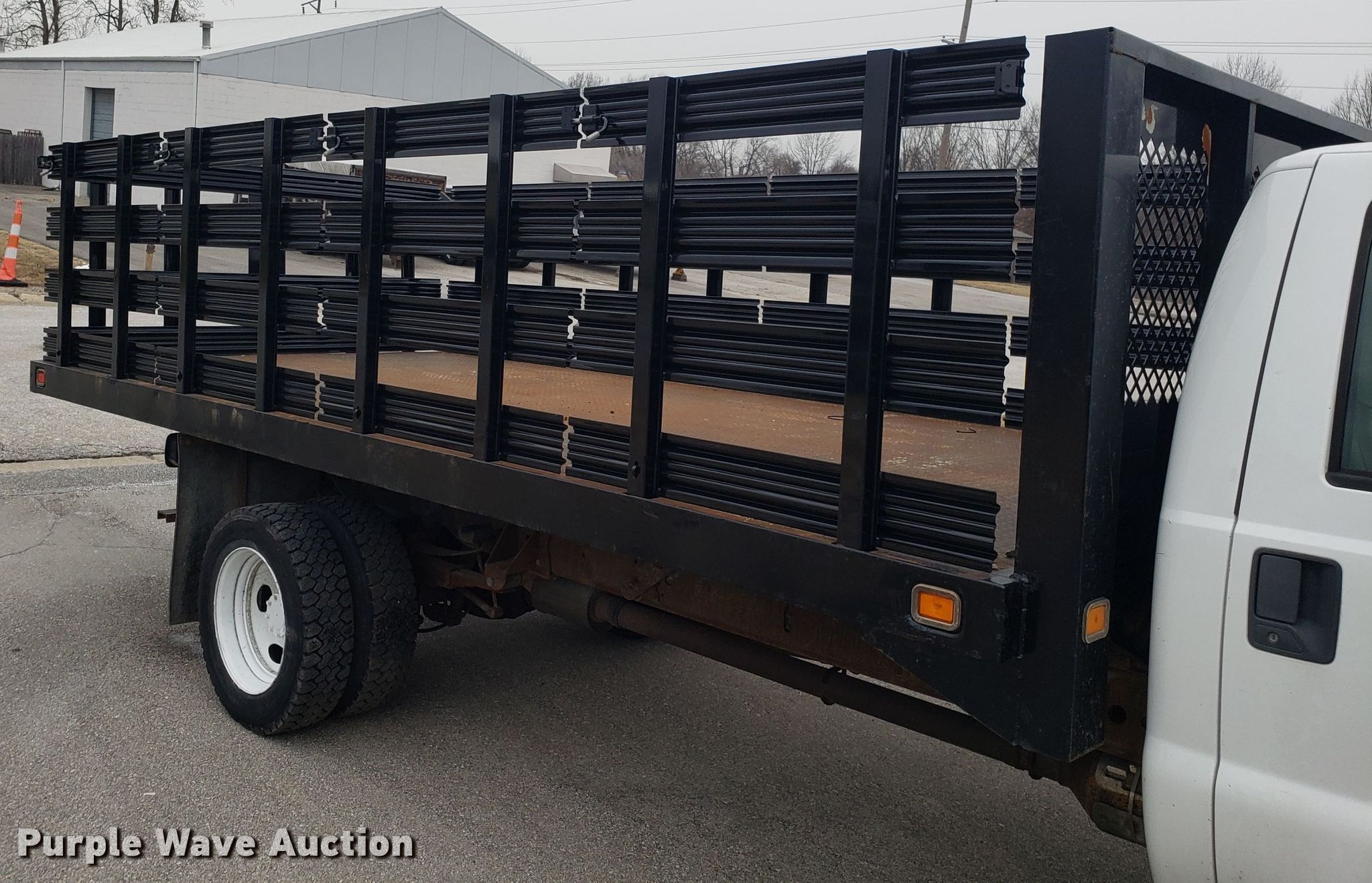 Purple Wave is selling a used Flat Bed Truck in Missouri. This item is a 2008 Ford F550 Super Duty flatbed truck with the following: 183,532 miles on odometer, 6.4L V8 OHV 32V diesel engine, Automatic transmission, Single axle, AC and heat, 16'L x 8'W flatbed, Removable sides, Spring suspension, Hydraulic brakes, 225/70R19.5 tires, Engine issues, Turbo may need to be replaced