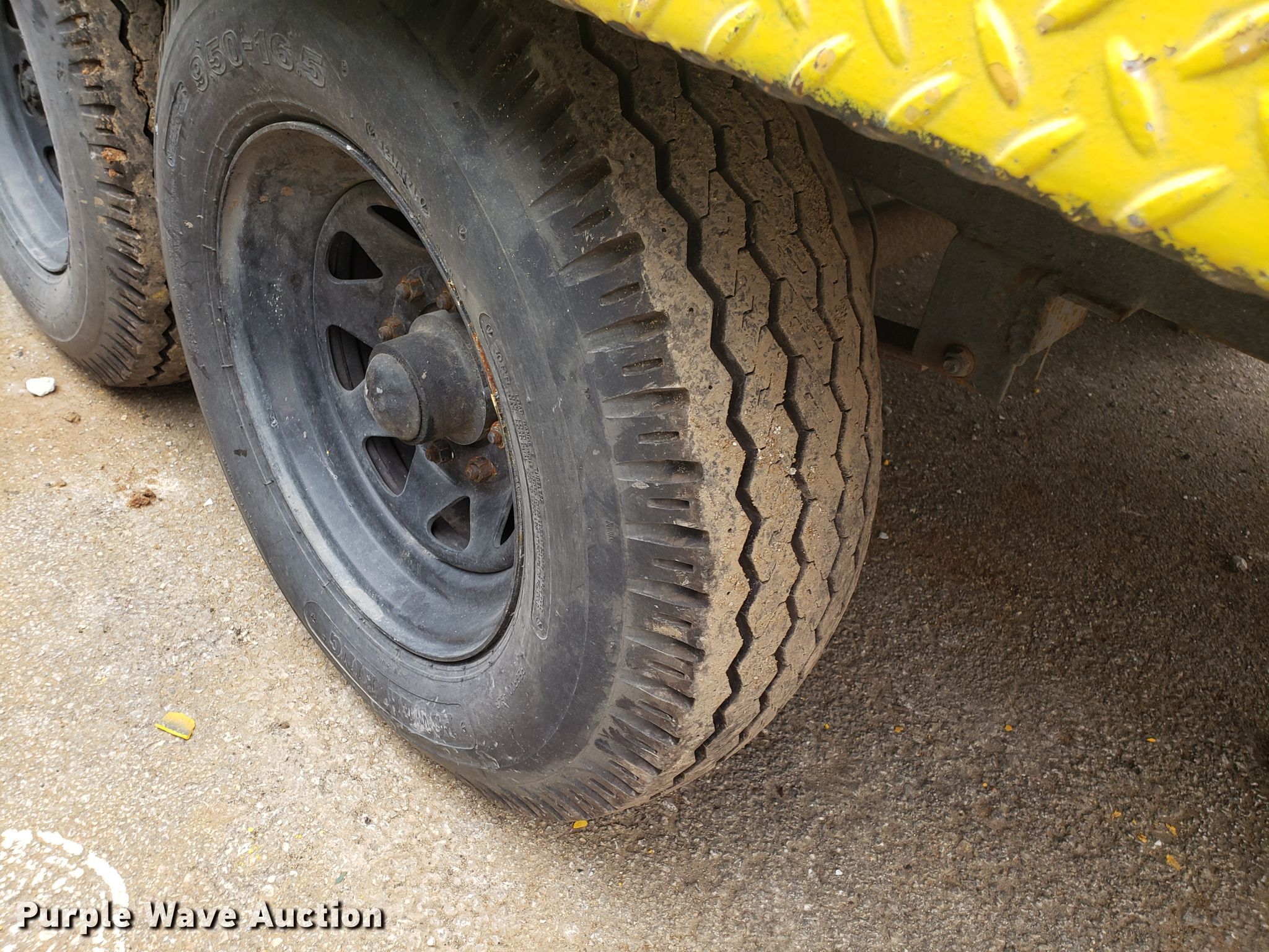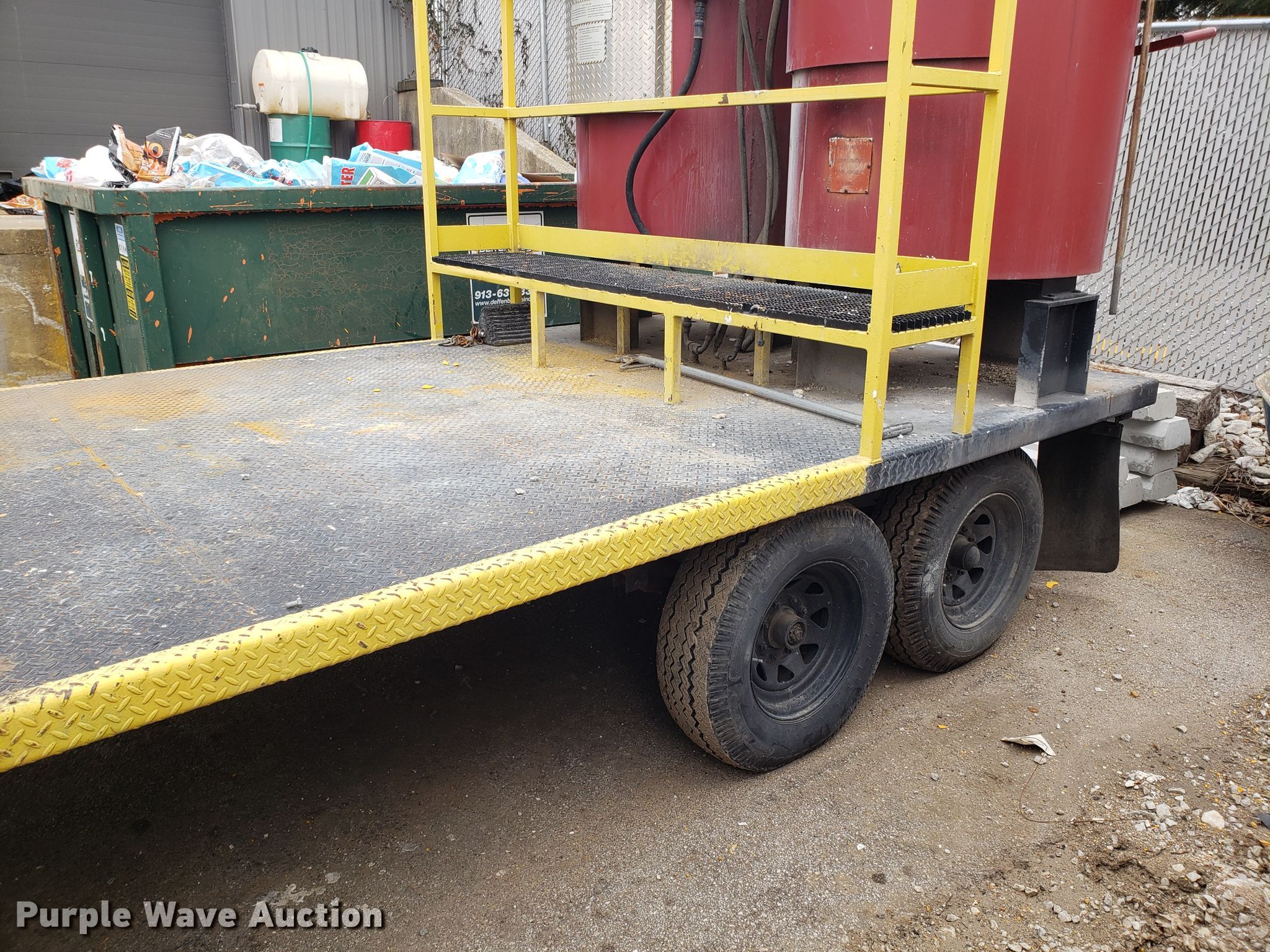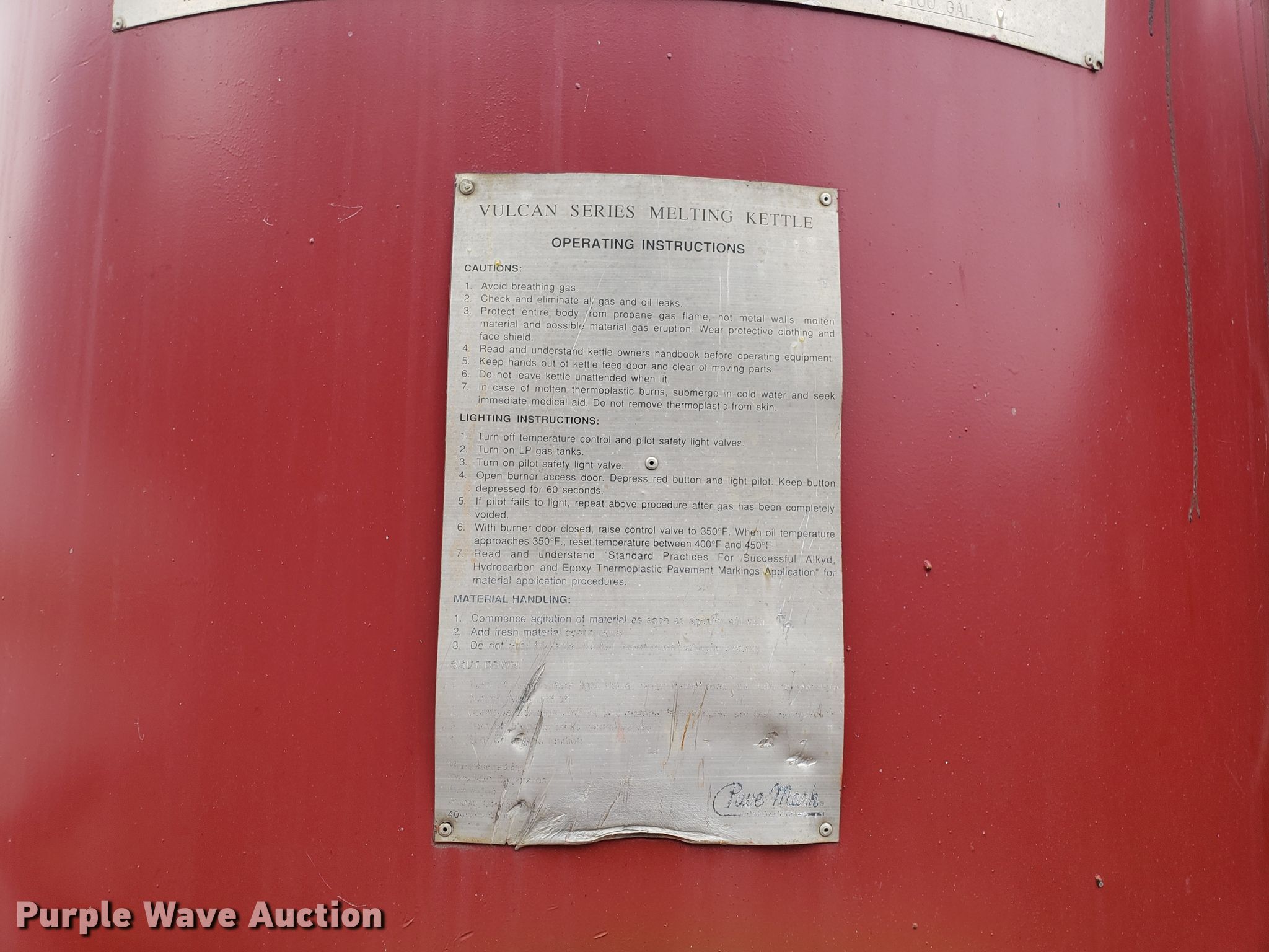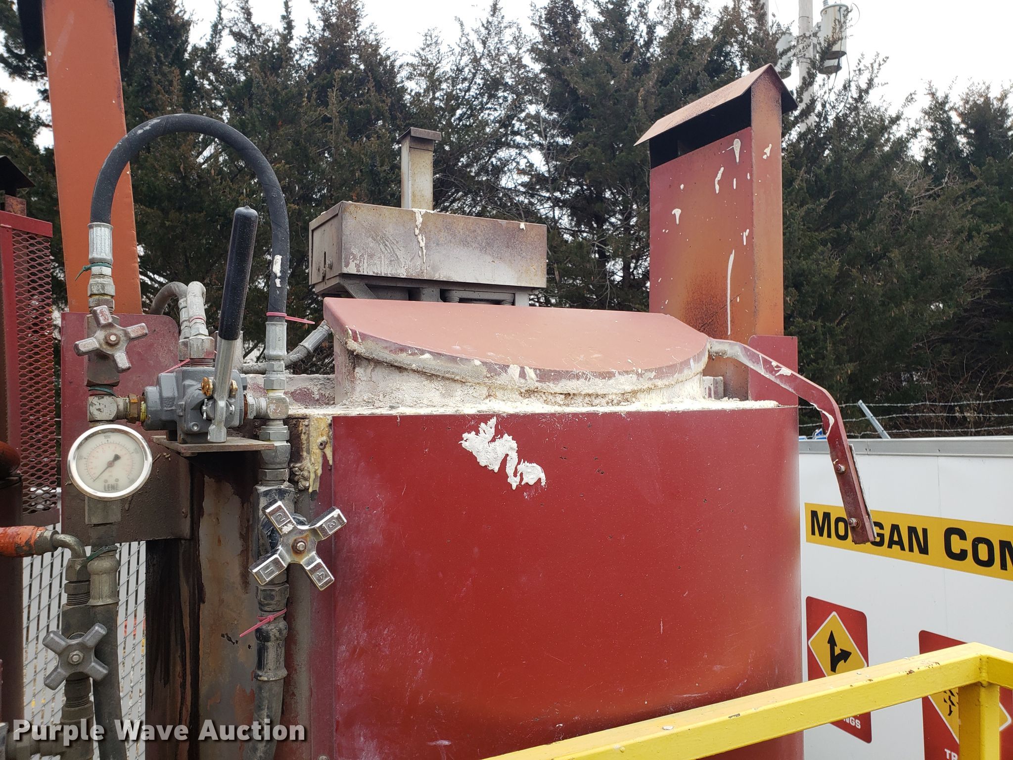 Purple Wave is selling a used Trailer Other in Missouri. This item is a 1995 shop built paint melt kettle trailer with the following: 20'L overall, 14'L x 90"W deck, Intel gas engine, 17.5 HP, Stimsonite air jacketed propane fired kettle, 1,500 lbs capacity, Lafarge oil jacketed propane fired kettle, 1,500 lbs capacity, Hydraulic driven augers, Electric hoist, 2 5/16" ball hitch, Spring suspension, Electric brakes, Tandem axle, 9.5-16.5 tires, Serial 000201033
