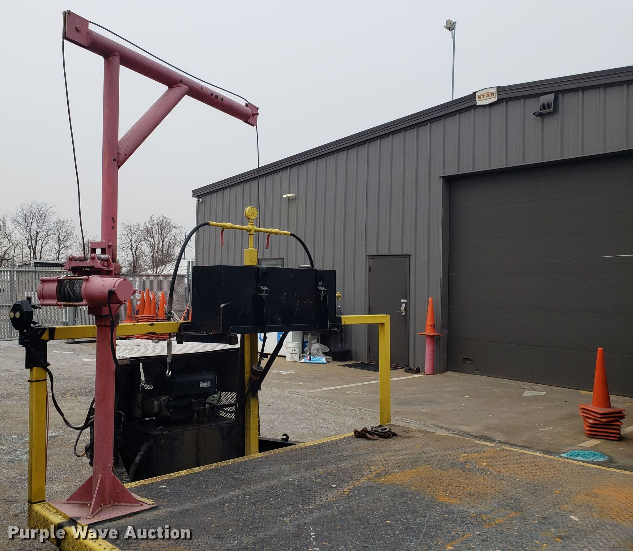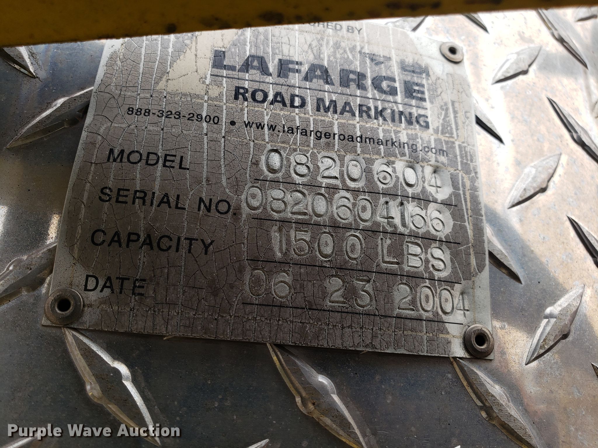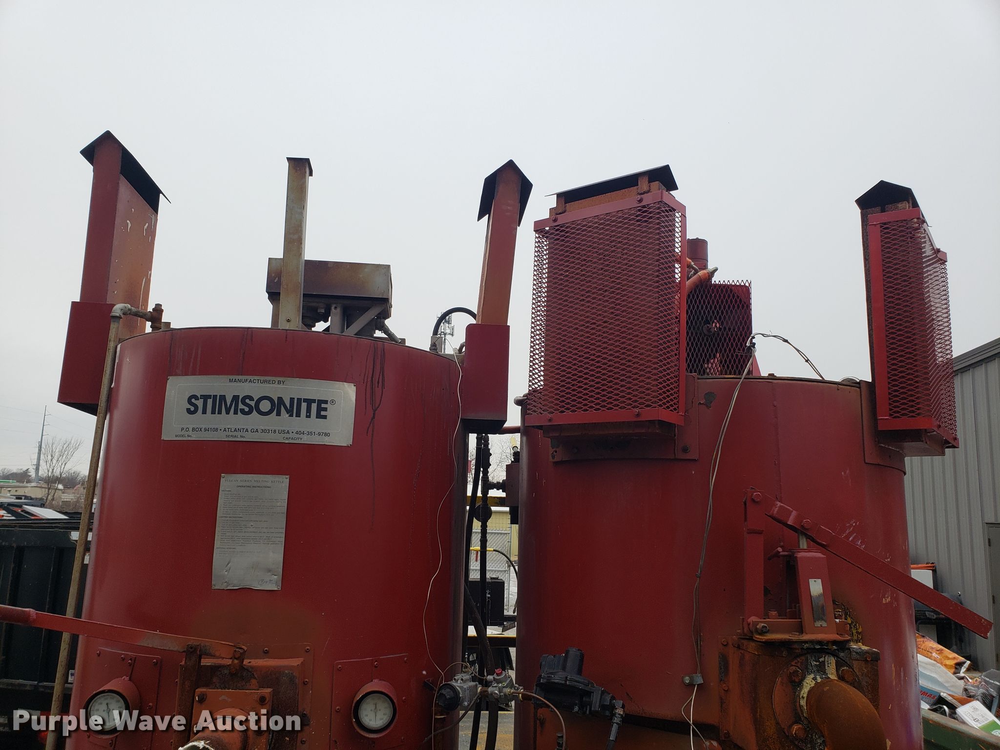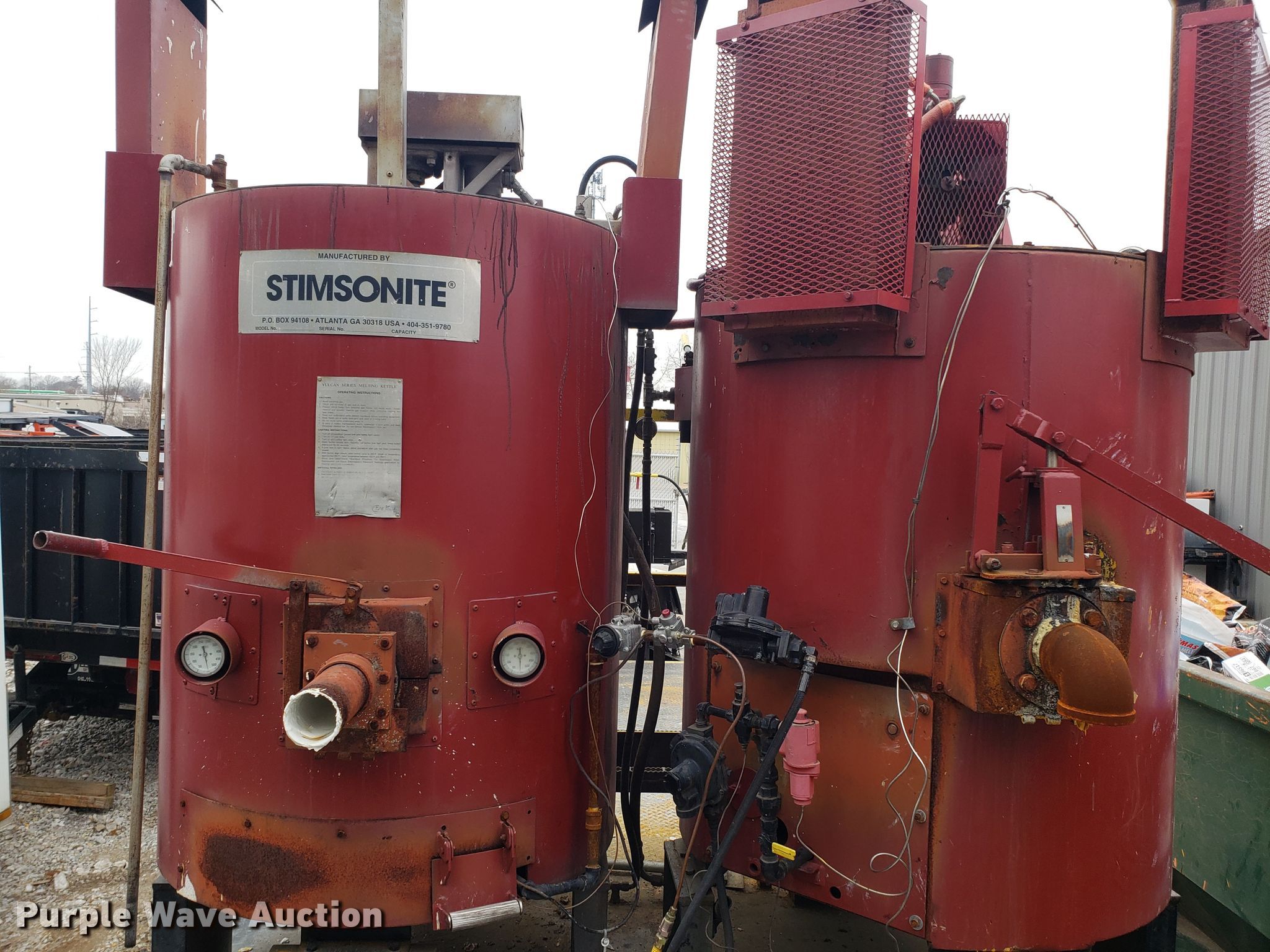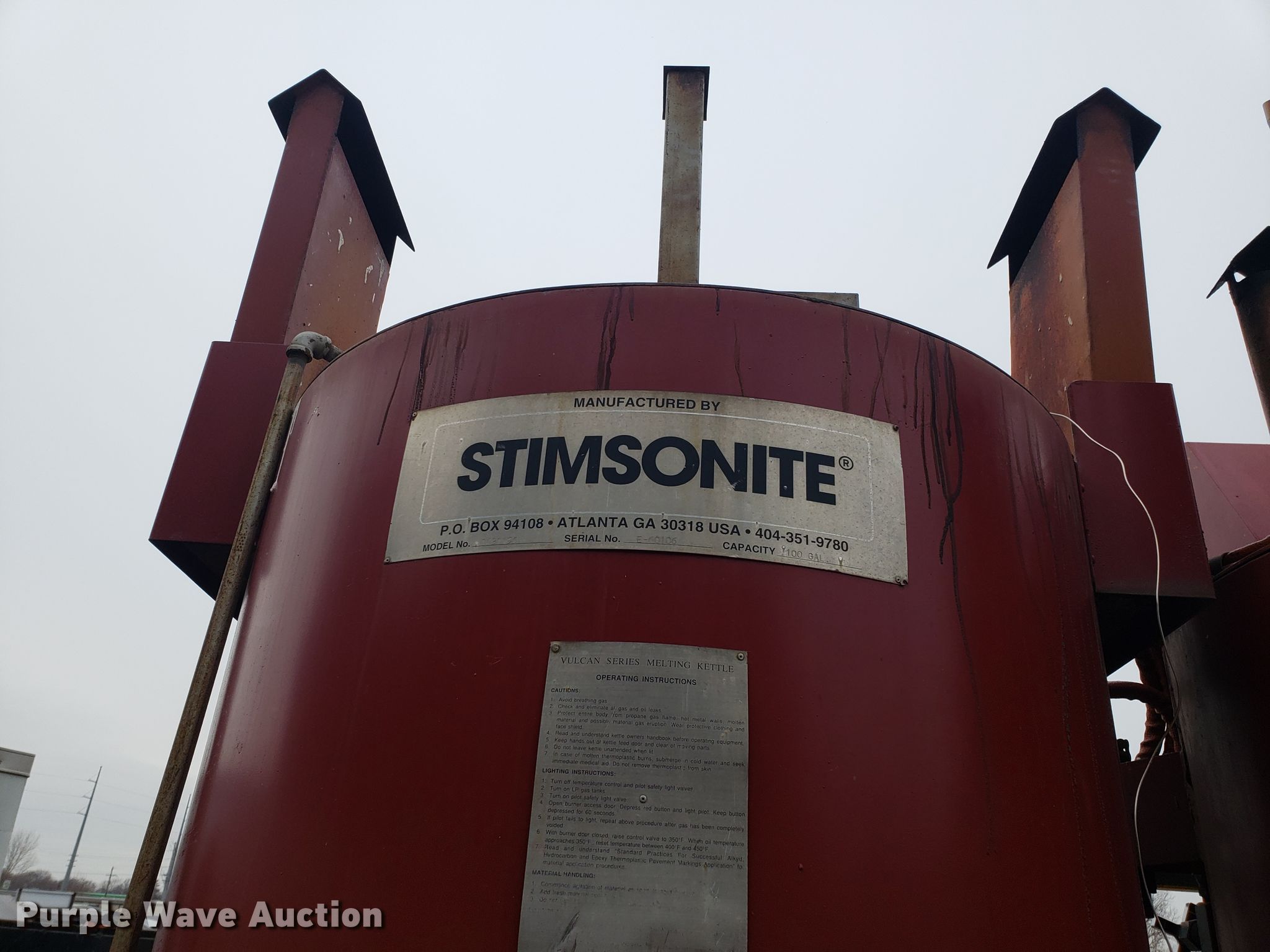 Purple Wave is selling a used Trailer Other in Missouri. This item is a 1995 shop built paint melt kettle trailer with the following: 20'L overall, 14'L x 90"W deck, Intel gas engine, 17.5 HP, Stimsonite air jacketed propane fired kettle, 1,500 lbs capacity, Lafarge oil jacketed propane fired kettle, 1,500 lbs capacity, Hydraulic driven augers, Electric hoist, 2 5/16" ball hitch, Spring suspension, Electric brakes, Tandem axle, 9.5-16.5 tires, Serial 000201033