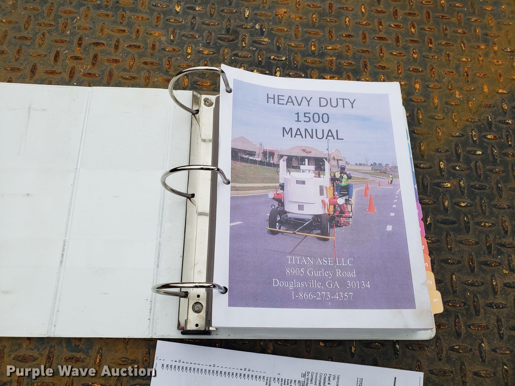 1995 shop built paint melt kettle trailer. 20'L overall, 14'L x 90"W deck, Intel gas engine 17.5 HP, Stimsonite air jacketed propane fired kettle 1,500 lbs capacity, Lafarge oil jacketed propane fired kettle 1,500 lbs capacity, Hydraulic driven augers, Electric hoist, 2 5/16" ball hitch, Spring suspension, Electric brakes, Tandem axle, 9.5-16.5 tires, Serial 000201033. Missouri title. DRXMVB000201033MO. Morgan Contractors. 929 Locust Hill Circle. Belton, MO 64012