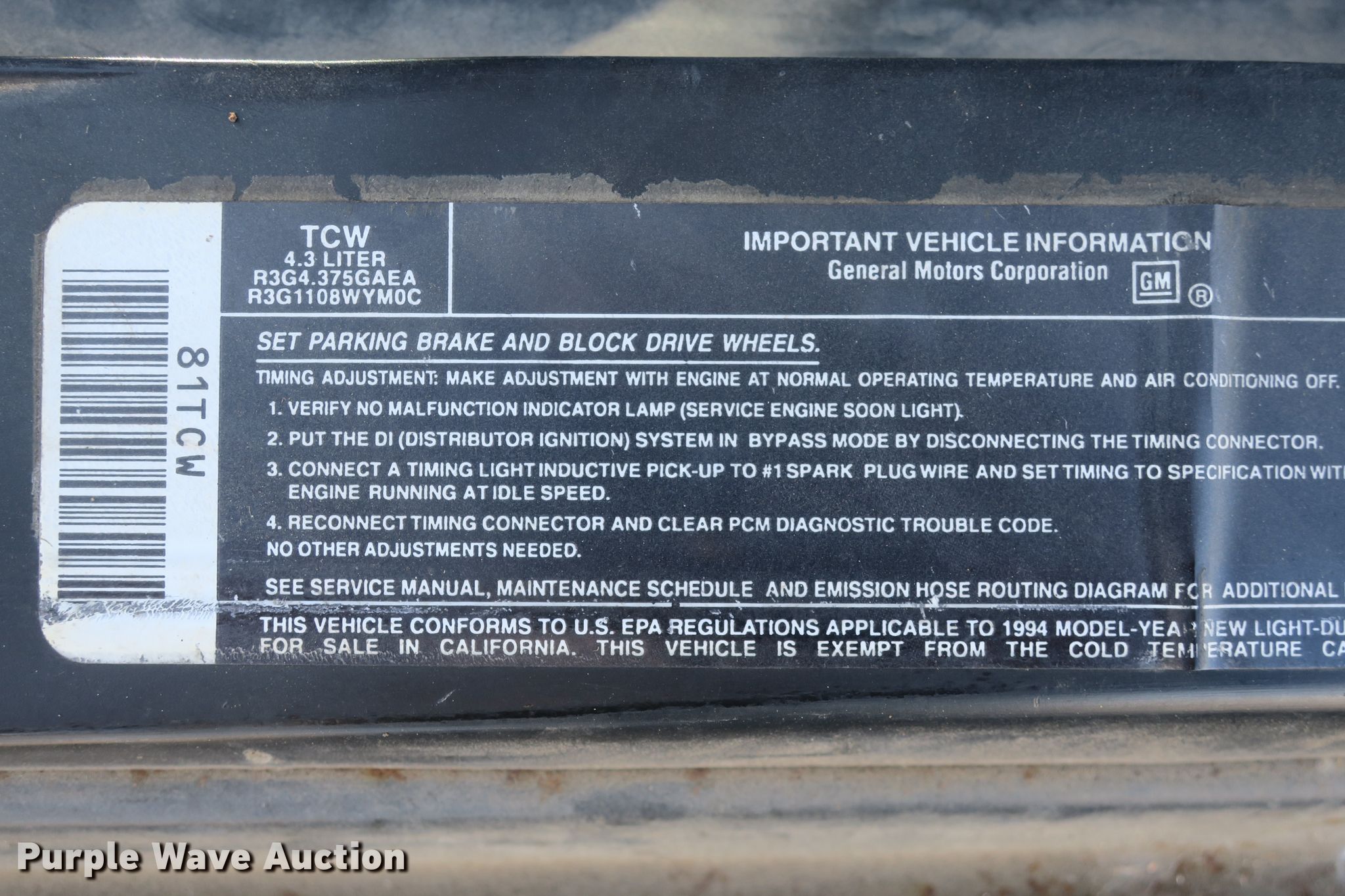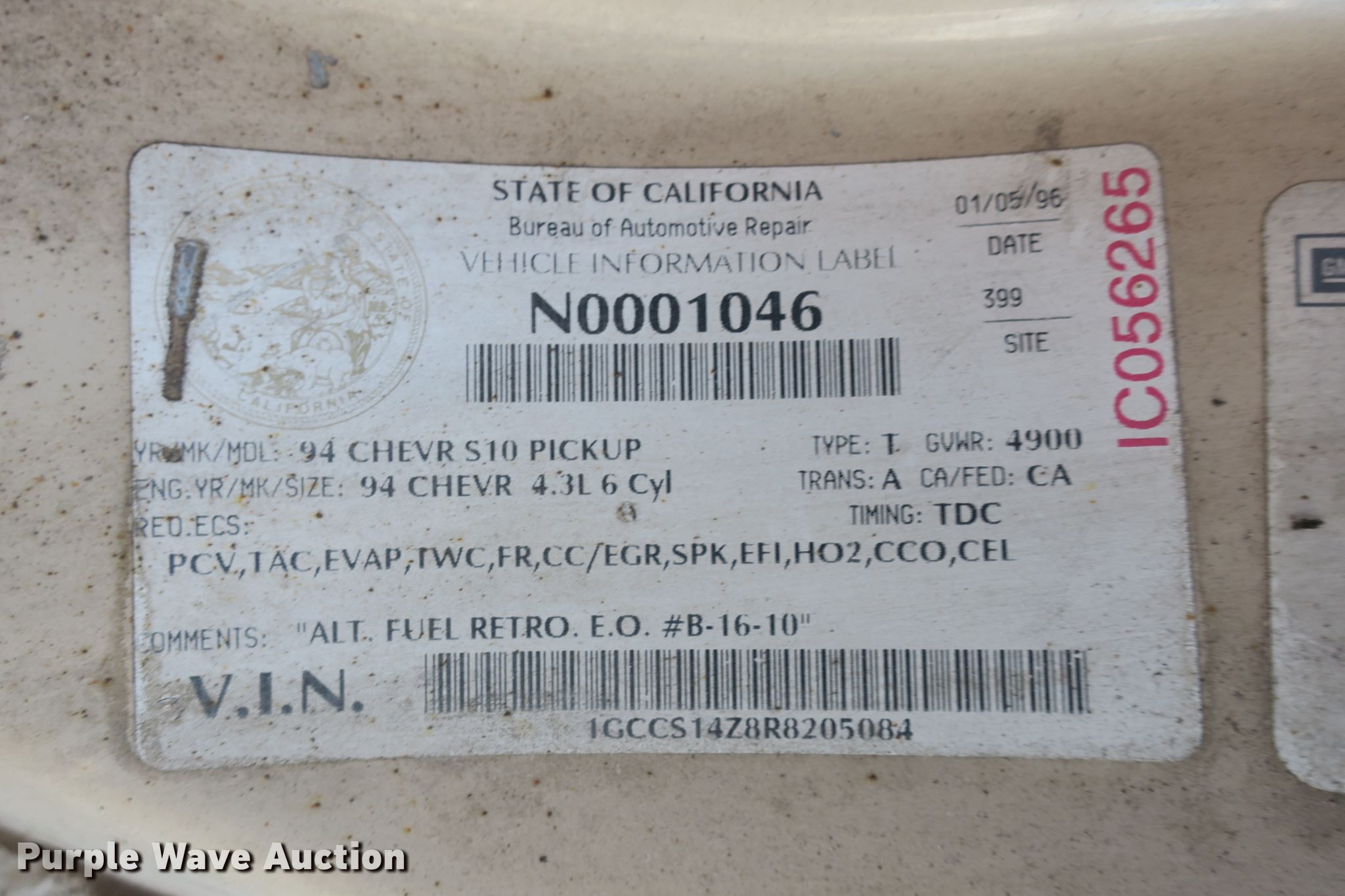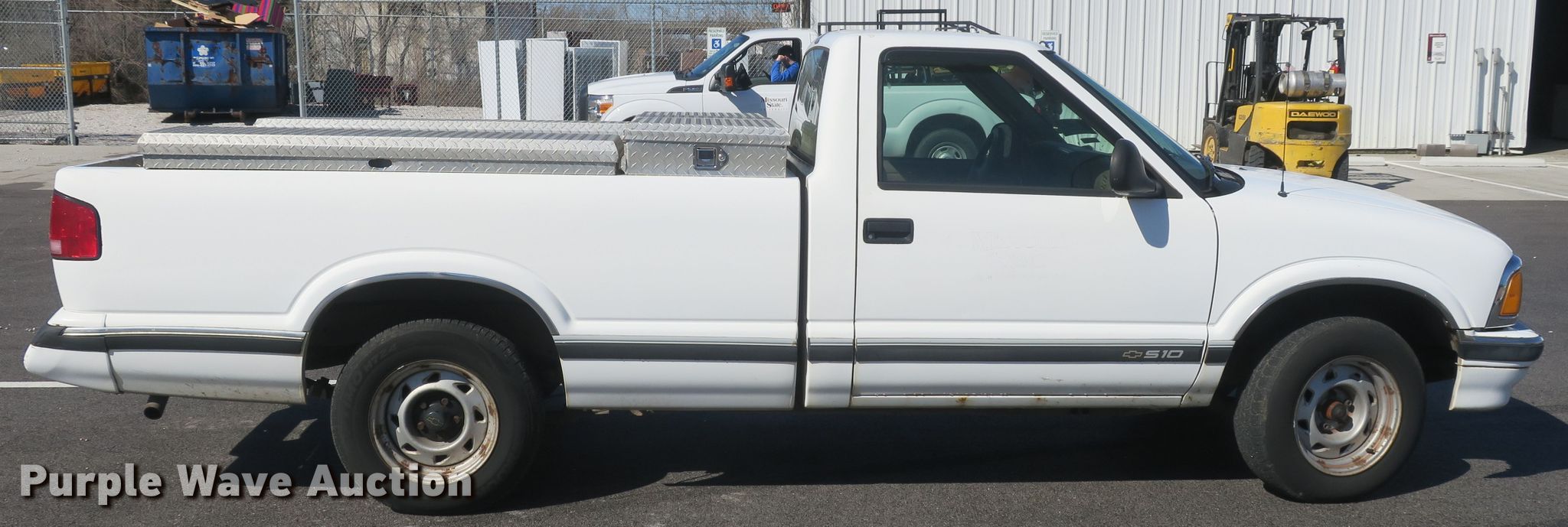 Purple Wave is selling a used Compact Pickup or Van in Missouri. This item is a 1994 Chevrolet S10 pickup truck with the following: 51,965 miles on odometer, 4.3L V6 OHV 12V gas and CNG capable engine, Automatic transmission, AC and heat, P205/75R15 tires, Toolboxes are locked, no keys
