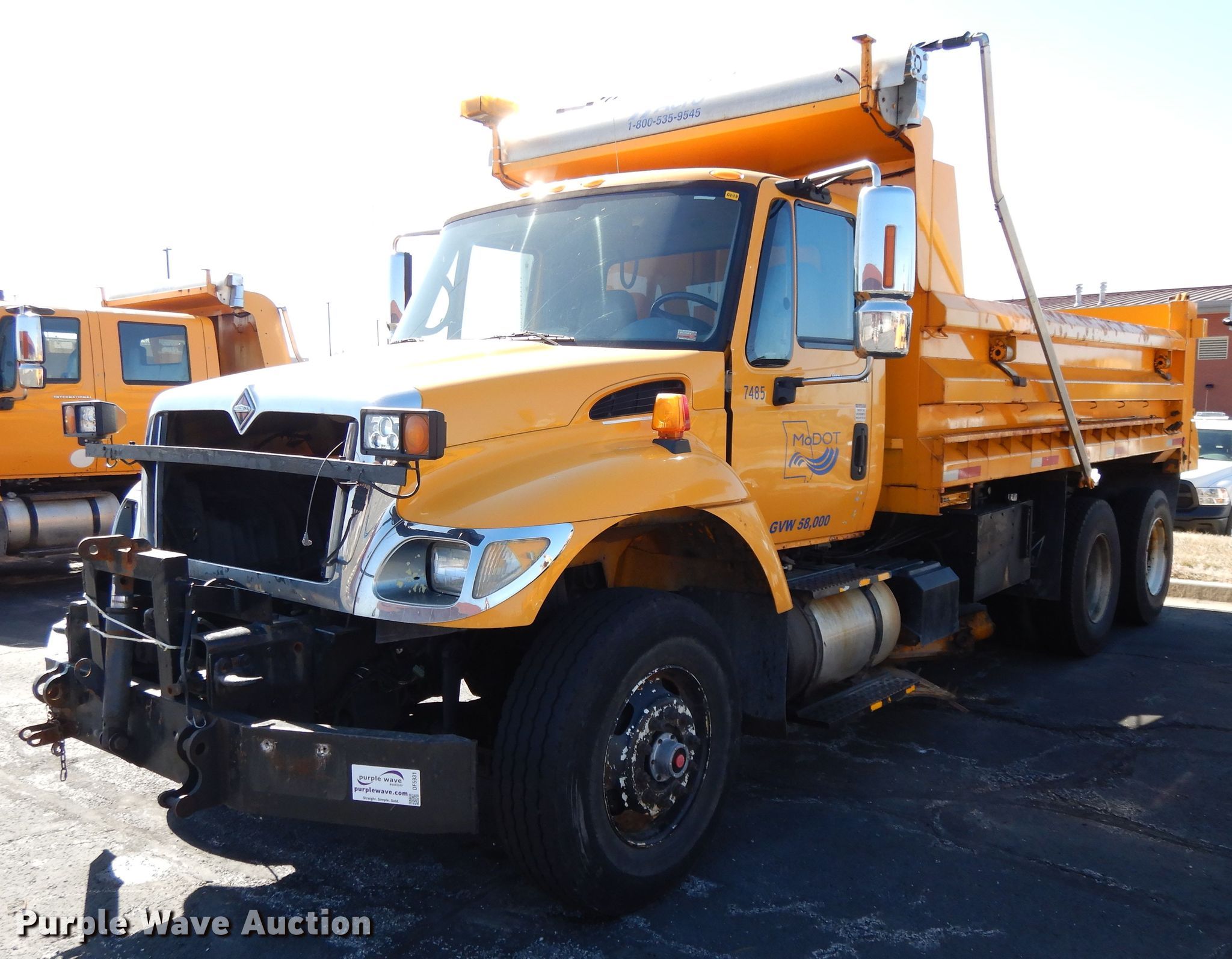Purple Wave is selling a used Construction Dump Truck in Missouri. This item is a 2006 International 7400 dump truck with the following: Approximately 119,702 last recorded miles on odometer, International 570 9.3L L6 diesel engine, Automatic transmission, Tandem axle, AC and heat, Cruise, Power windows, 16'L x 96"W steel dump bed, 36" side height, Single ram hoist, Roll tarp, Mid-mounted snow plow, Walking beam suspension, Air brakes, 213" wheelbase, 315/80R22.25 front tires, 11R22.5 rear tires, GVWR 58,000 lbs, FAWR 18,000 lbs, IAWR 20,000 lbs, RAWR 20,000 lbs, Two way radio not included, Emergency lights not included, Decals will be removed prior to auction, Ignition missing, Engine disassembled, Non-operational unit, MODOT ID 7485