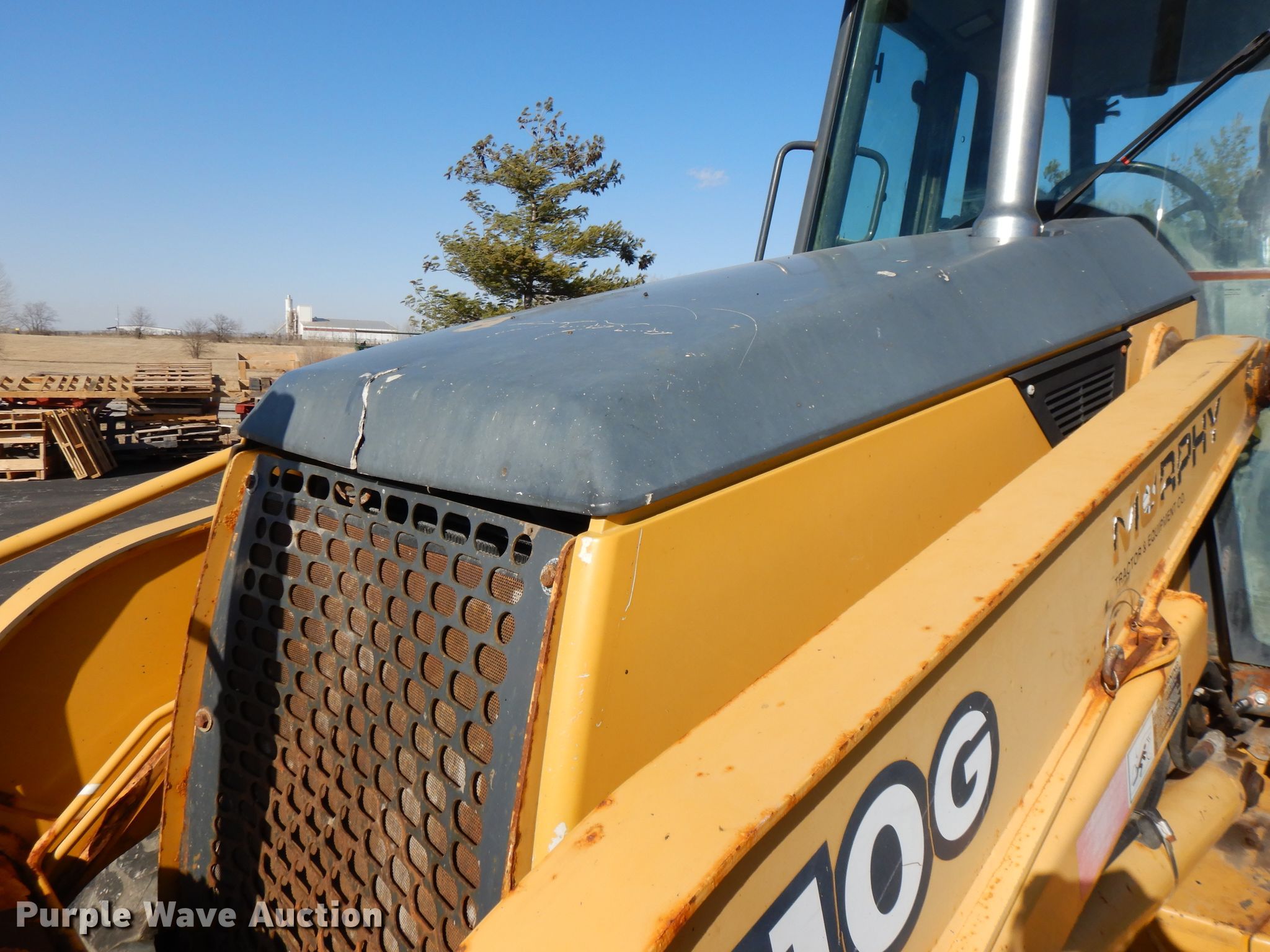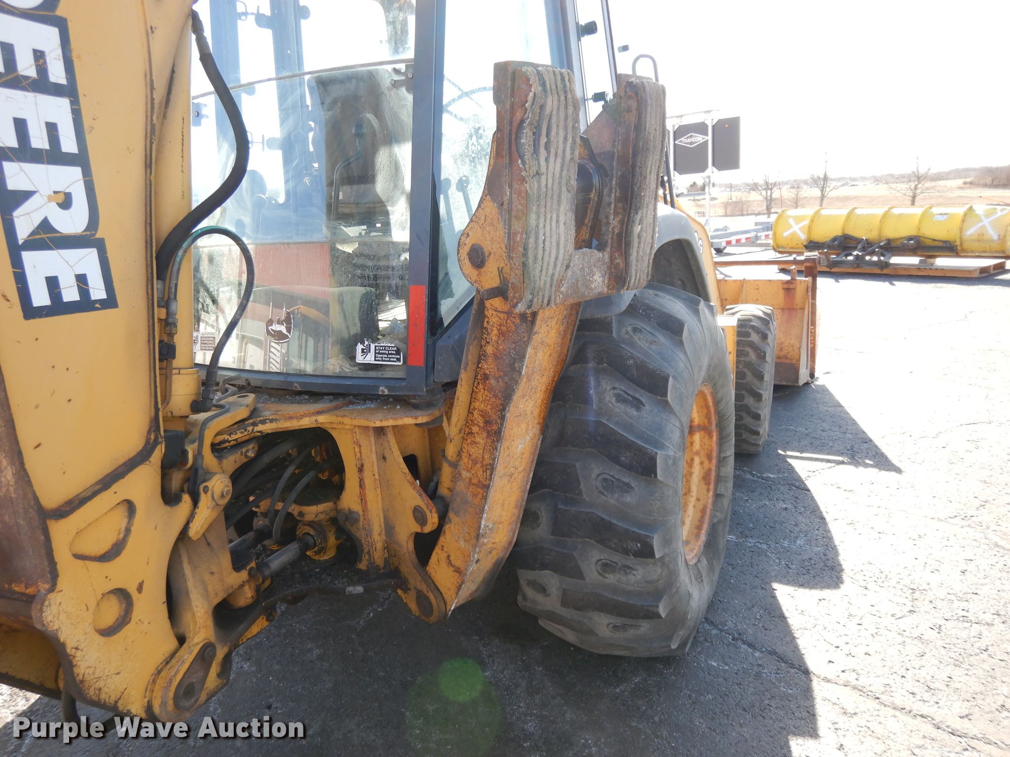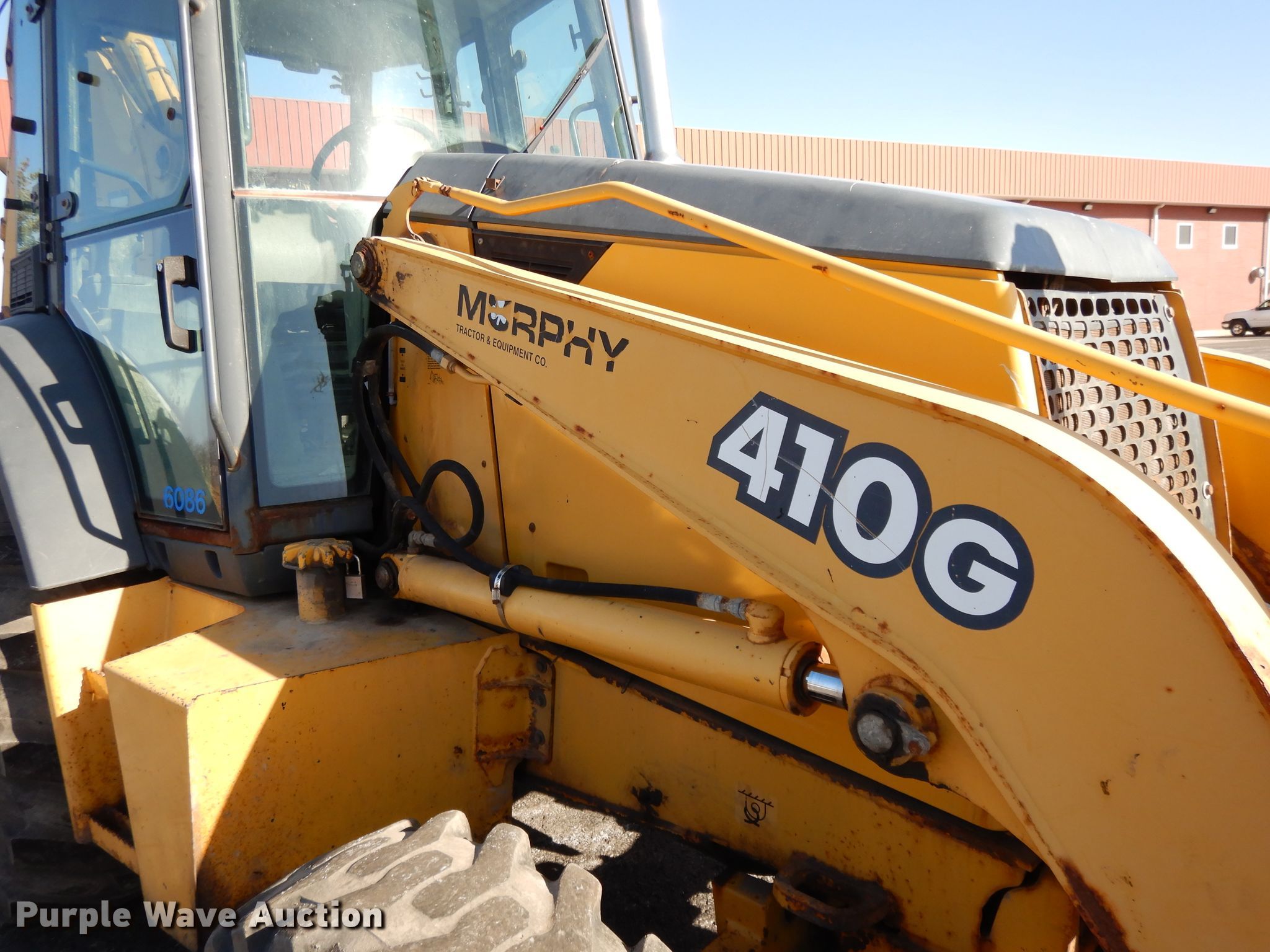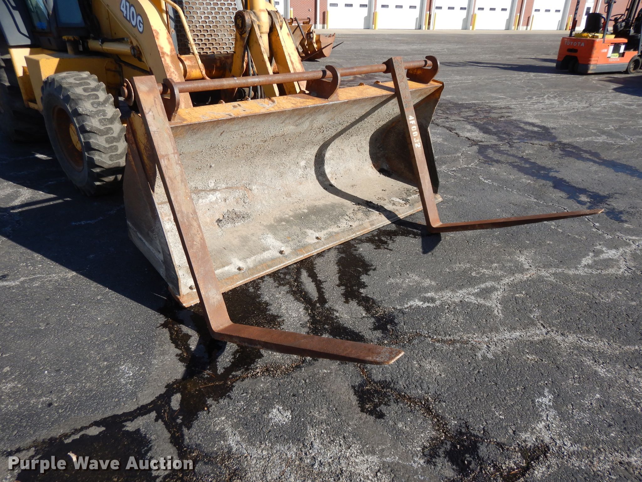Purple Wave is selling a used Tractor Loader Backhoe in Missouri. This item is a 2003 John Deere 410G backhoe with the following: 4,002 hours on meter, Six cylinder diesel engine, Shuttle shift transmission, 4F-4R gears, Four wheel drive, EROPS, AC and heat, Two stick backhoe controls, 92"W loader bucket, Bolt-on cutting edge, 42"L pallet forks, 24"W backhoe bucket, Weld-on cutting edge, (4) teeth, 48"W backhoe bucket, Weld-on cutting edge, 12.5/80-18 front tires, 21L-24 rear tires, Stop buzzer comes on while moving, Serial T0410GX918607, MODOT ID 06086