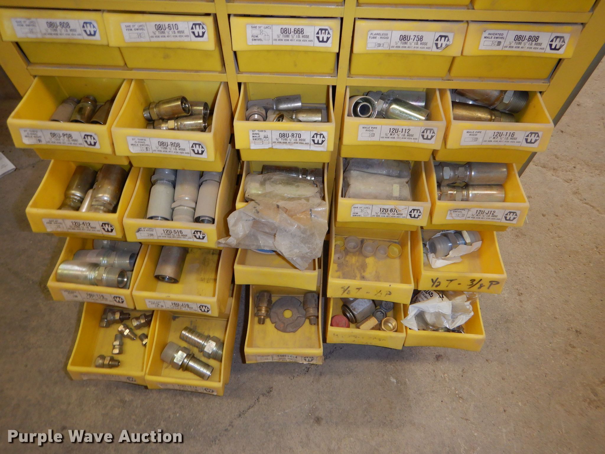 Purple Wave is selling a used Tools in Kansas. This item is a Weatherhead hydraulic fittings bin with the following: Hydraulic fittings included