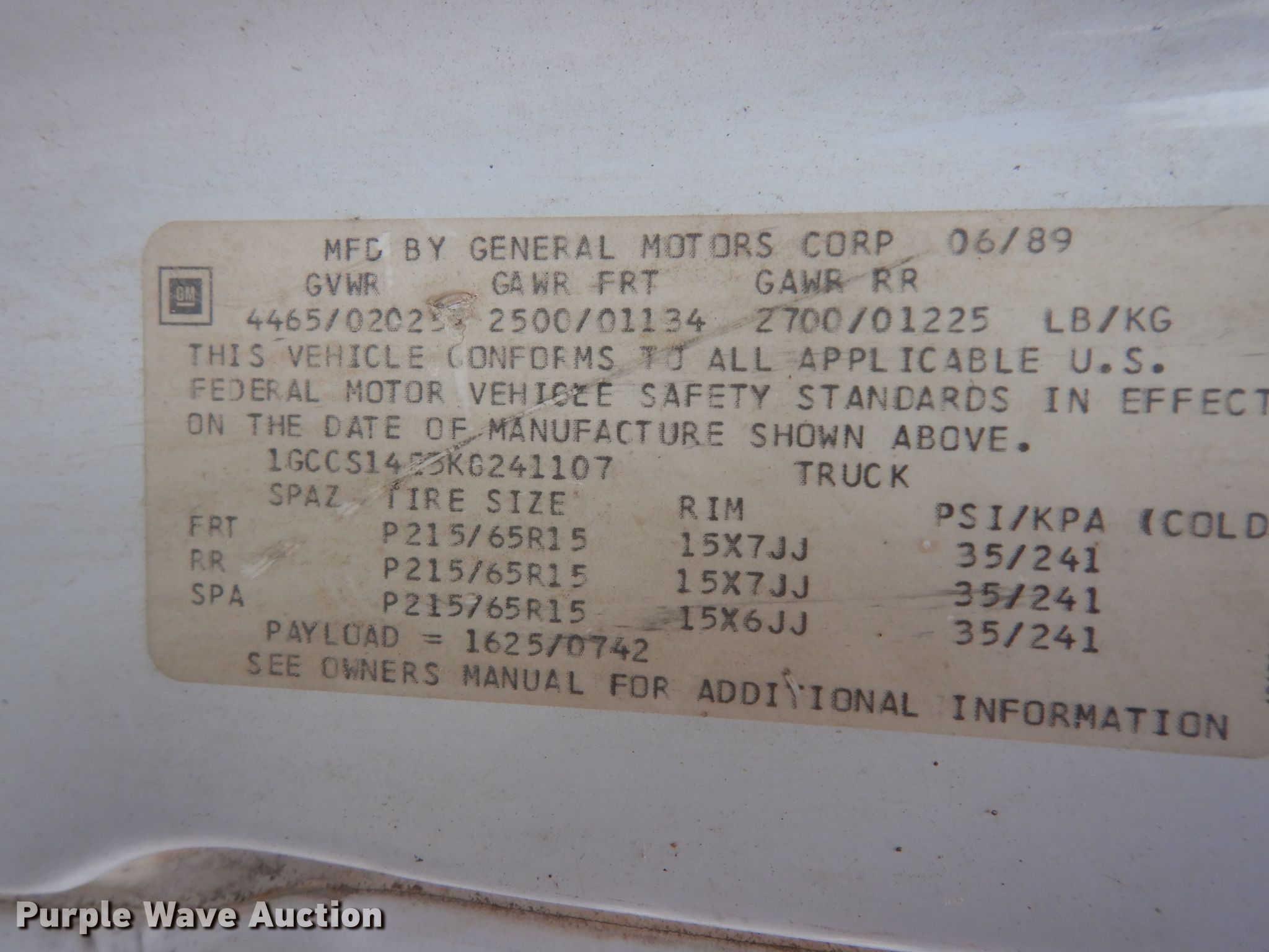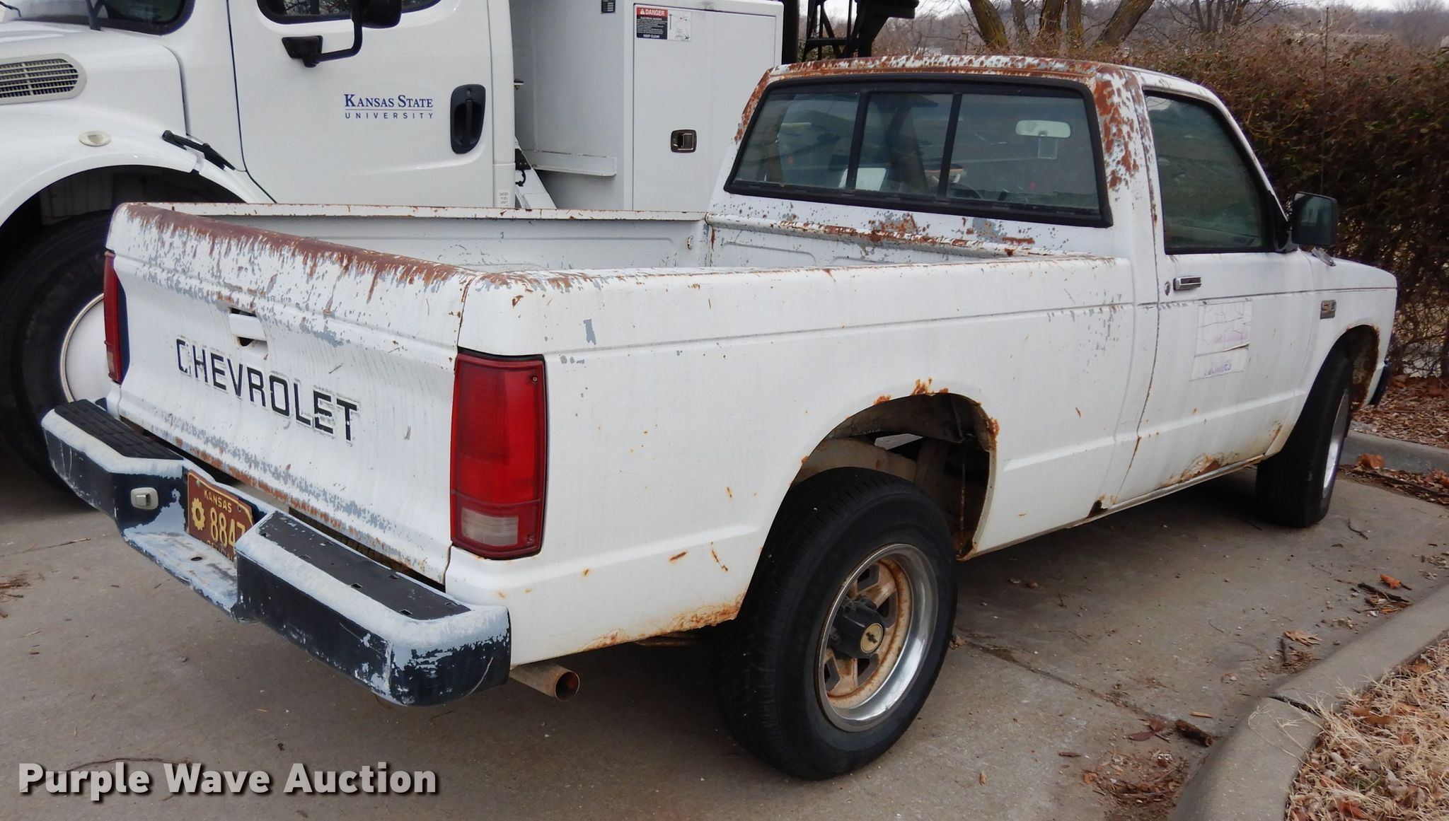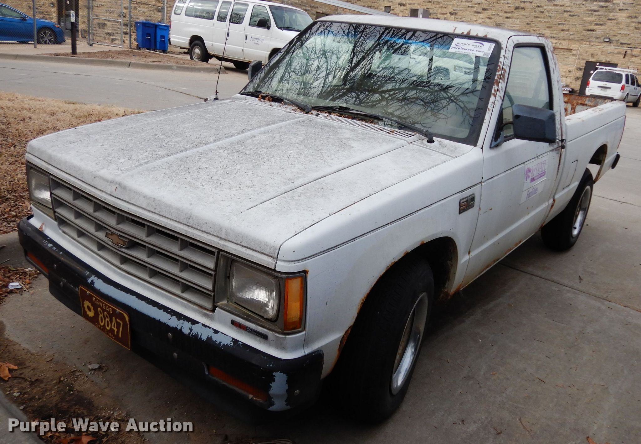 Purple Wave is selling a used Compact Pickup or Van in Kansas. This item is a 1989 Chevrolet S10 pickup truck with the following: 48,405 miles on odometer, 2.5L L4 OHV 8V gas engine, Automatic transmission, Heat, 205/75R15 tires, Dead battery, Floorboard is rusted through, Unit is hard to start