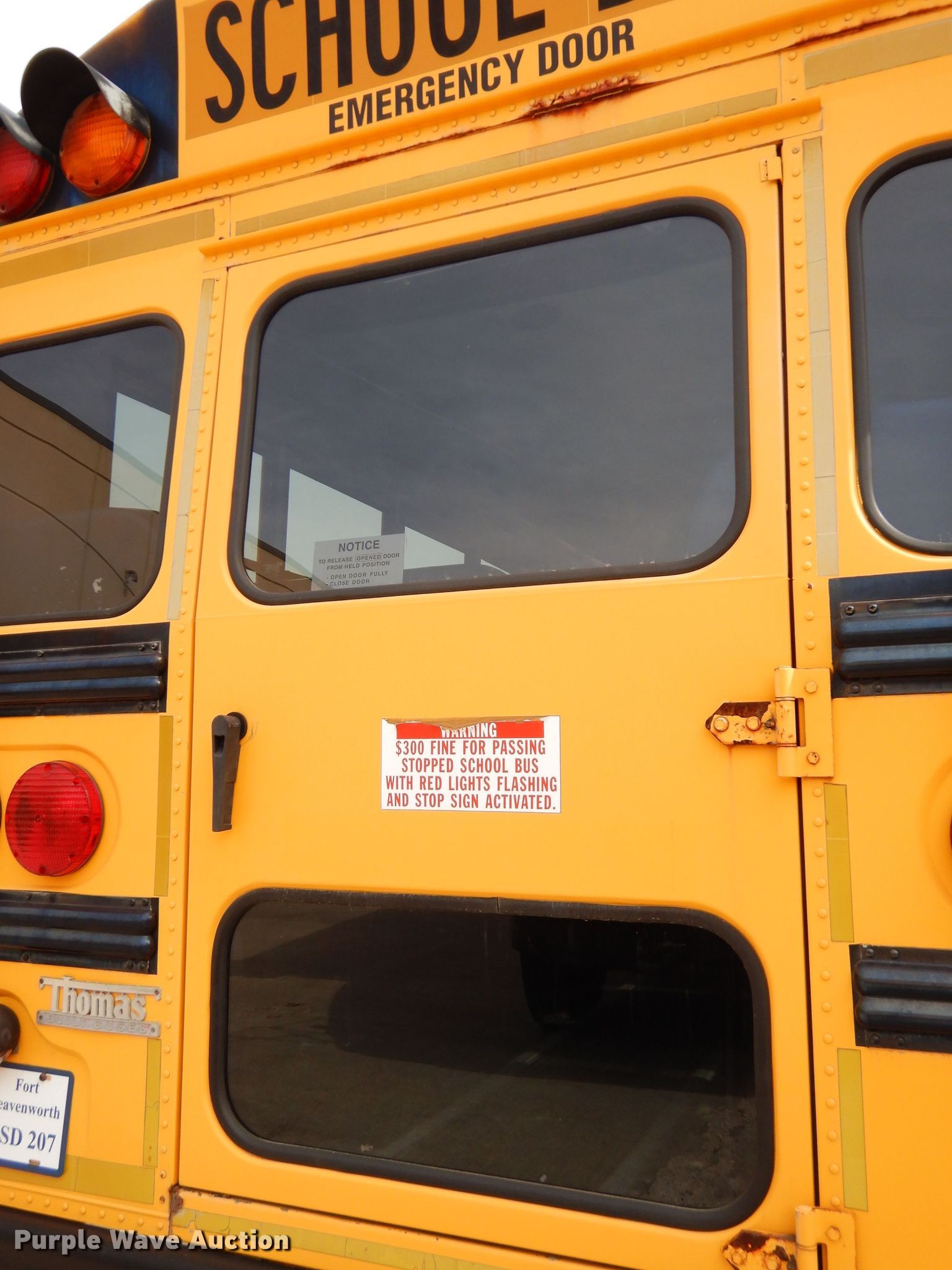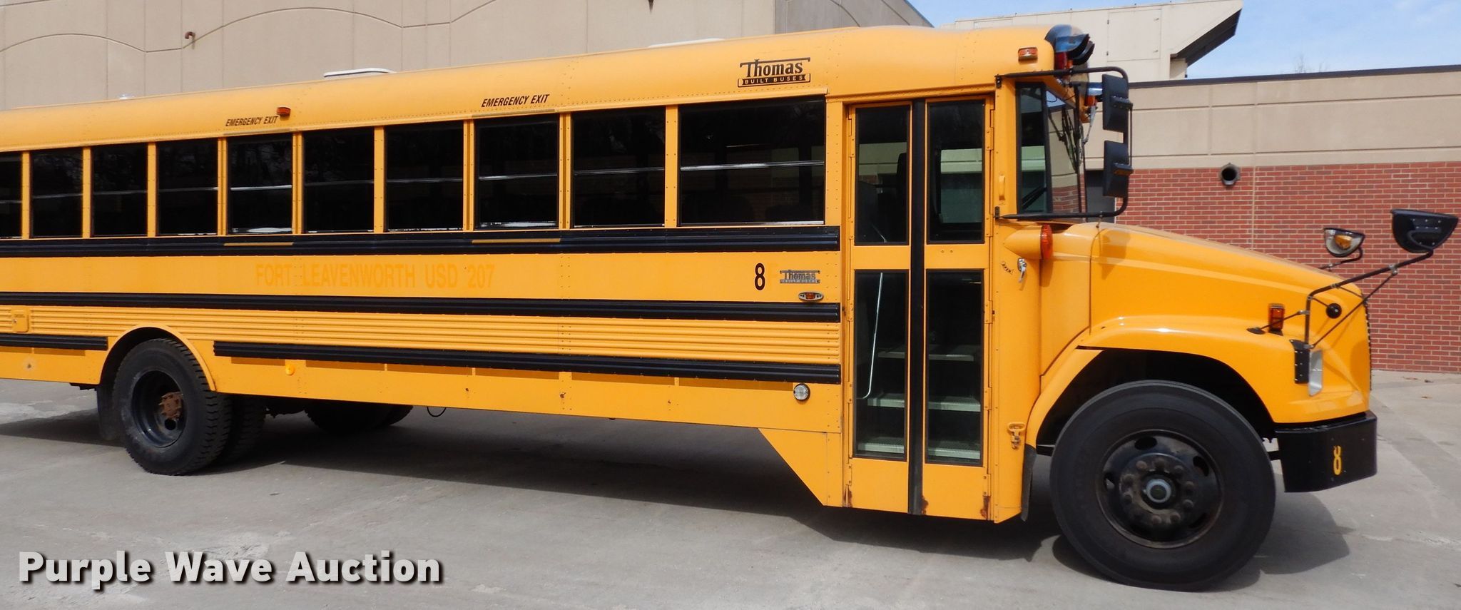 Purple Wave is selling a used Bus in Kansas. This item is a 2001 Freightliner FS65 school bus with the following: 85,736 miles on odometer, 8,611 hours on meter, Cummins six cylinder diesel engine, Automatic transmission, Single axle, Heat, 71 passenger capacity, Battery shut-off switch, Spring suspension, Hydraulic brakes, 276" wheelbase, 11R22.5 tires, GVWR 30,000 lbs, (3) additional seats, Unit# 8F