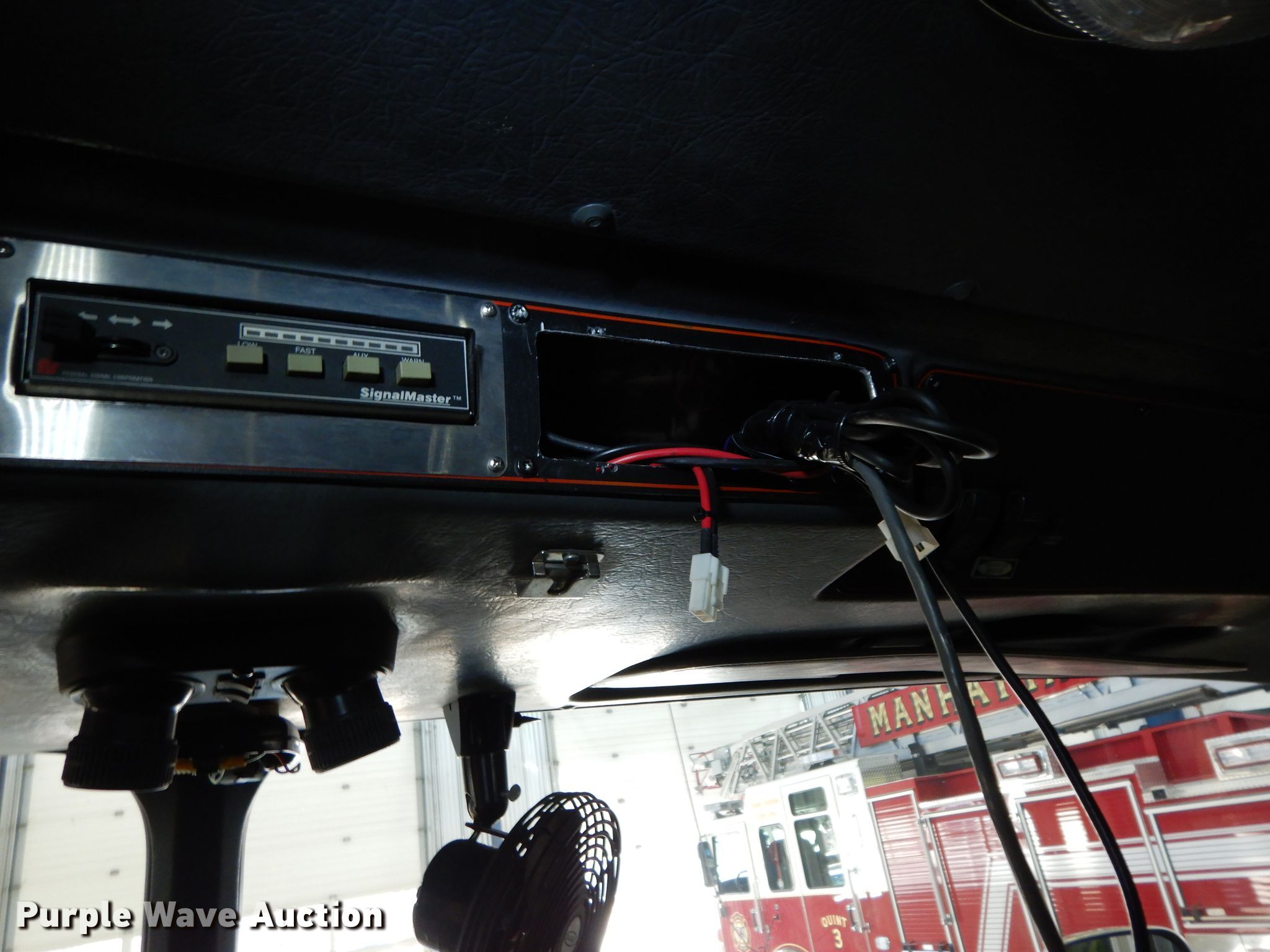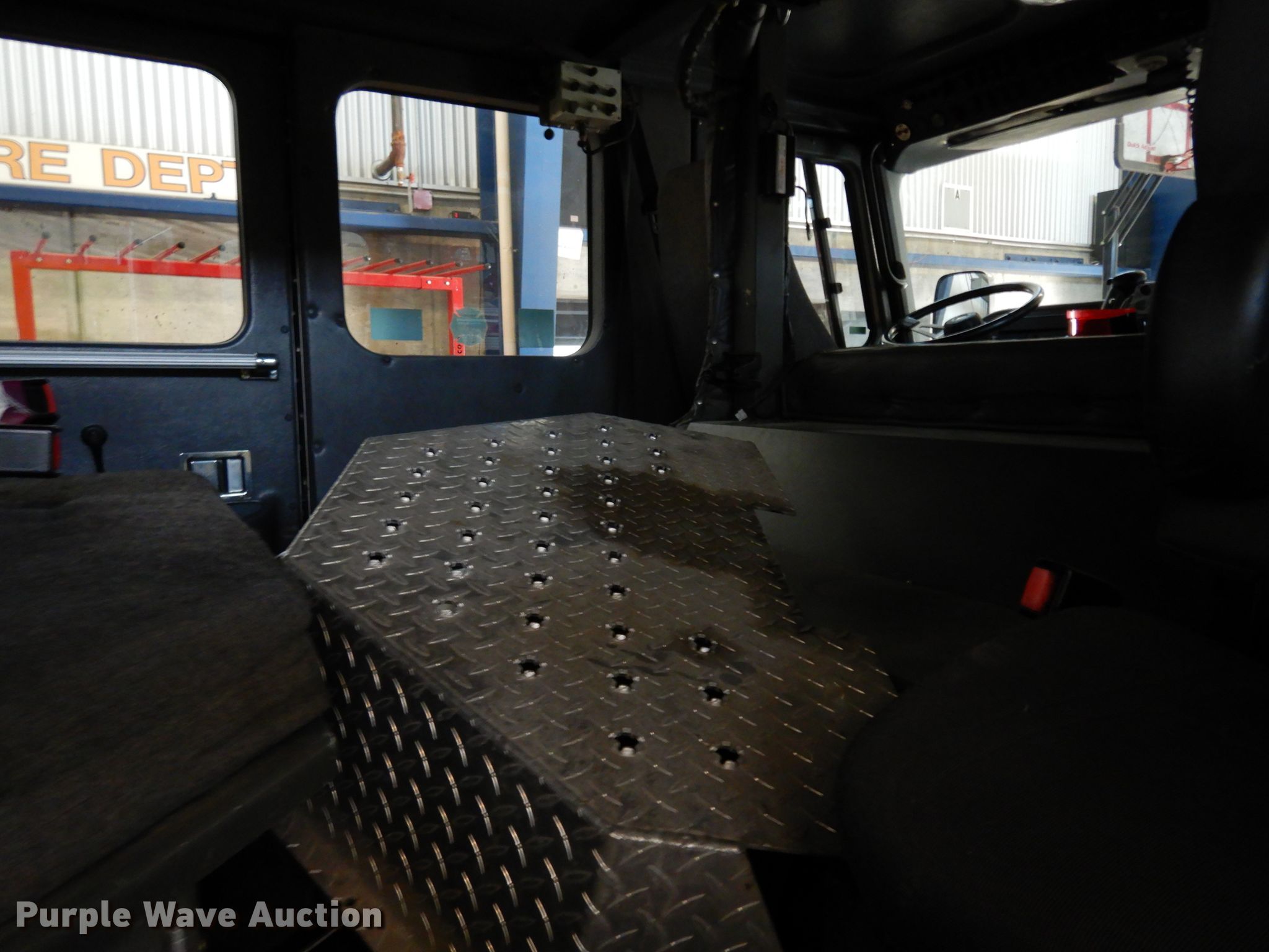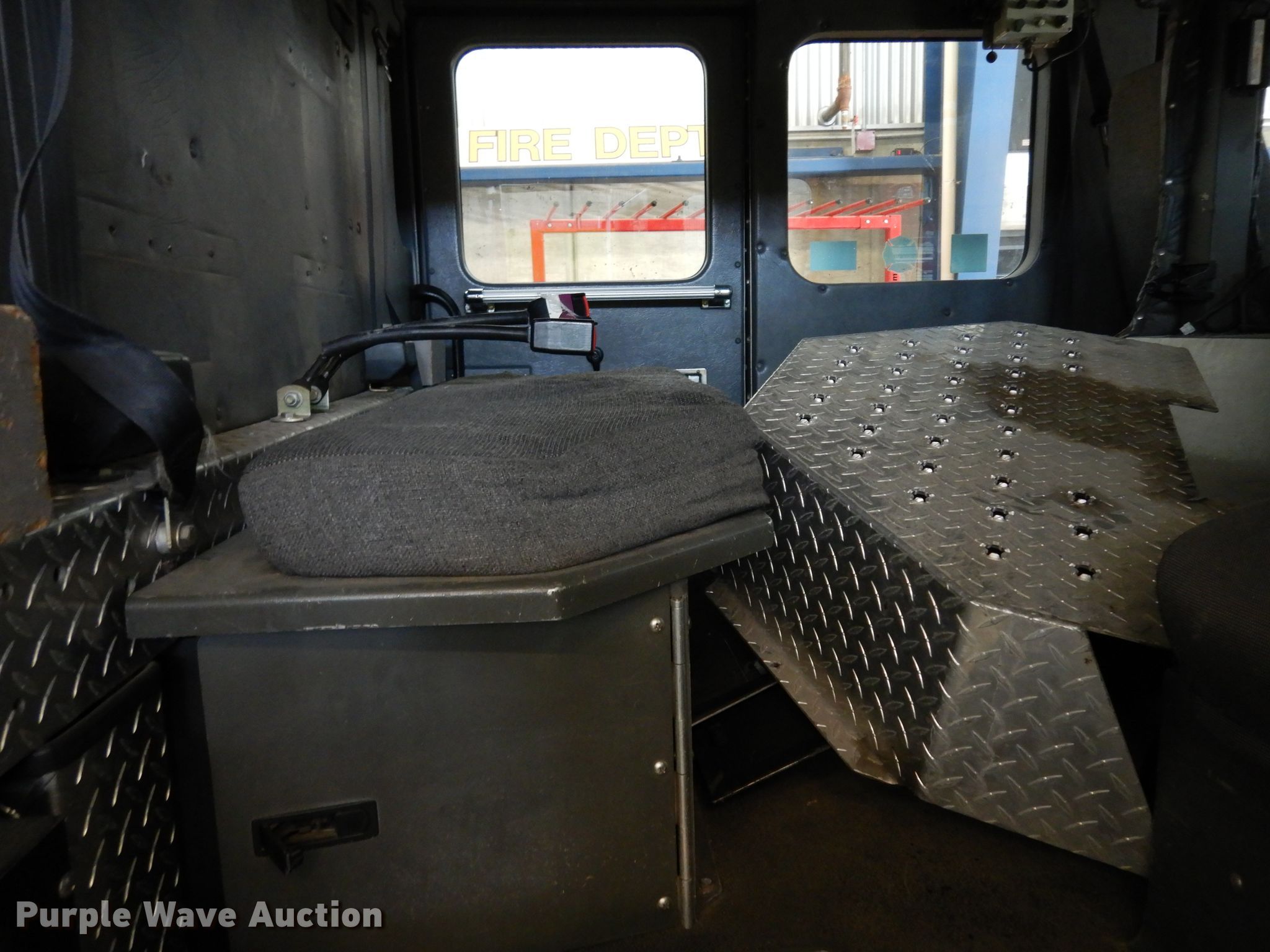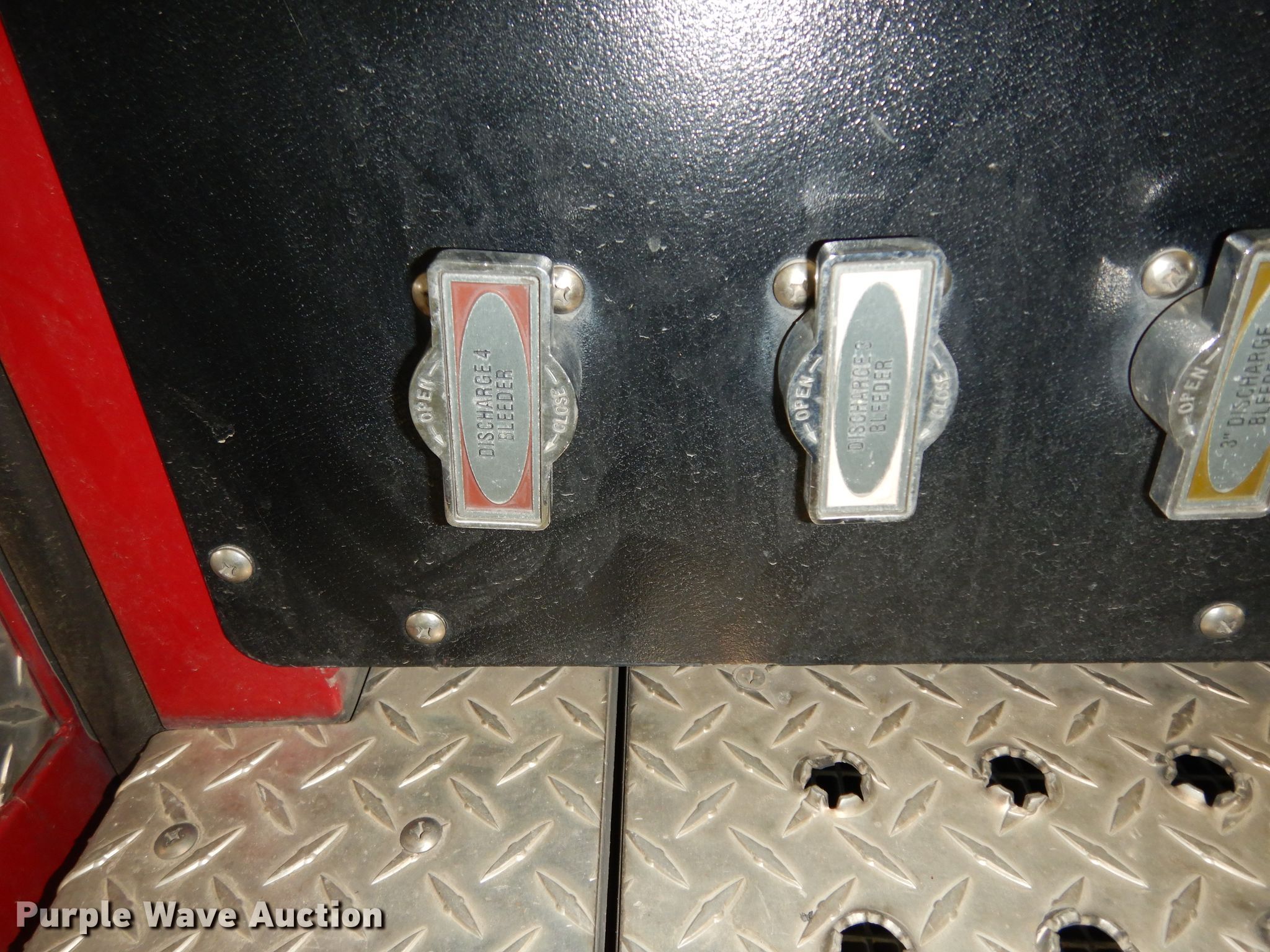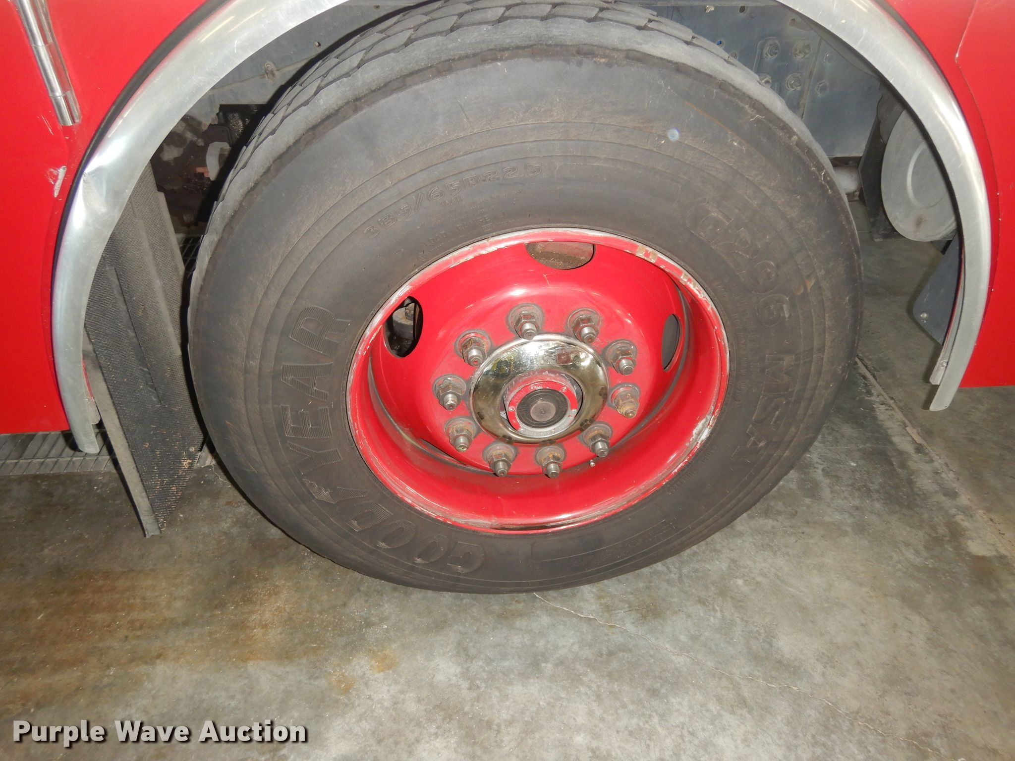 Purple Wave is selling a used Fire Truck or Emergency Vehicle in Kansas. This item is a 2001 E-one quint ladder fire truck with the following: 103,534 miles on odometer, 10,349 hours on meter, Cummins ISMC 10.8L L6 diesel engine, 450 HP, Allison automatic transmission, Single axle, AC and heat, E-One HP75 Cyclone II Sidestacker 75 aerial platform, 75' max lift height, Akromatic ladder gun, 1,000 gpm, Hale 1,500 gpm pump, 500 gallon water tank, (4) ladders, 10' attic ladder, 24' extension ladder, 35' extension ladder, 20' roof ladder, Rear stabilizers, Double frame, Spring suspension, Air brakes, 210" wheelbase, Goodyear 385/65R22.5 front tires, Goodyear 315/80R22.5 rear tires, GVWR 49,700 lbs, Owner/operator manual and CD, Dead battery, Passenger seat missing, Non-operational ladder, Swivel assembly removed, One frame cracked at driver side rear axle, Decals will be removed prior to auction