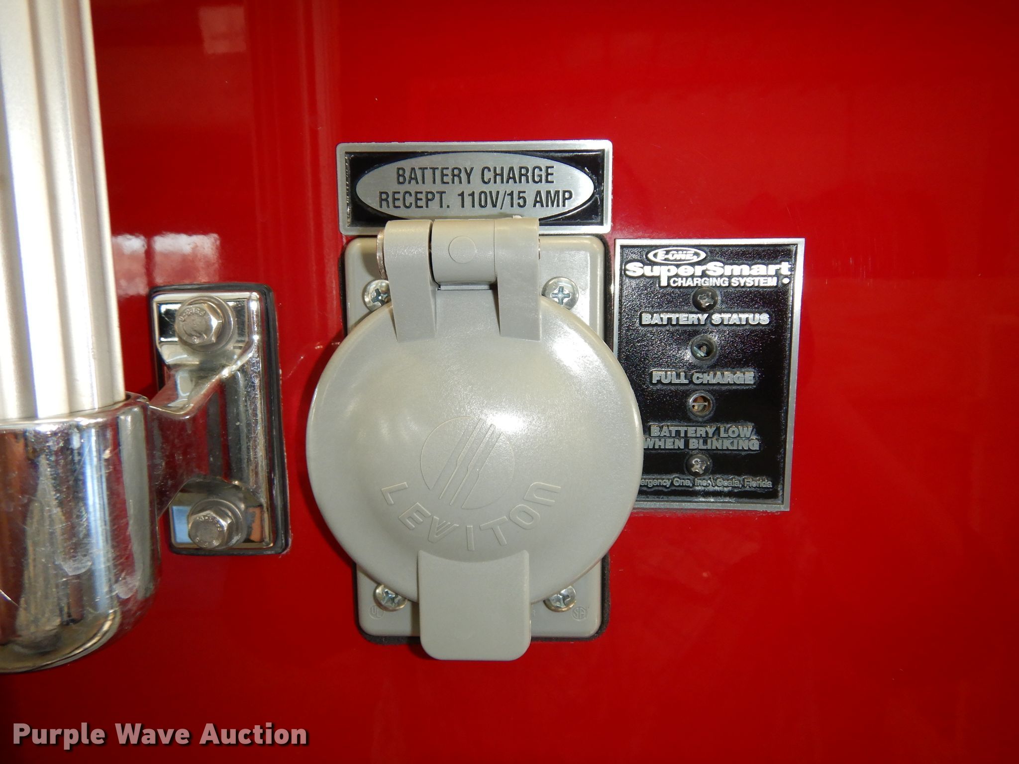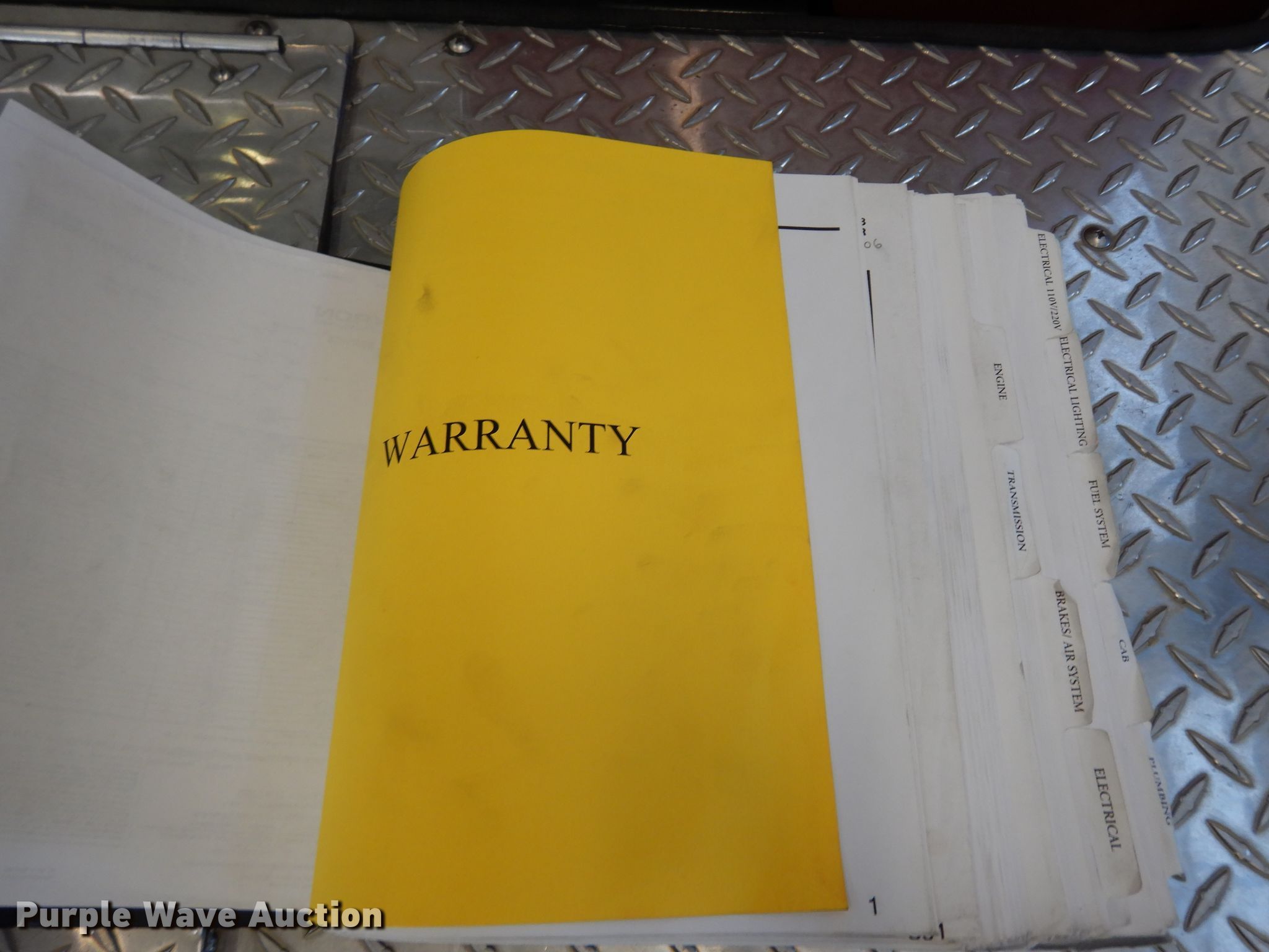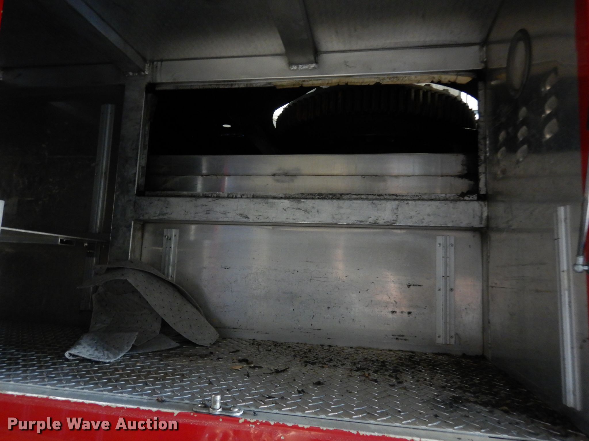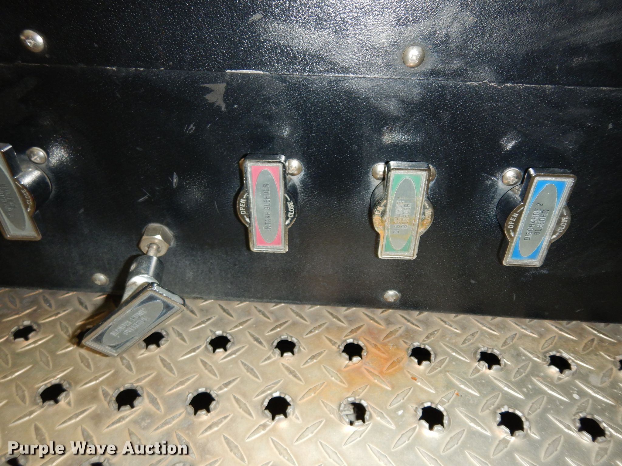 Purple Wave is selling a used Fire Truck or Emergency Vehicle in Kansas. This item is a 2001 E-one quint ladder fire truck with the following: 103,534 miles on odometer, 10,349 hours on meter, Cummins ISMC 10.8L L6 diesel engine, 450 HP, Allison automatic transmission, Single axle, AC and heat, E-One HP75 Cyclone II Sidestacker 75 aerial platform, 75' max lift height, Akromatic ladder gun, 1,000 gpm, Hale 1,500 gpm pump, 500 gallon water tank, (4) ladders, 10' attic ladder, 24' extension ladder, 35' extension ladder, 20' roof ladder, Rear stabilizers, Double frame, Spring suspension, Air brakes, 210" wheelbase, Goodyear 385/65R22.5 front tires, Goodyear 315/80R22.5 rear tires, GVWR 49,700 lbs, Owner/operator manual and CD, Dead battery, Passenger seat missing, Non-operational ladder, Swivel assembly removed, One frame cracked at driver side rear axle, Decals will be removed prior to auction