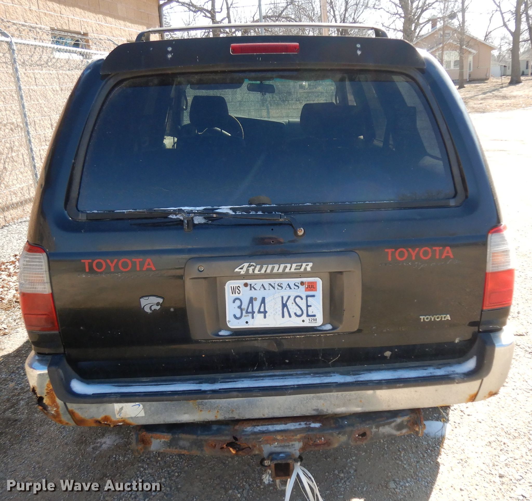 Purple Wave is selling a used Passenger Vehicle in Kansas. This item is a 1997 Toyota 4Runner SUV with the following: Unknown miles on odometer, 3.4L V6 DOHC 24V gas engine, Automatic transmission, Four wheel drive, AC and heat, Power windows and locks, 275/65R18 tires, No keys, Doors locked, Non-operational unit