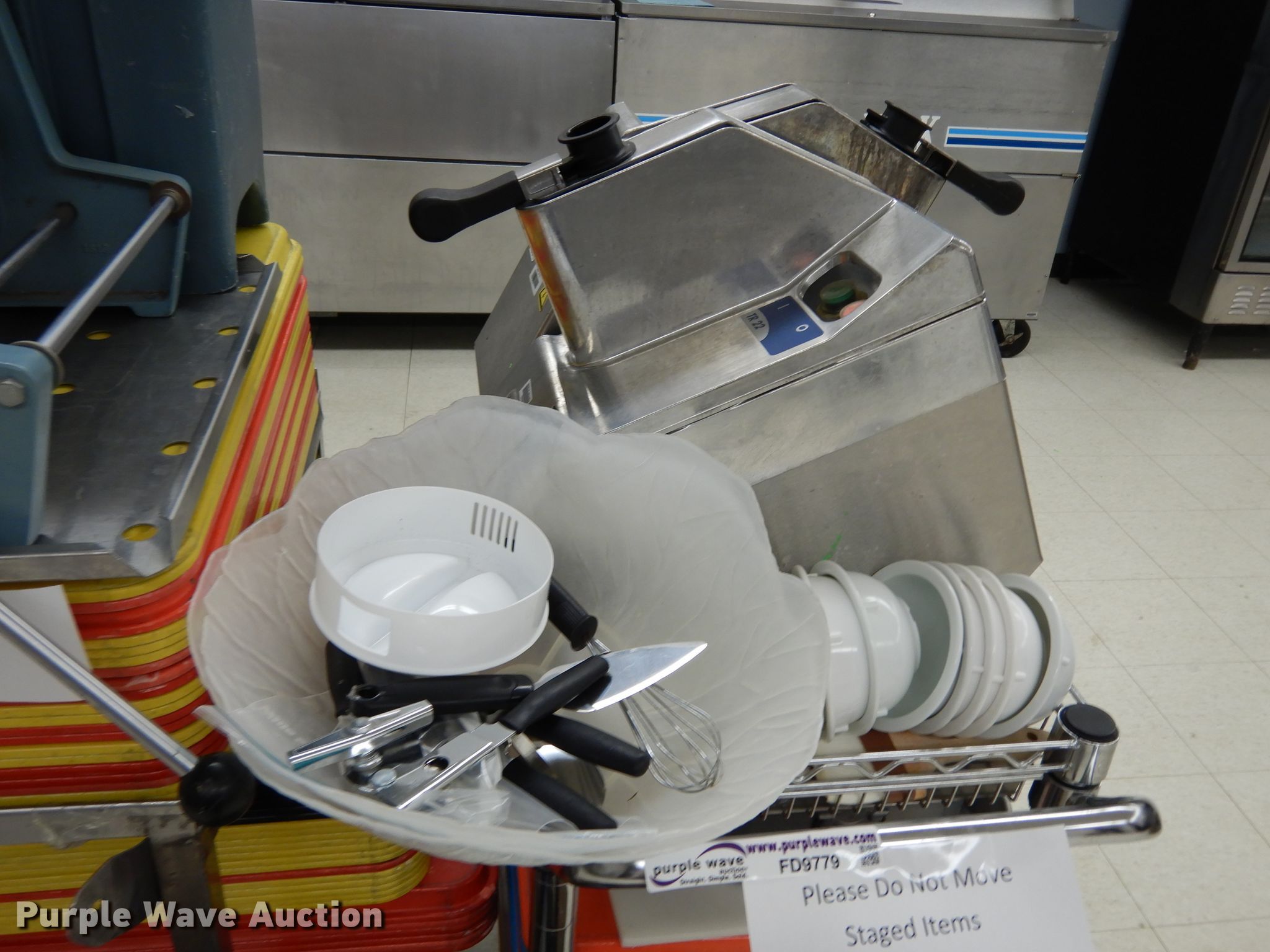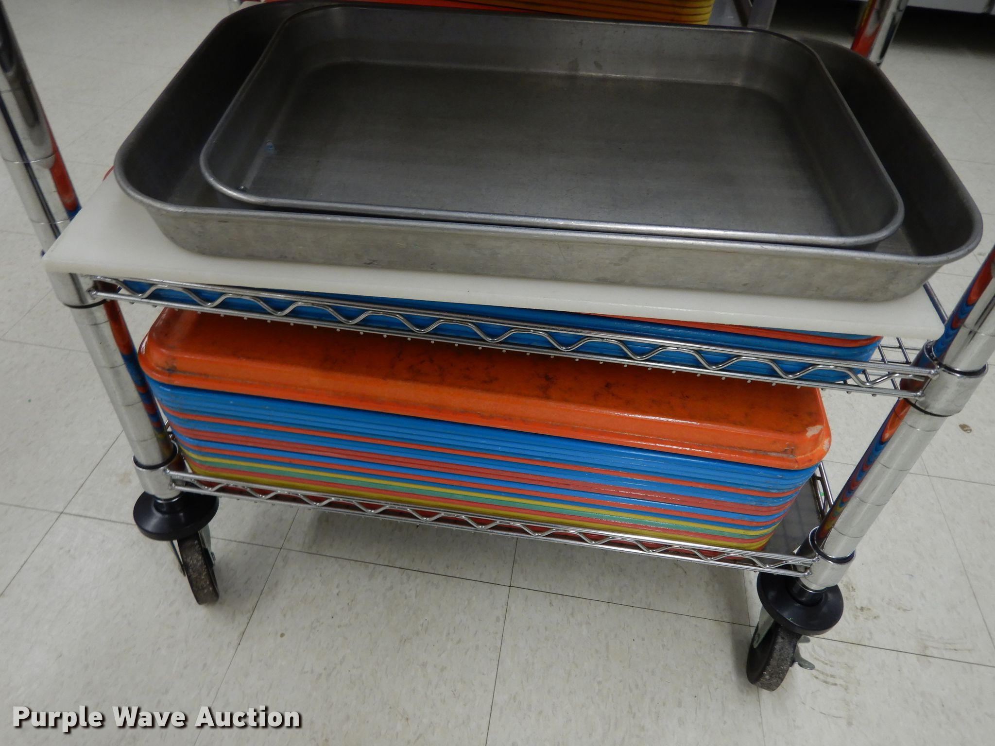 Purple Wave is selling a used Restaurant Equip. in Kansas. This item is a Restaurant equipment with the following: (2) food carts, Large trays, Hot box, Dick Blick 906, (2) Electrolux-Dito, Bowls, Cutting board, (2) pans