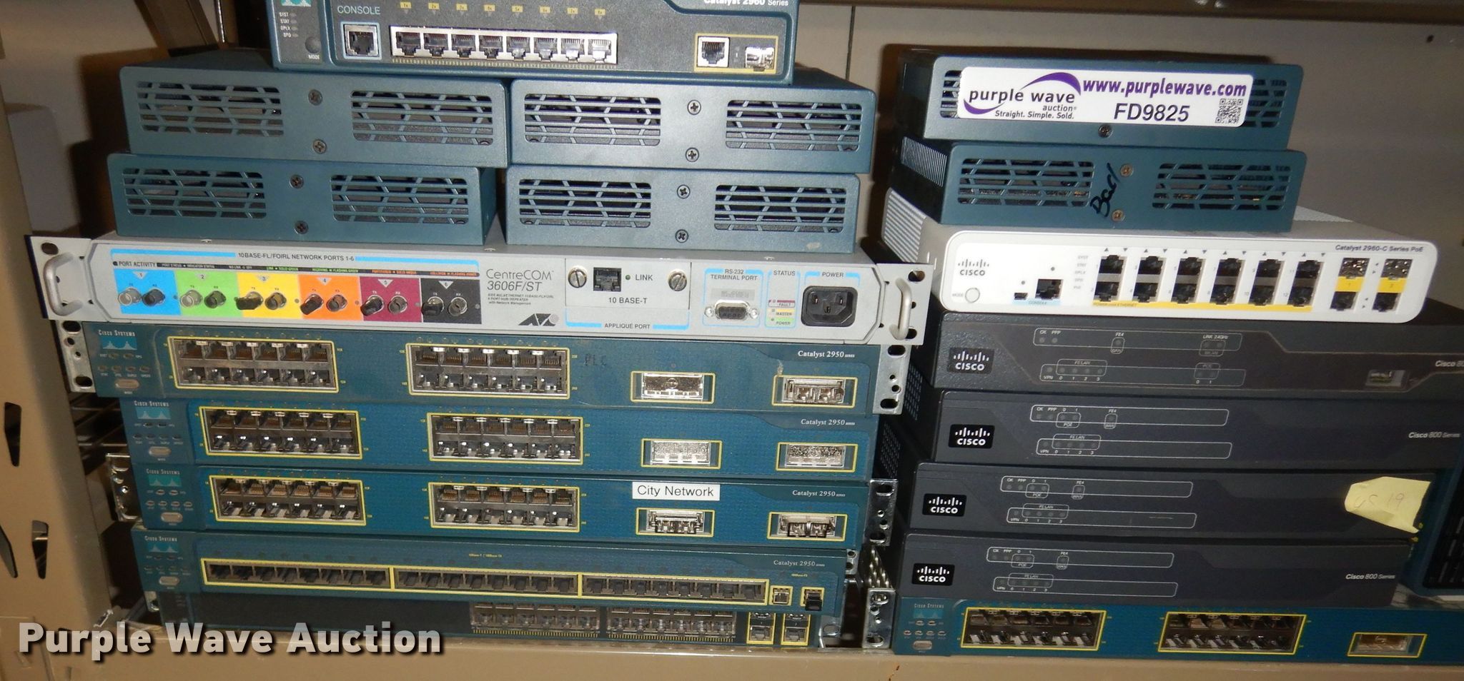 Purple Wave is selling a used Electronics in Kansas. This item is a Approximately 33 routers with the following: Catalyst, CentreCom, Cisco, Unknown operating conditions