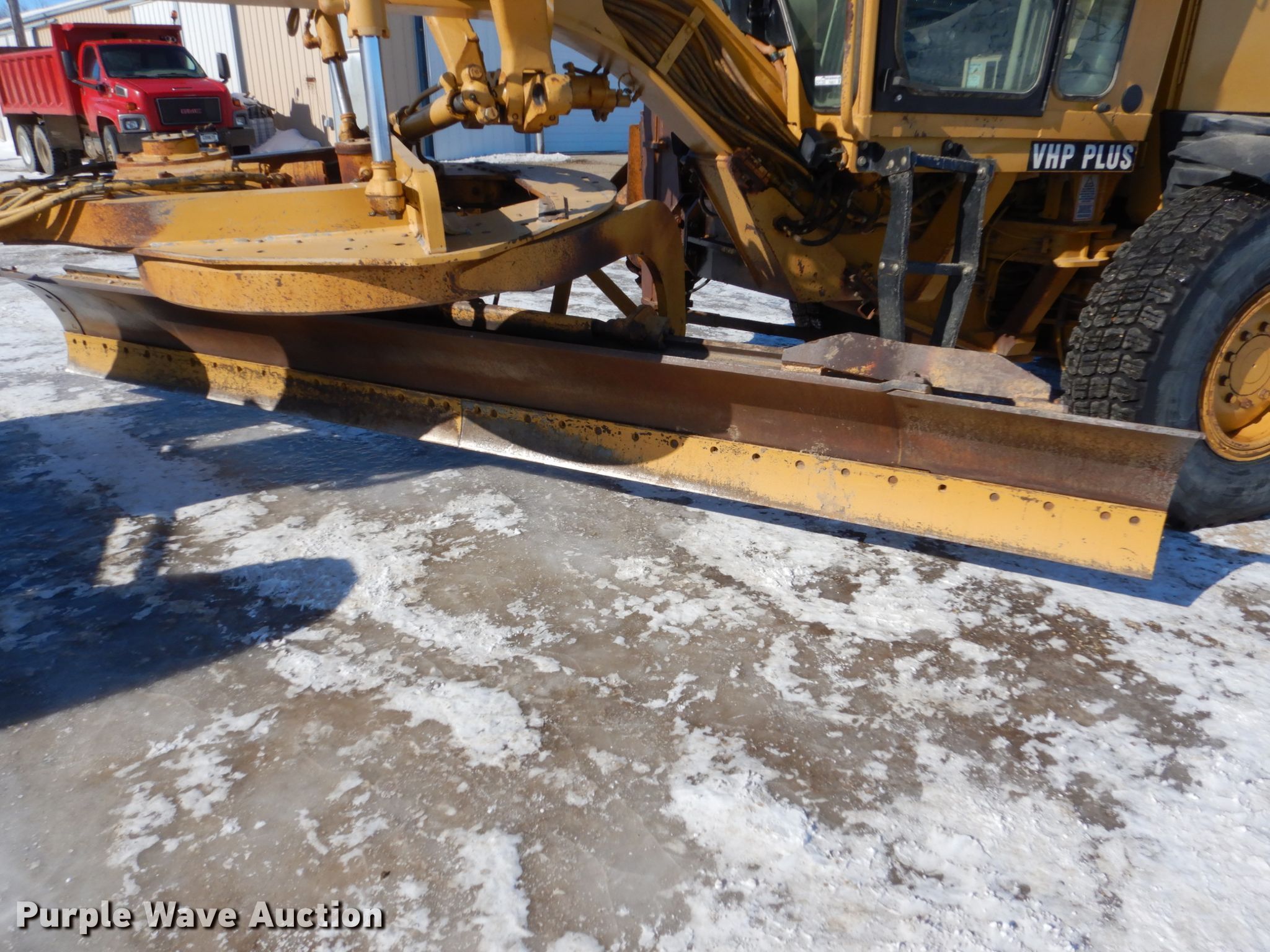 Purple Wave is selling a used Motor Grader in South Dakota. This item is a 2004 Caterpillar 140H VHP Plus motor grader with the following: 16,505 hours on meter, Cateprillar 3176 six cylinder diesel engine, Serial 3P009384, Powershift transmission, 8F-6R gears, Enclosed cab, AC and heat, 11 hydraulic control valves, 16'W moldboard, Tip control, Side shift, Circle slip clutch, Balderson front mounted lift group, 13'8"W wing snow plow, 14.00R24 tires, Serial CAT0140HHAPM01642