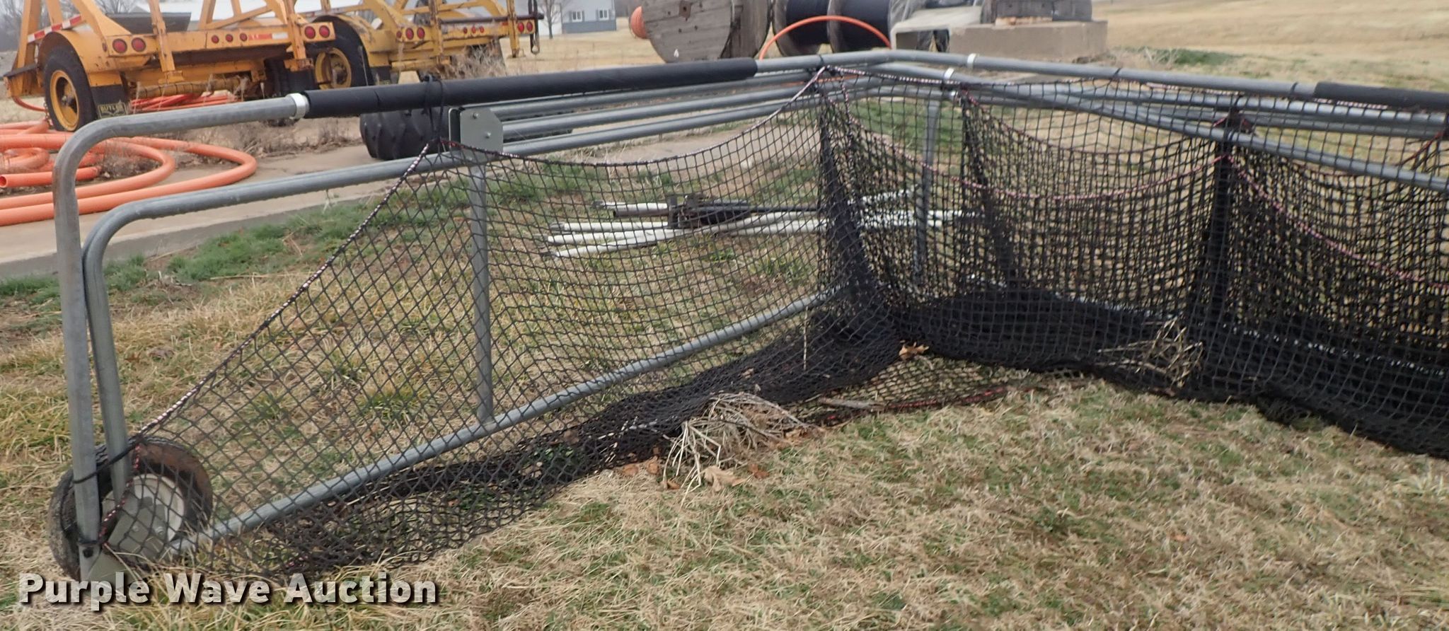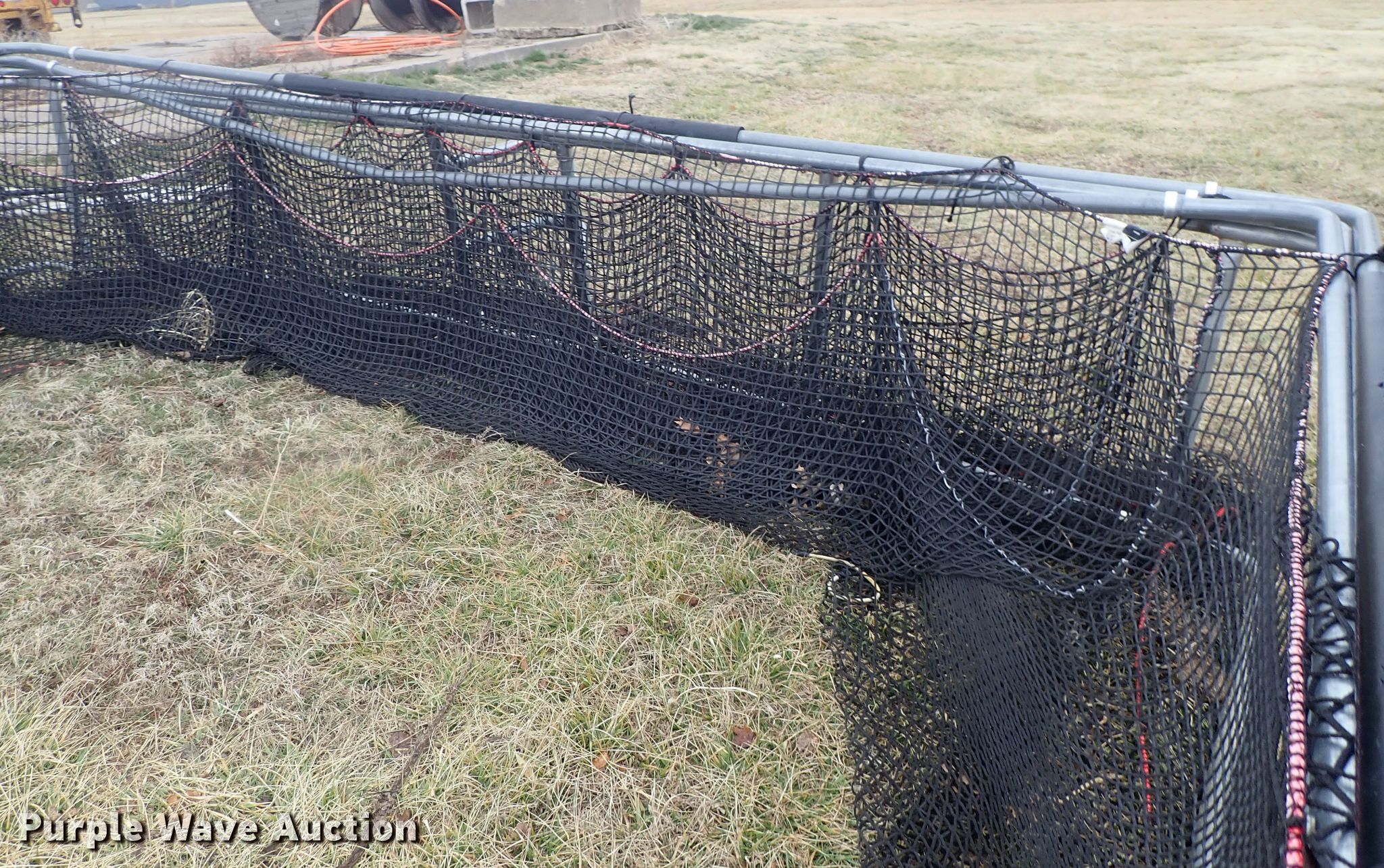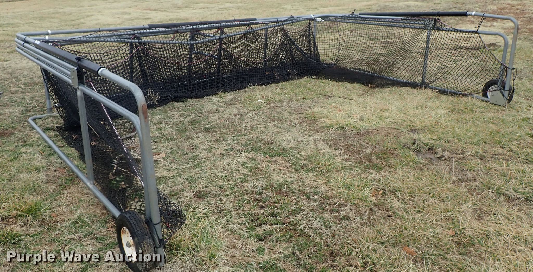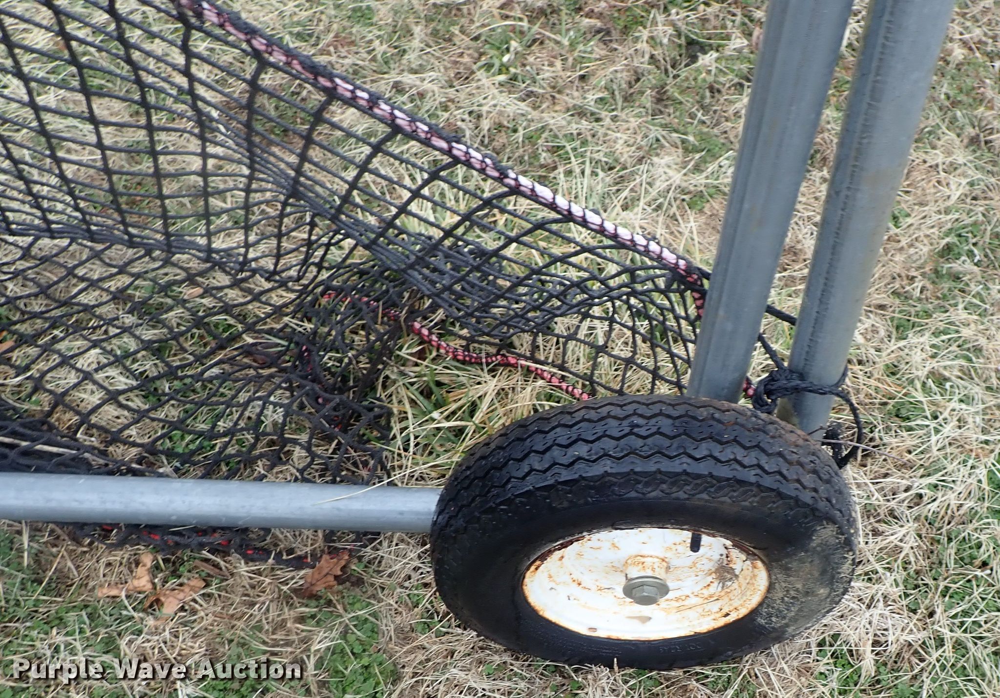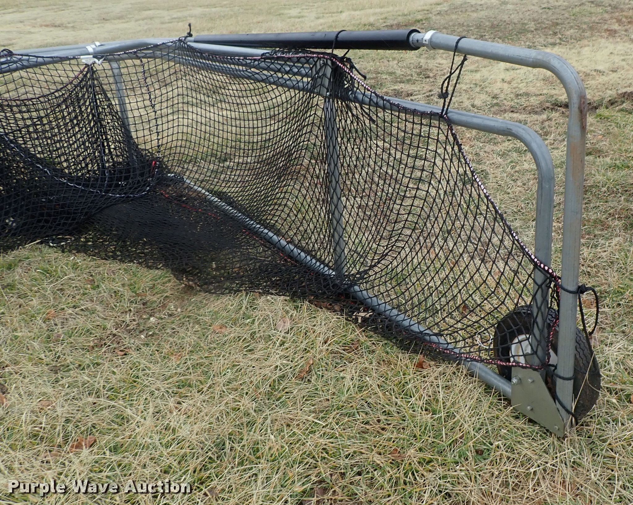 Purple Wave is selling a used Sporting Goods in Kansas. This item is a Batting cage with the following: Metal frame, Netting, Wheels