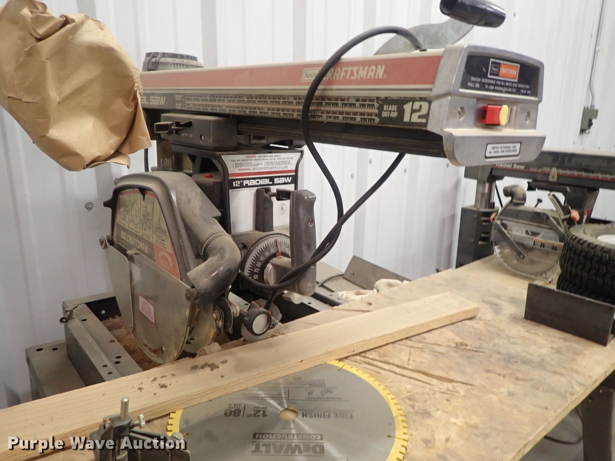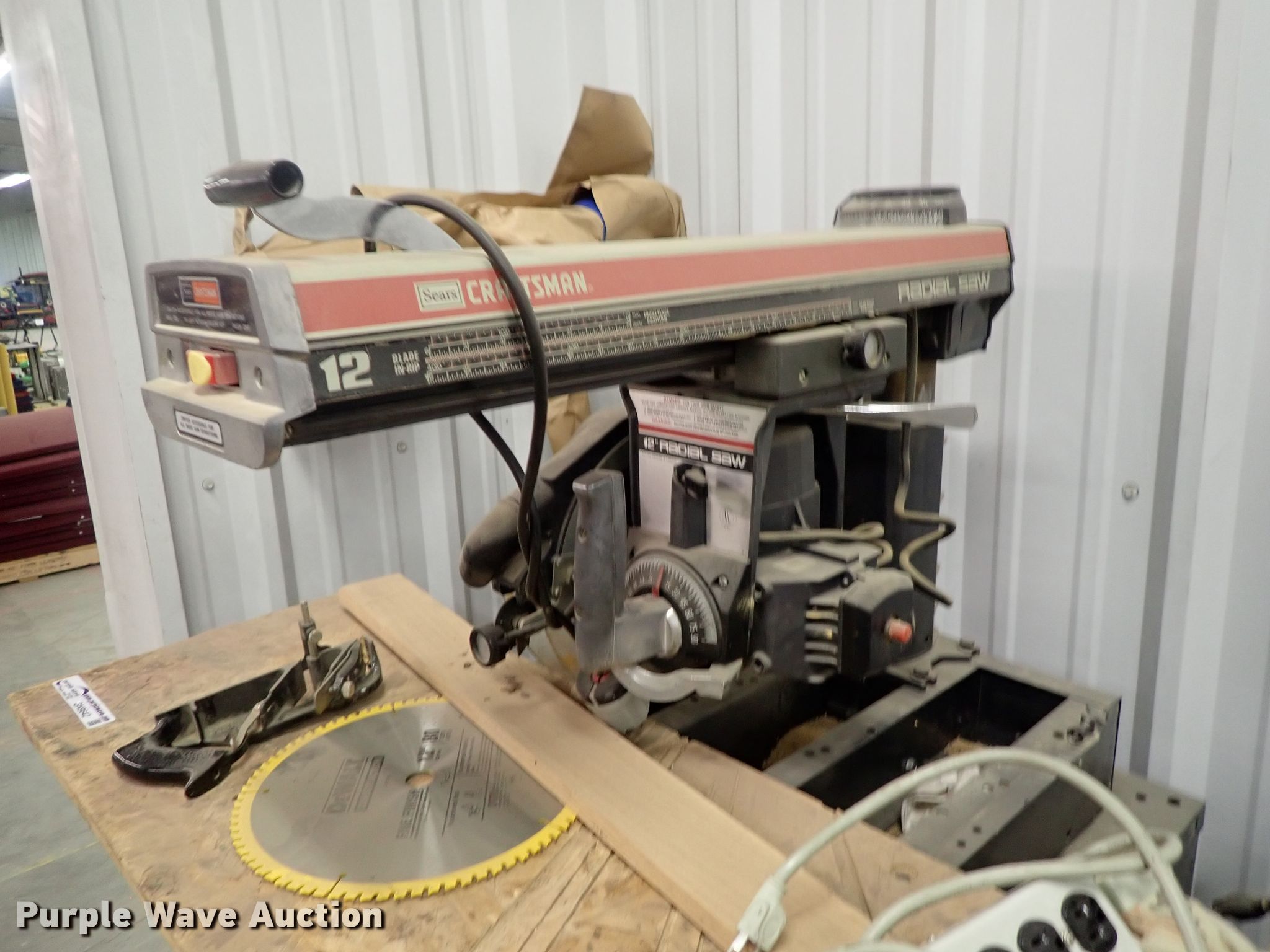 Purple Wave is selling a used Tools in Kansas. This item is a Craftsman radial arm saw with the following: 12" blade capacity, Cabinet, Serial 8352M0147