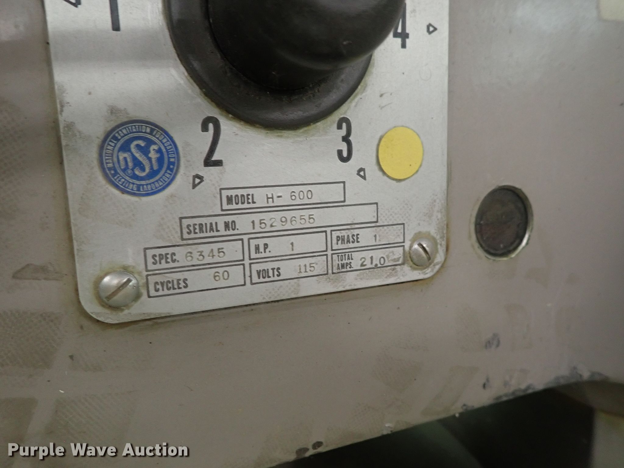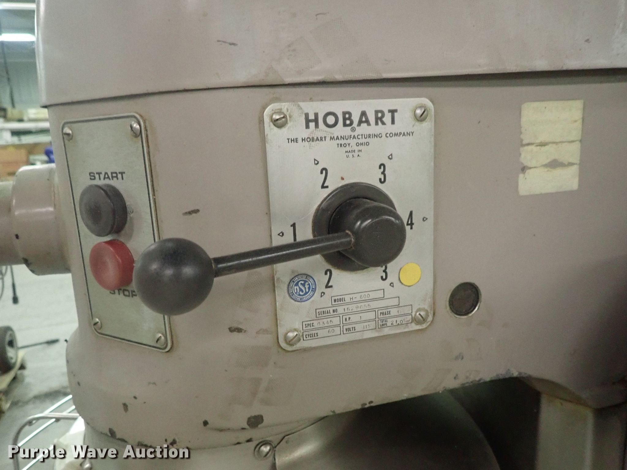Purple Wave is selling a used Restaurant Equip. in Kansas. This item is a Hobart H600 mixer with the following: 115V, Single phase, Bowl