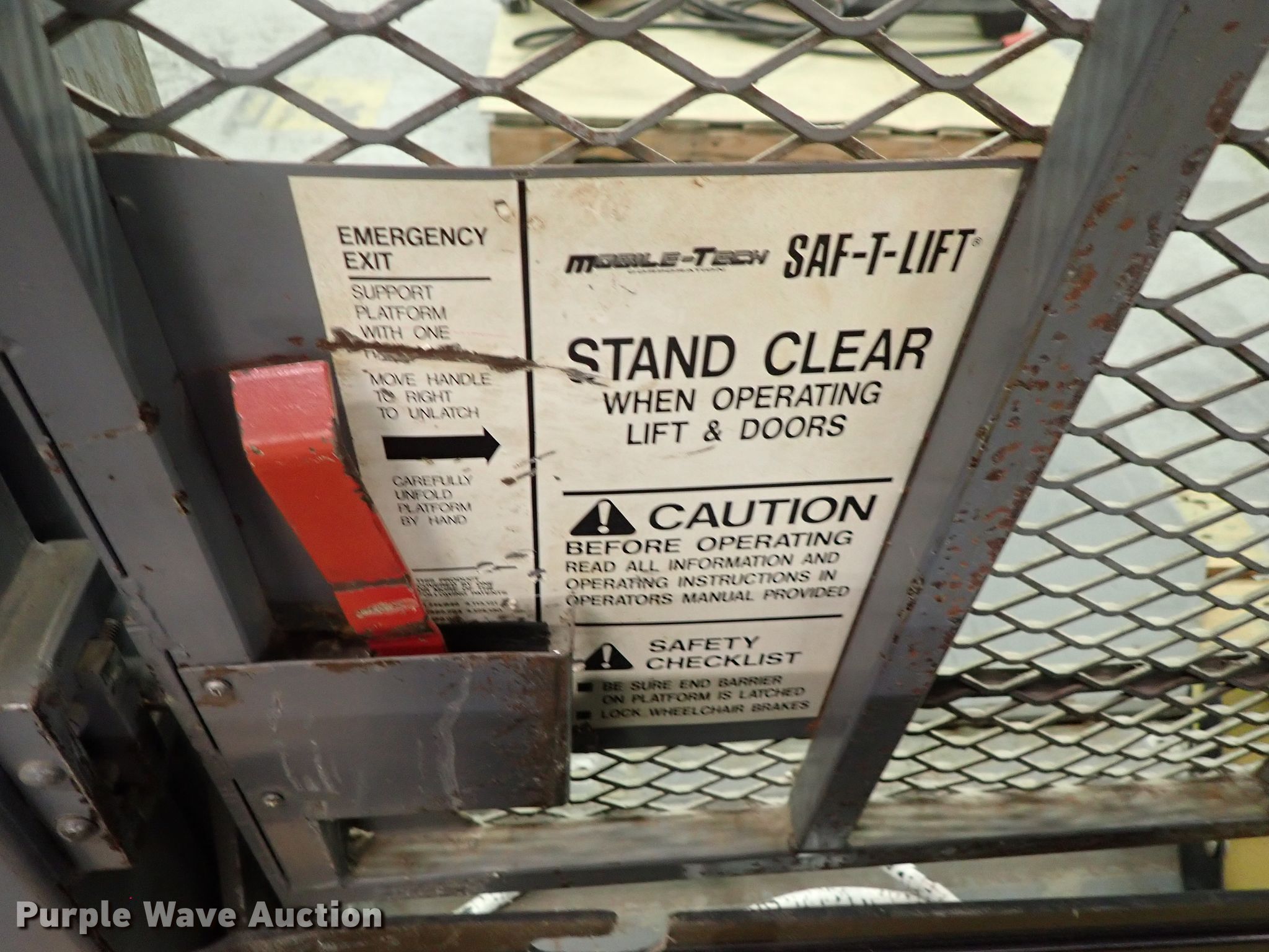 Purple Wave is selling a used Scissor or Vertical Lift in Kansas. This item is a Saf-T-Lift vertical lift with the following: Electric operation