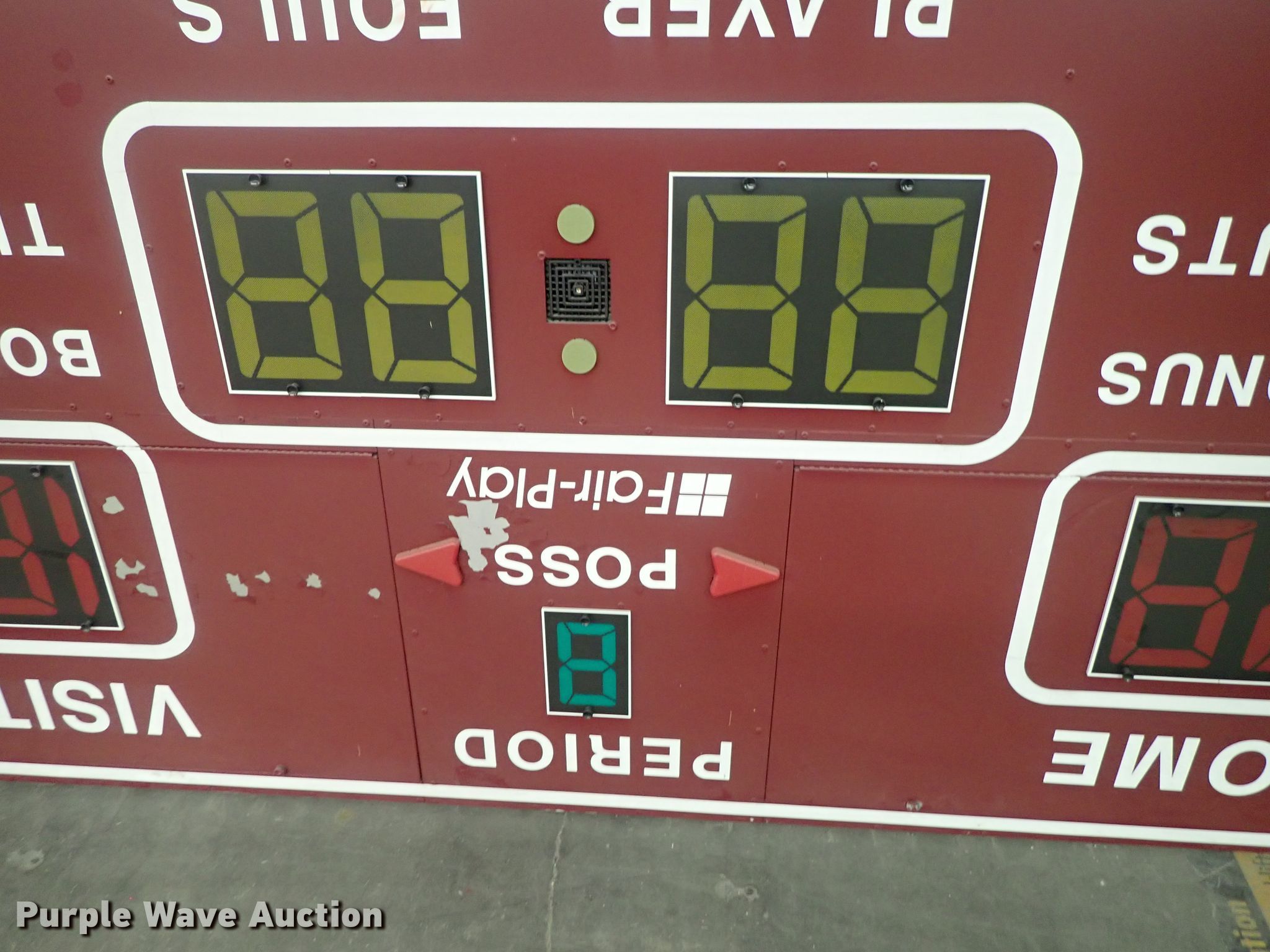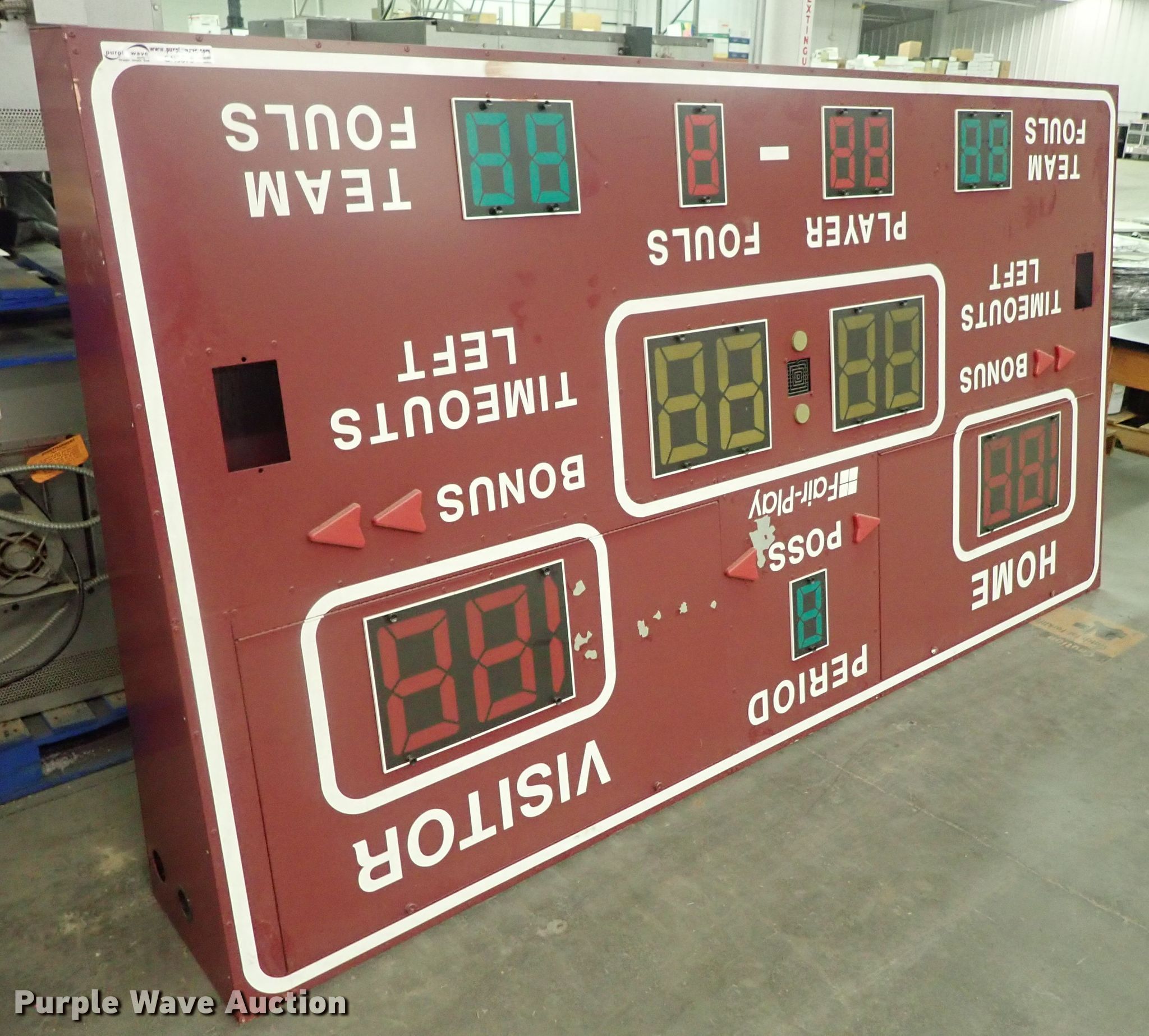 Purple Wave is selling a used Sporting Goods in Kansas. This item is a Fair Play scoreboard with the following: 114" x 60" x 16", 120V