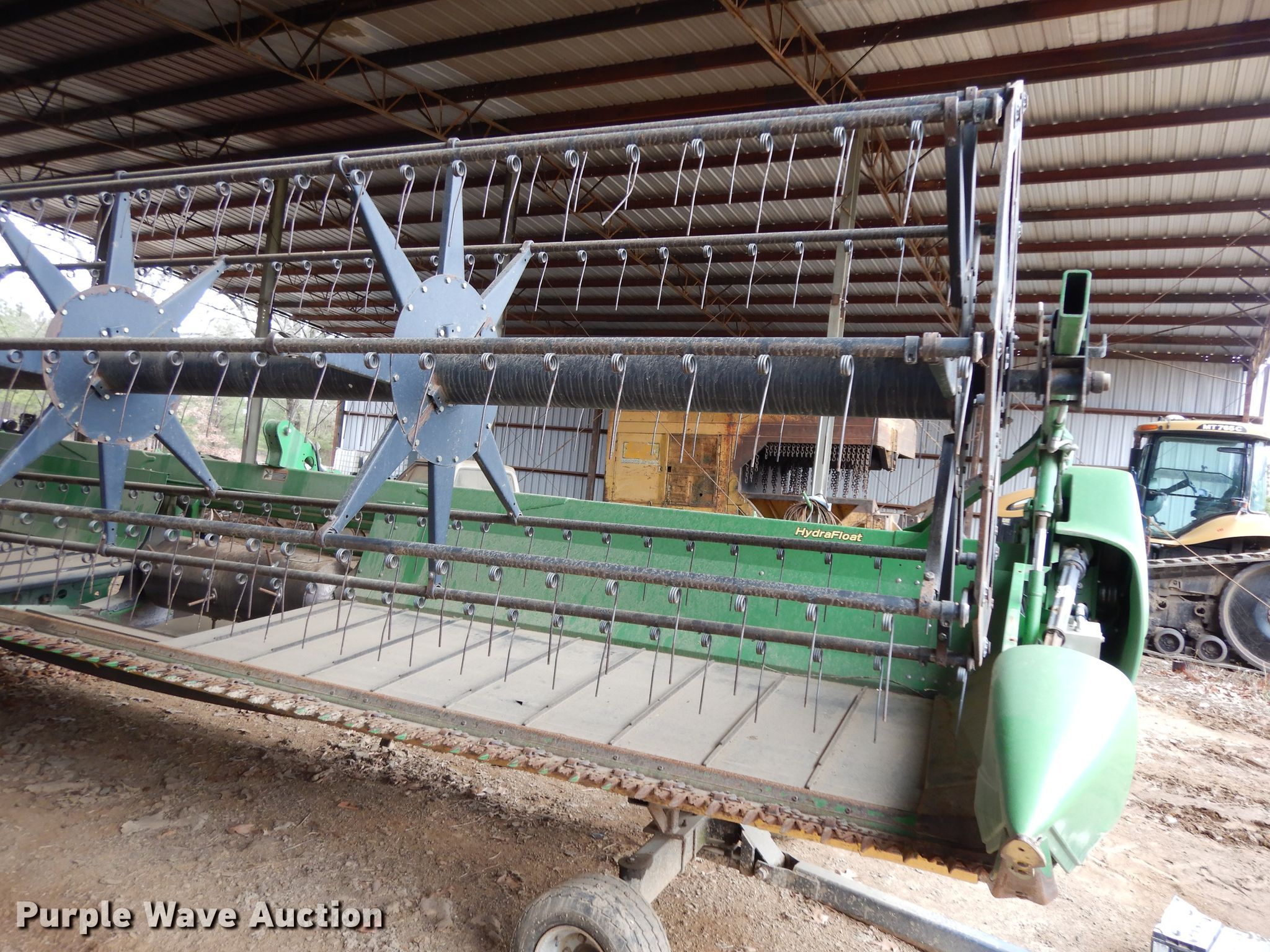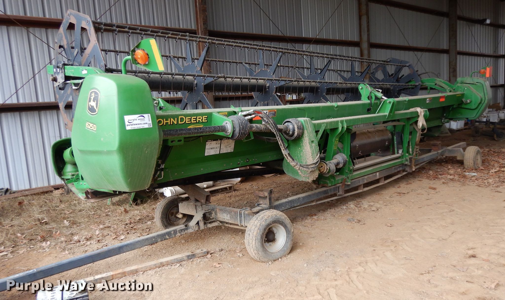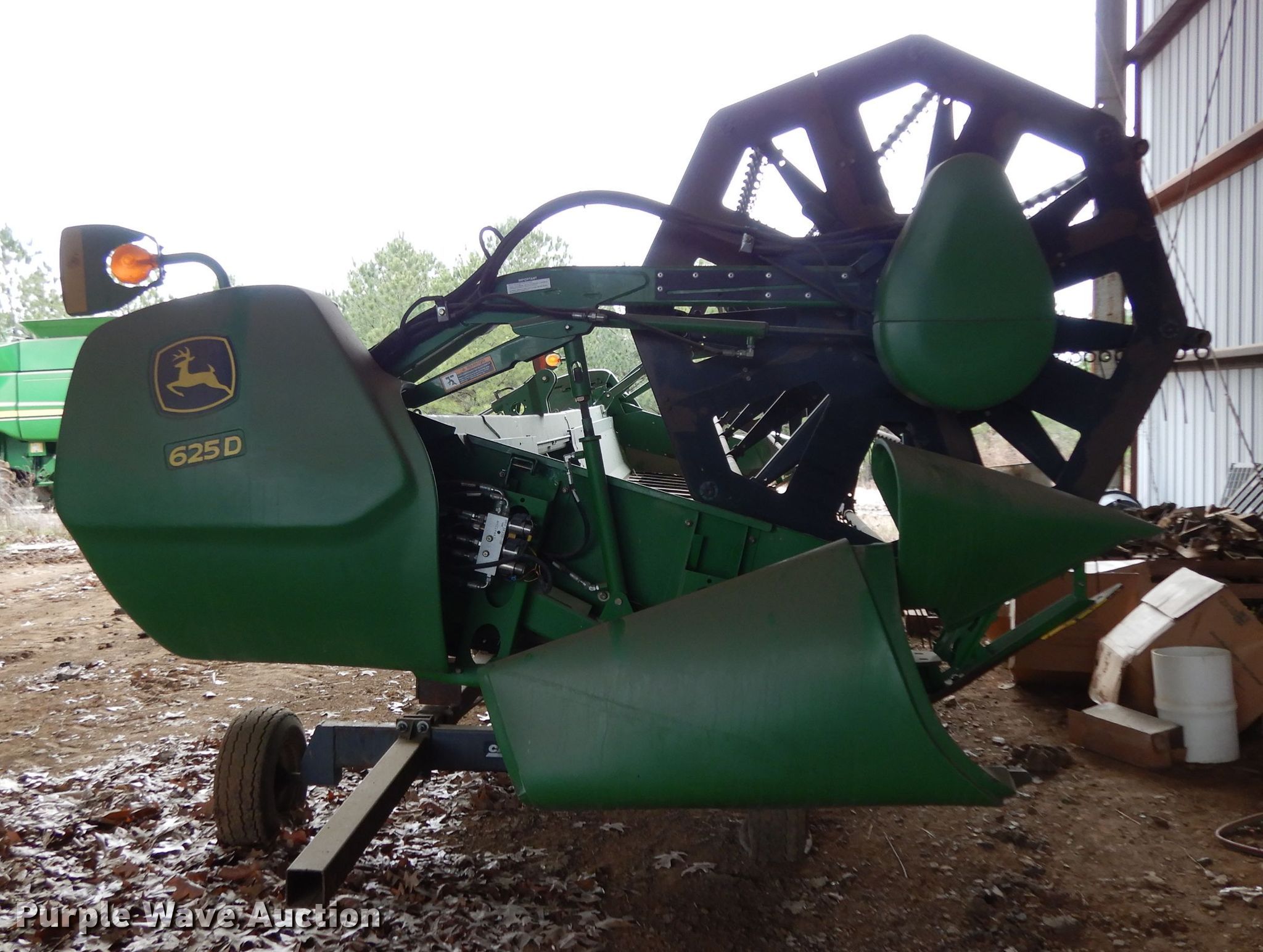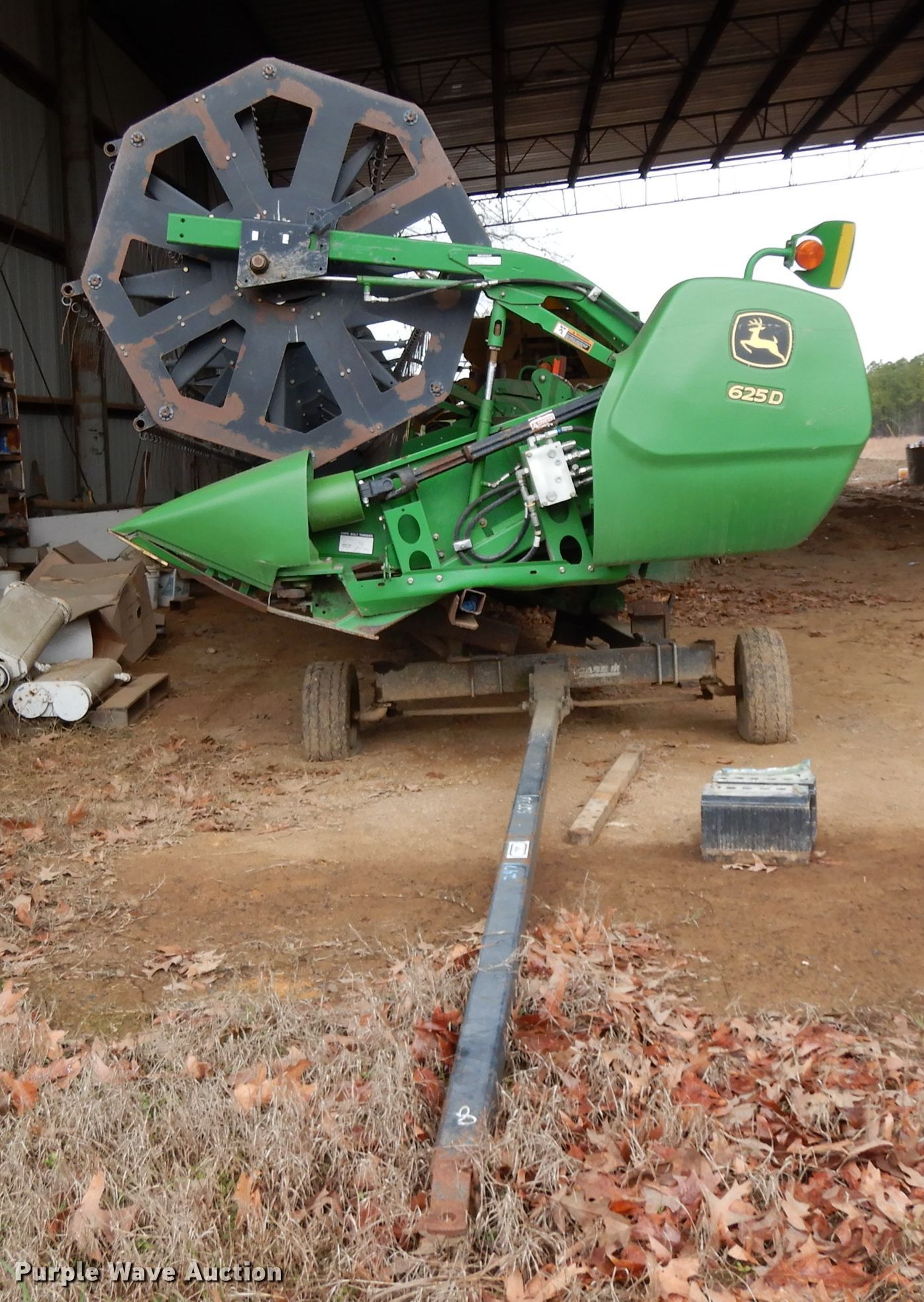 Purple Wave is selling a used Platform or Stripper Head in Arkansas. This item is a 2010 John Deere 625D draper head with the following: 25'W, Finger reel, Hydraulic fore/aft, Hydraulic reel height control, Poly skid plates, Single point coupler, Single driveline, 23'L x 6'9"W header trailer, 20.5x8.0-10 tires, (3) flat tires, Serial 1H00625DCA0735407