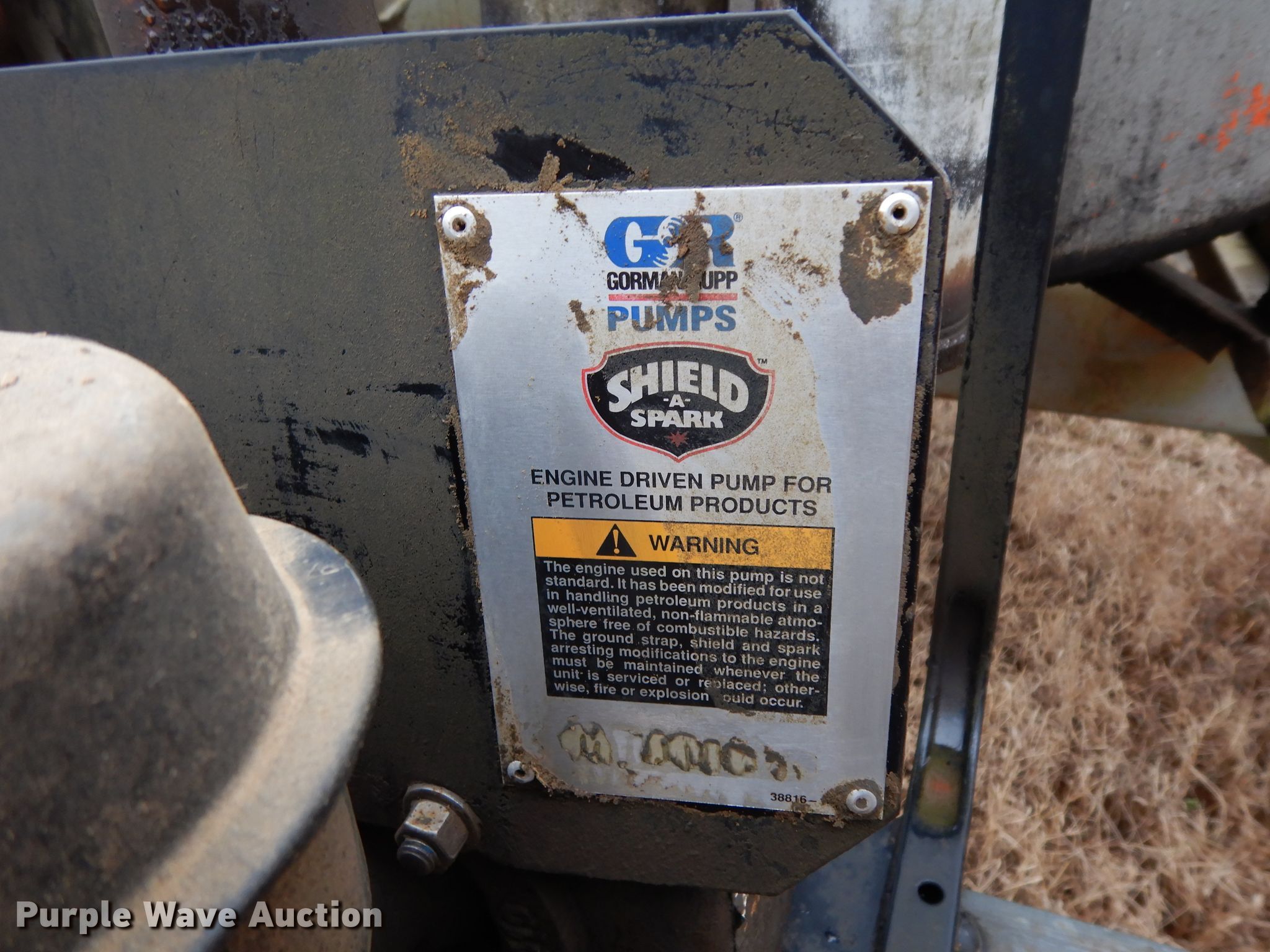 Purple Wave is selling a used Tank Trailer in Arkansas. This item is a Fuel tank trailer with the following: 21'4" x 4'4" overall, 12'1"L x 46" diameter tank, Gorman Rupp pump, 4.5 HP engine, Nozzle, 11L-15SL tires