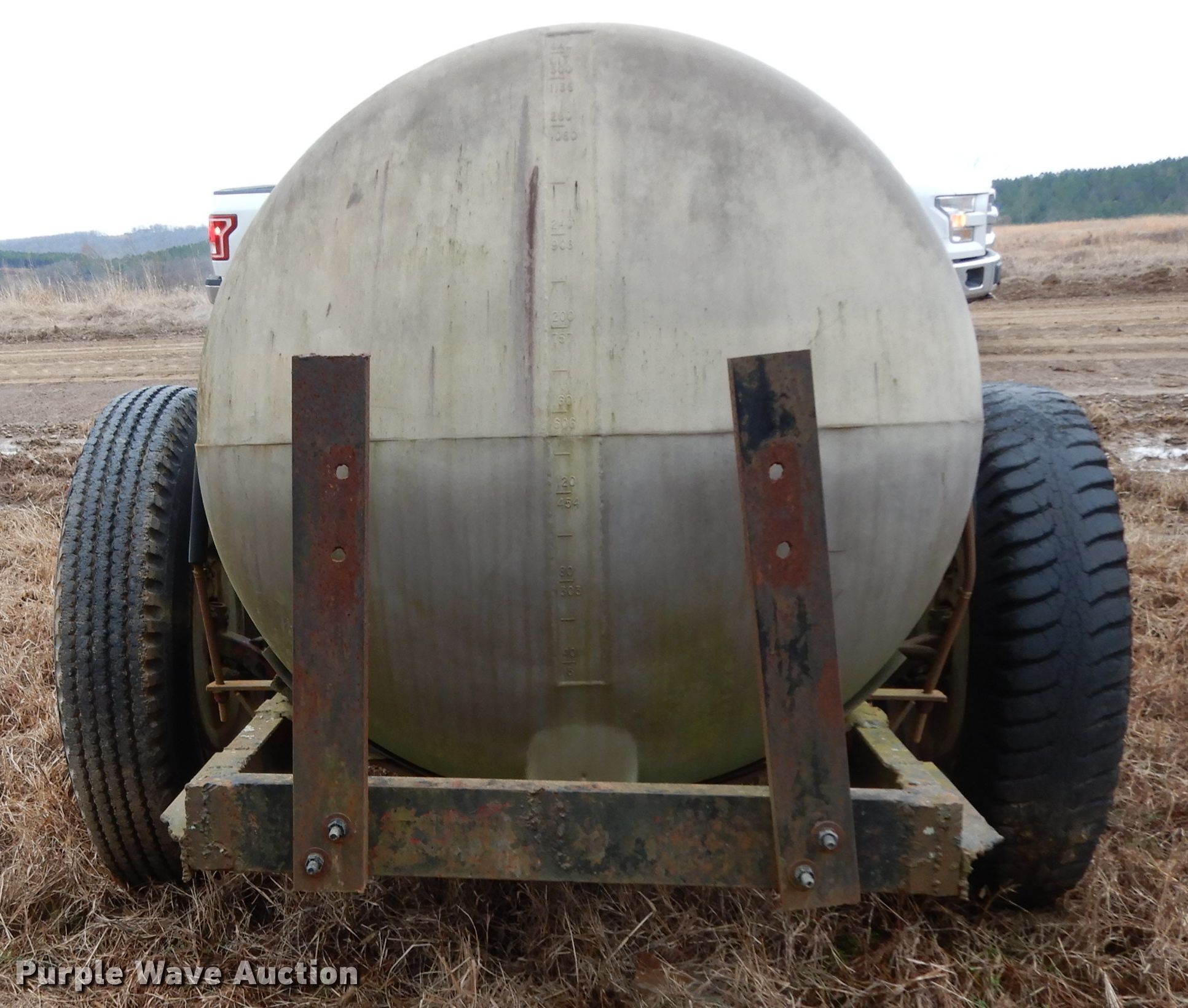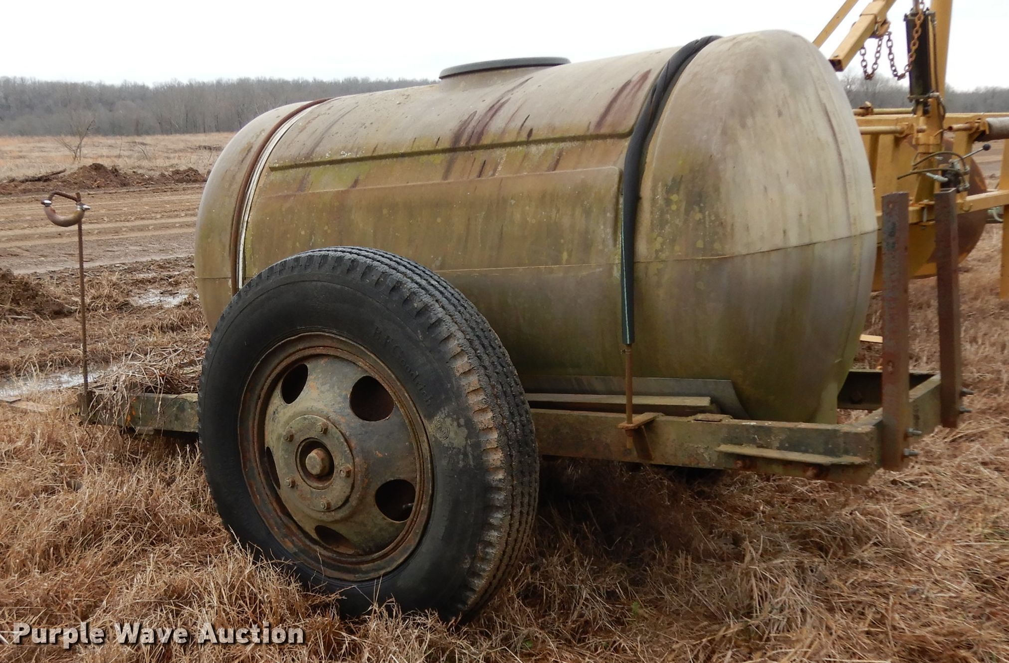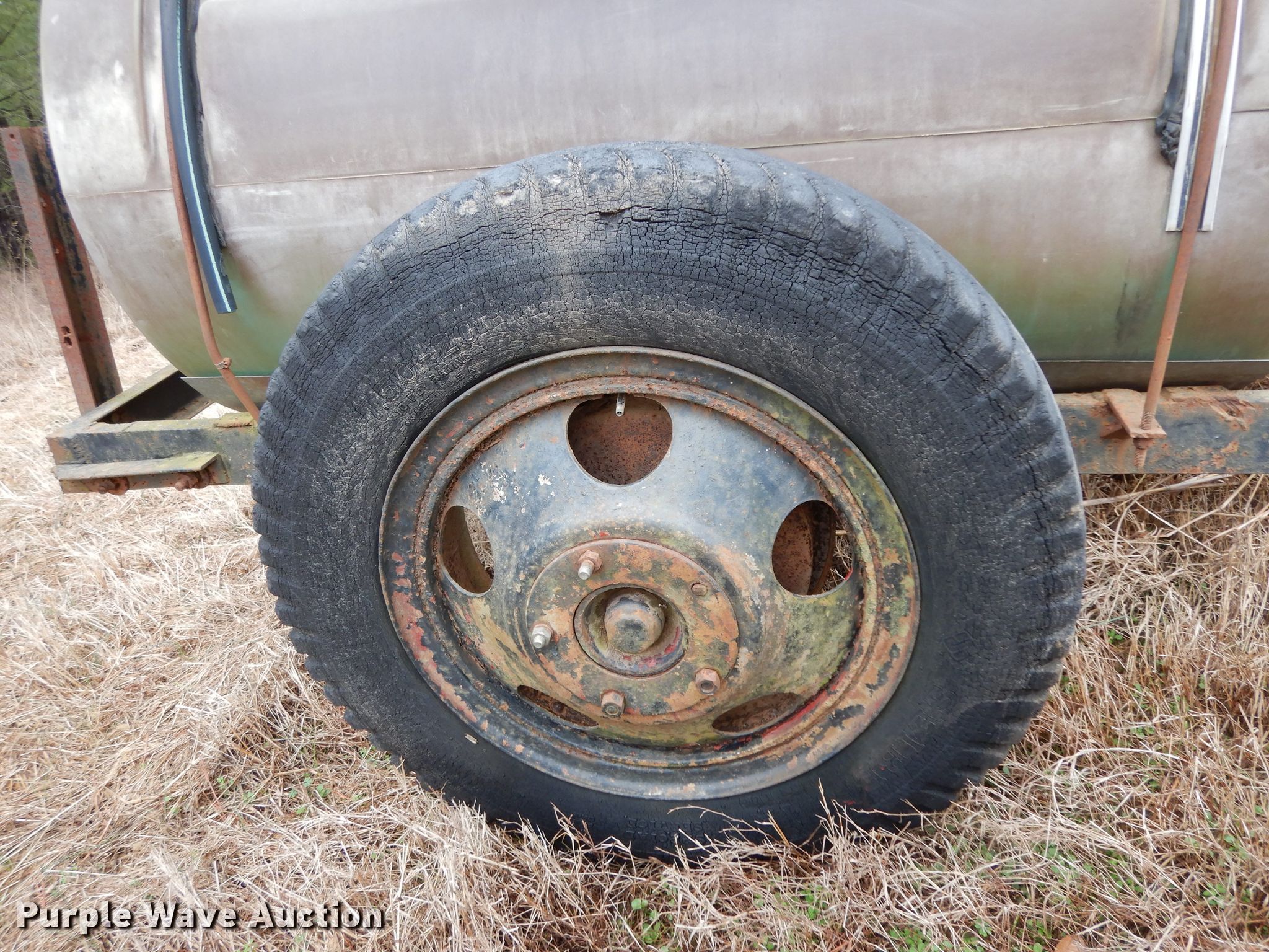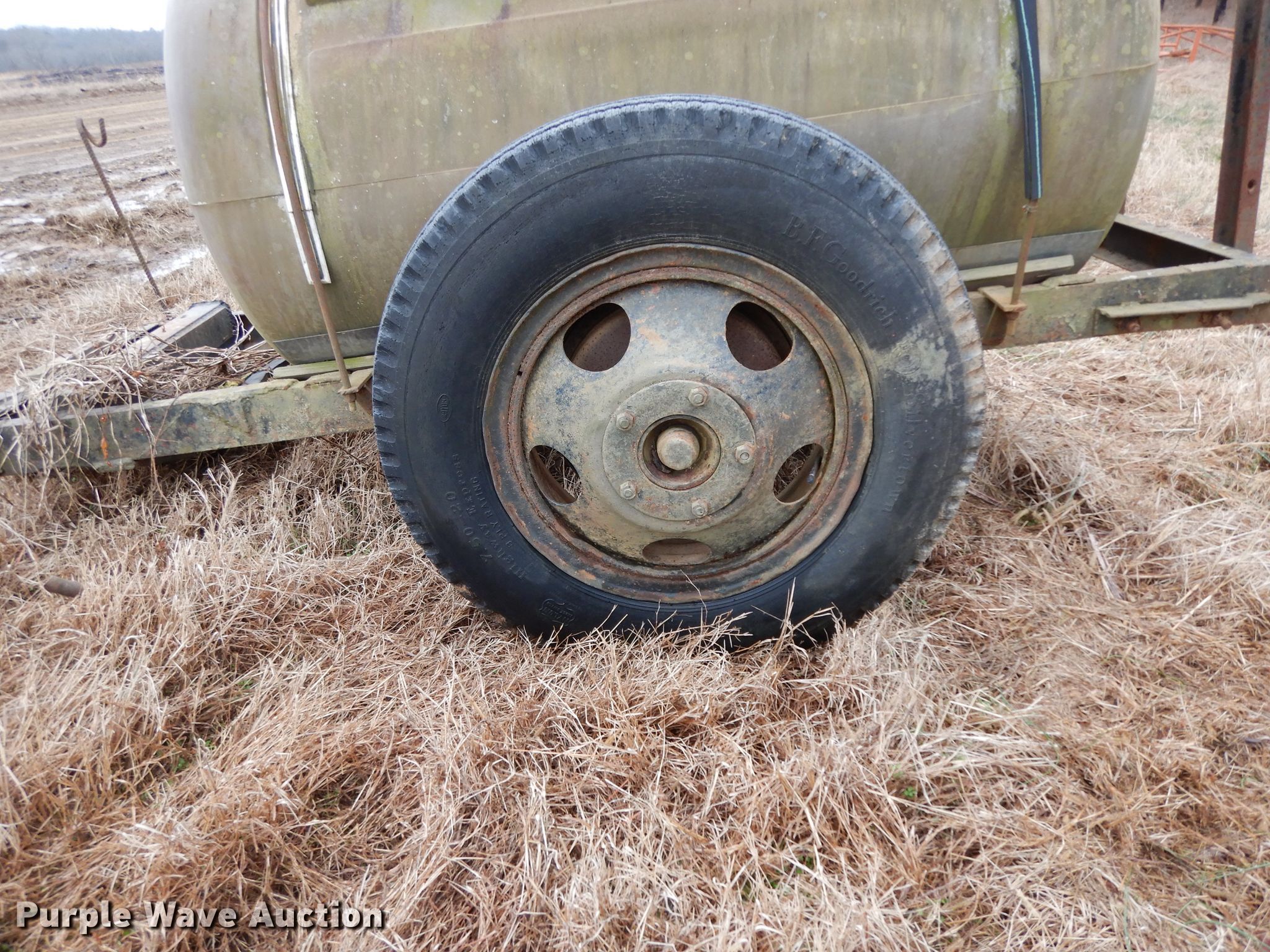 Purple Wave is selling a used Tank Trailer in Arkansas. This item is a Shop built tank trailer with the following: 8'4" x 2'10" platform, 300 gallon poly tank, 7.50-20 tires