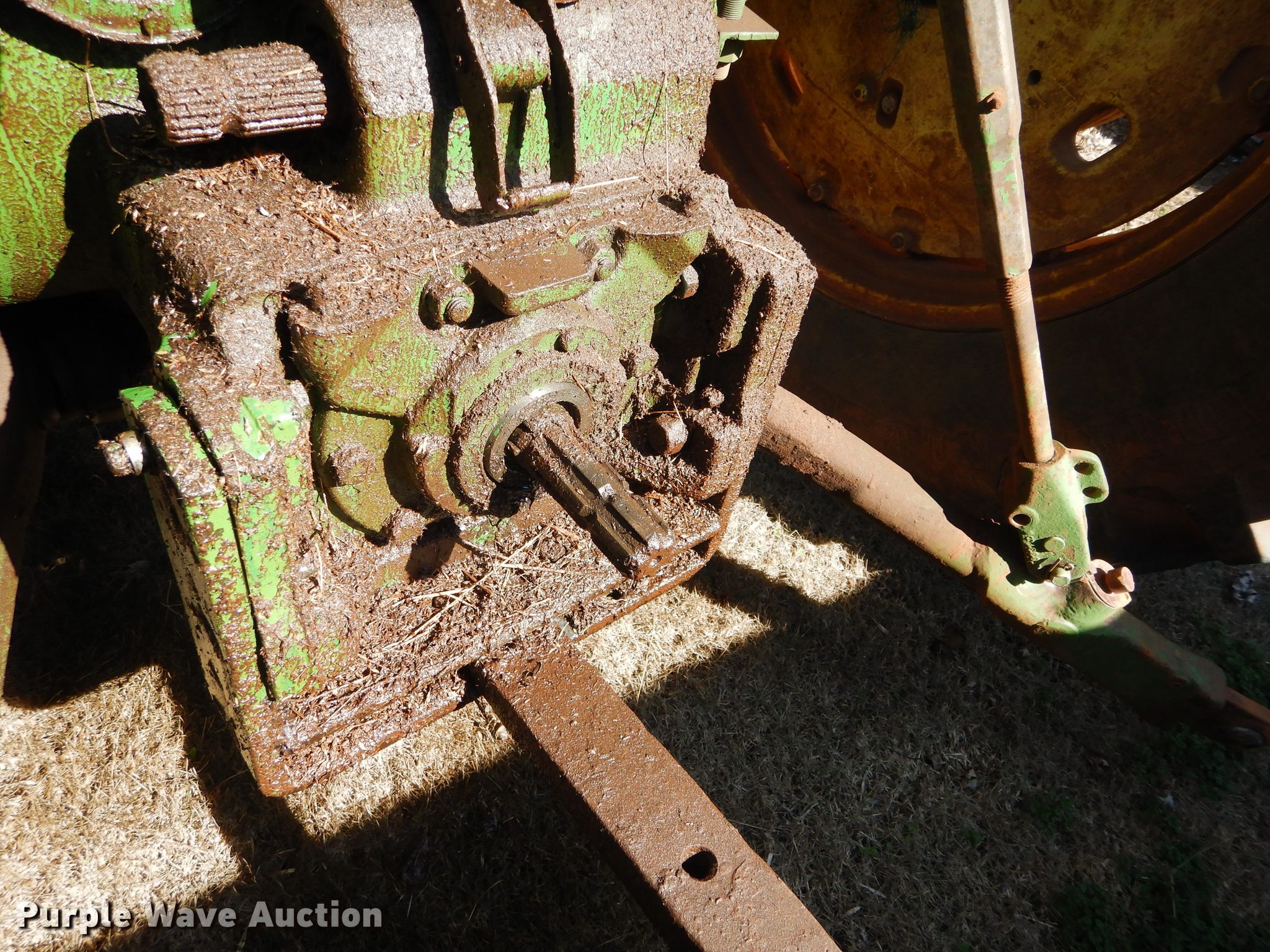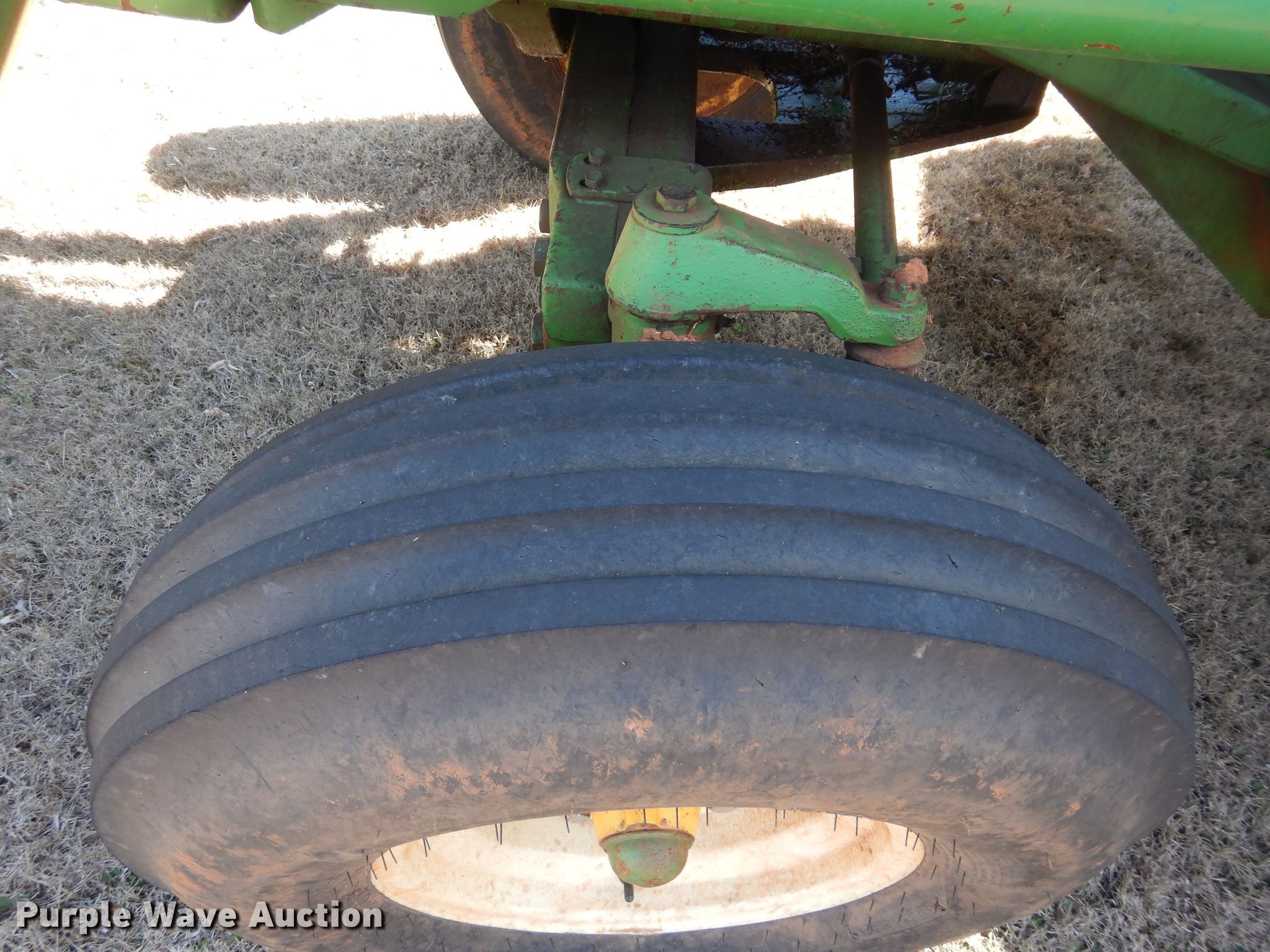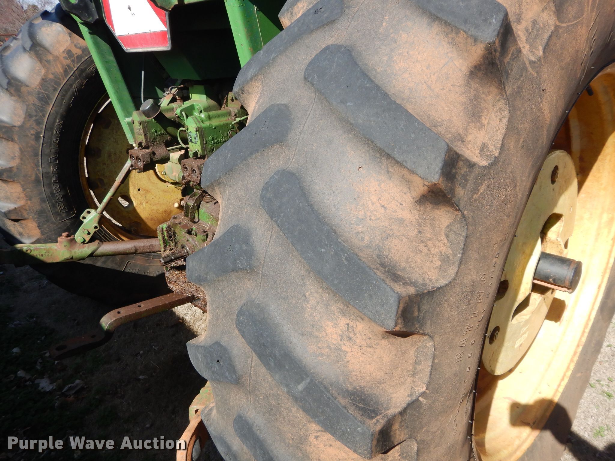 Purple Wave is selling a used Tractor in Oklahoma. This item is a John Deere 4230 tractor with the following: 2,991 hours on meter, John Deere six cylinder diesel engine, Quad-Range transmission, 16F-4R gears, John Deere 725 loader, 80"W bucket, Bale spear, Joystick controls, Three point, 540 PTO, (2) rear hydraulic remote sets, (6) wheel weights, 10.00-16 front tires, 18.4R38 rear tires, Transmission issues, Some high gears inoperable, Cab and door glass broken out, Serial 039062R