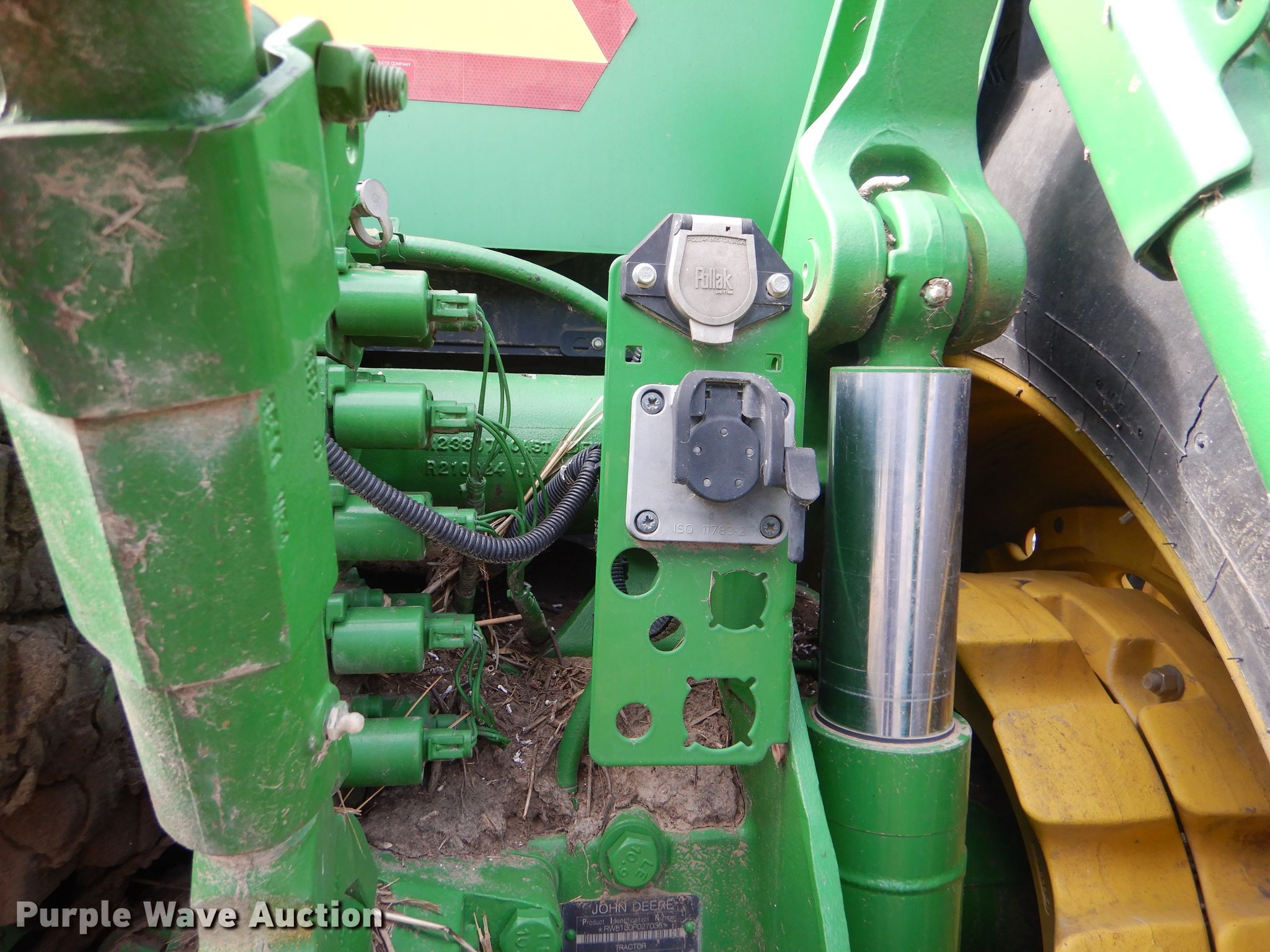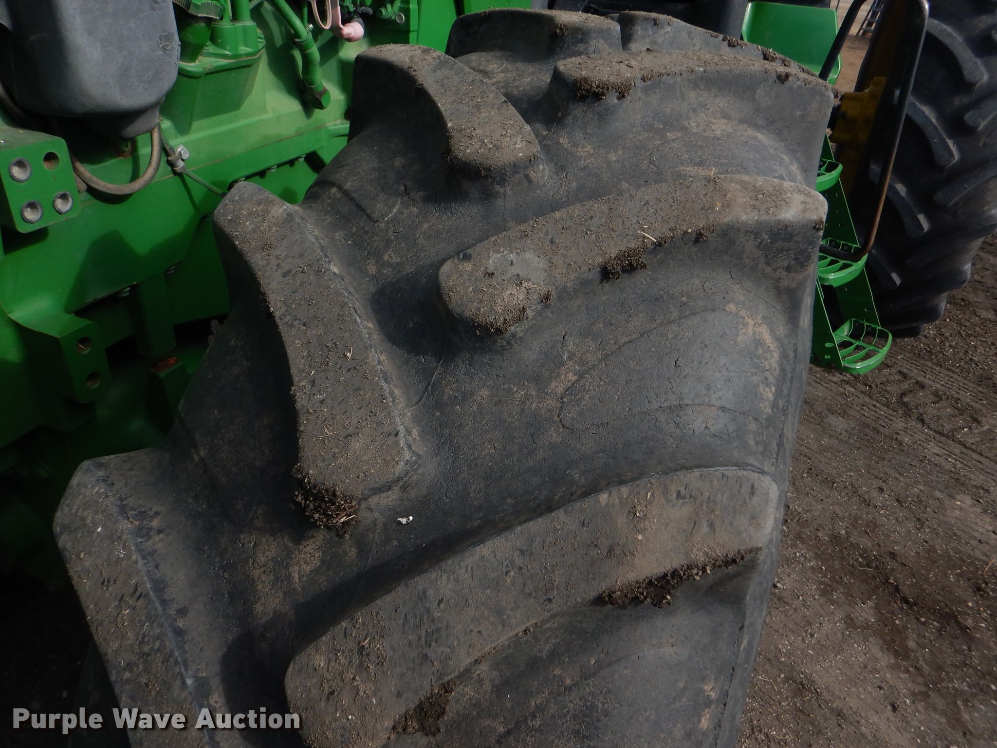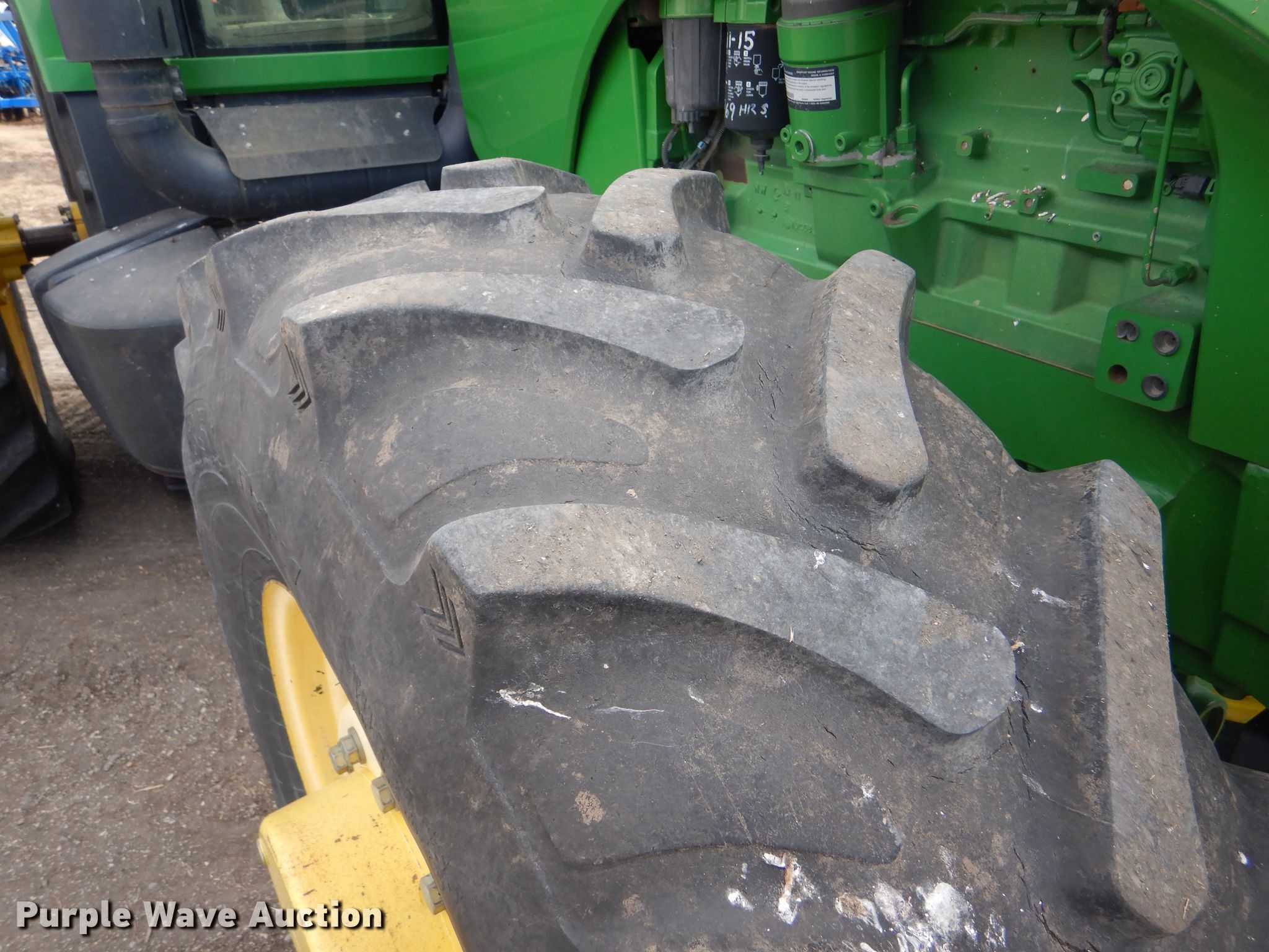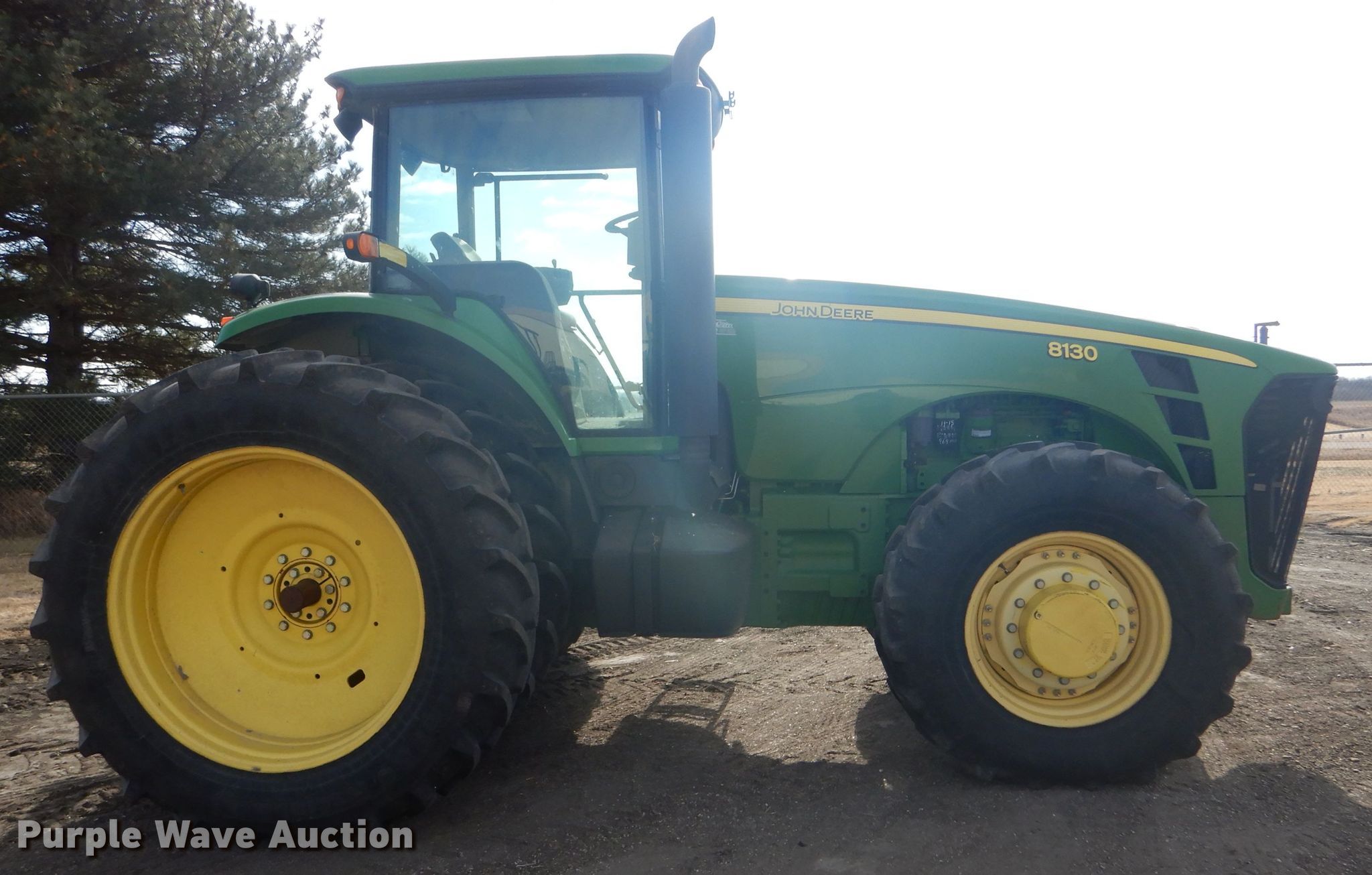 Purple Wave is selling a used Tractor in Kansas. This item is a 2008 John Deere 8130 MFWD tractor with the following: 1,552 hours on meter, John Deere 9.0L six cylinder diesel engine, Powershift transmission, 16F-4R gears, Differential lock, AC and heat, Three point, Top link, Quick attach, Seven pin outlet, Isobus outlet, Large 1000 PTO, (4) rear hydraulic remotes, 460/85R30 front tires, 480/80R46 dual rear tires, Serial RW8130P027038