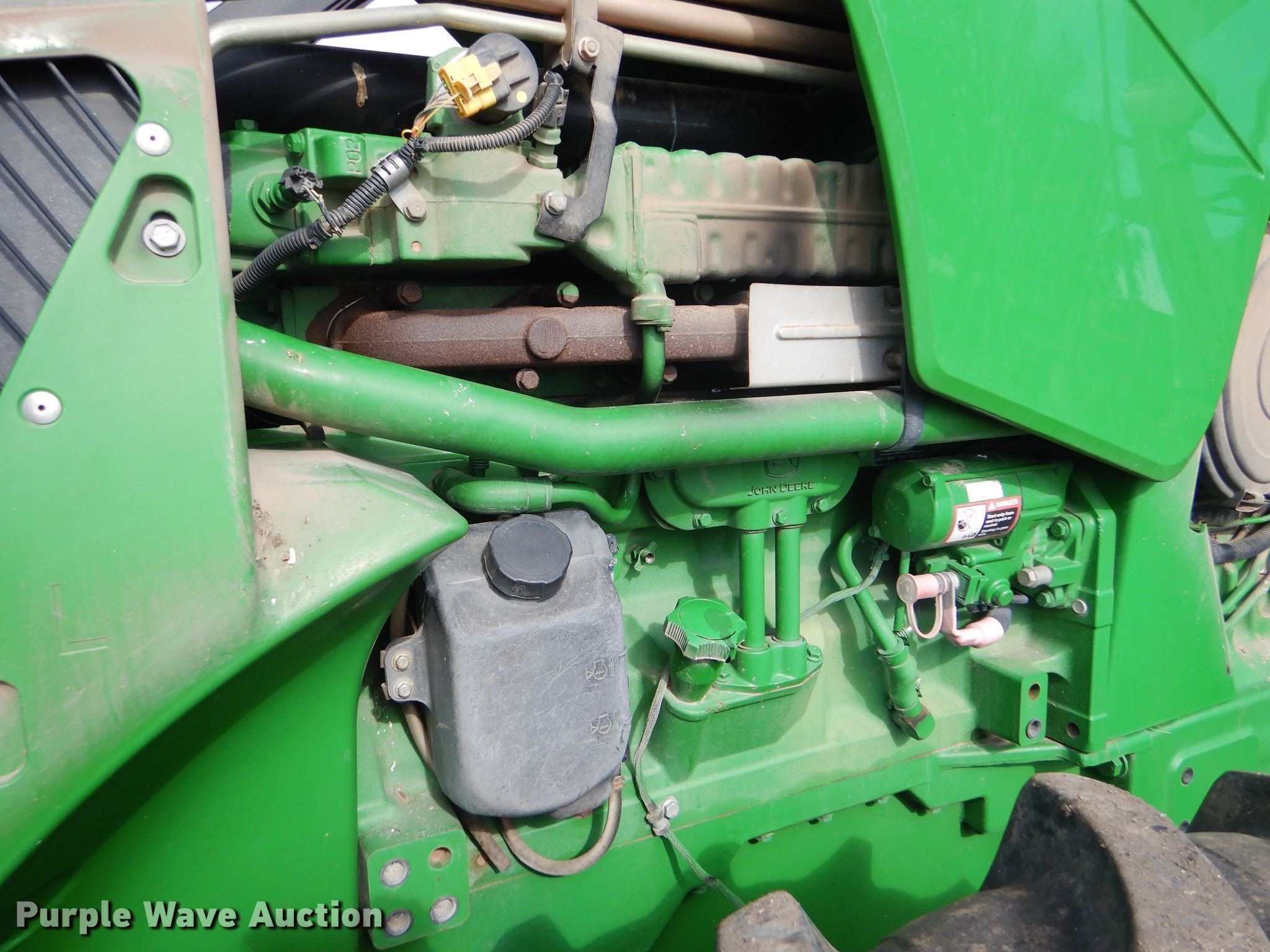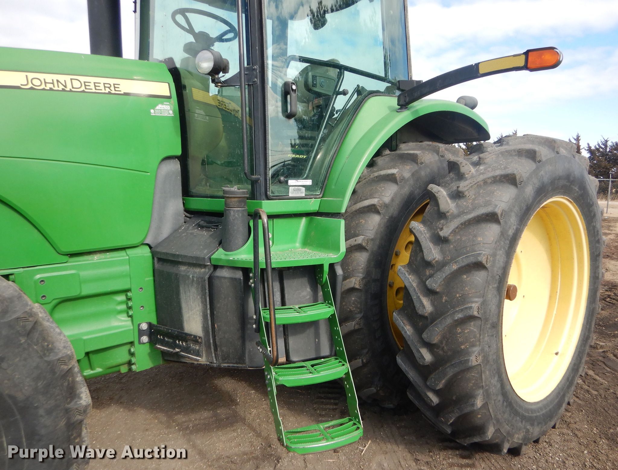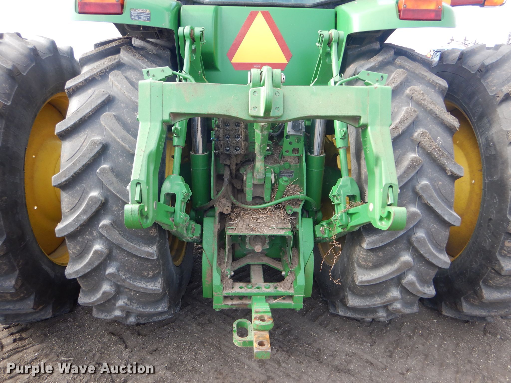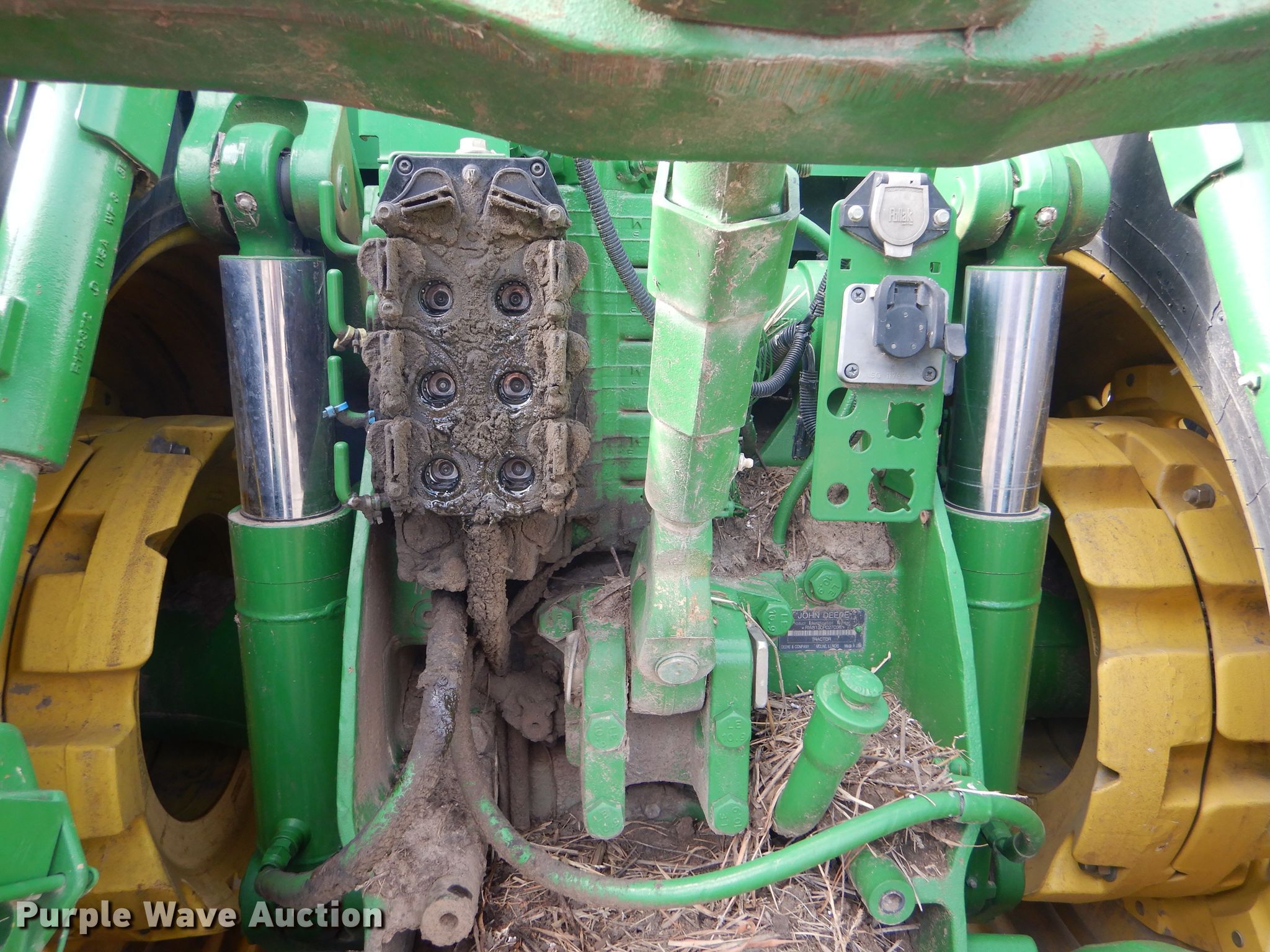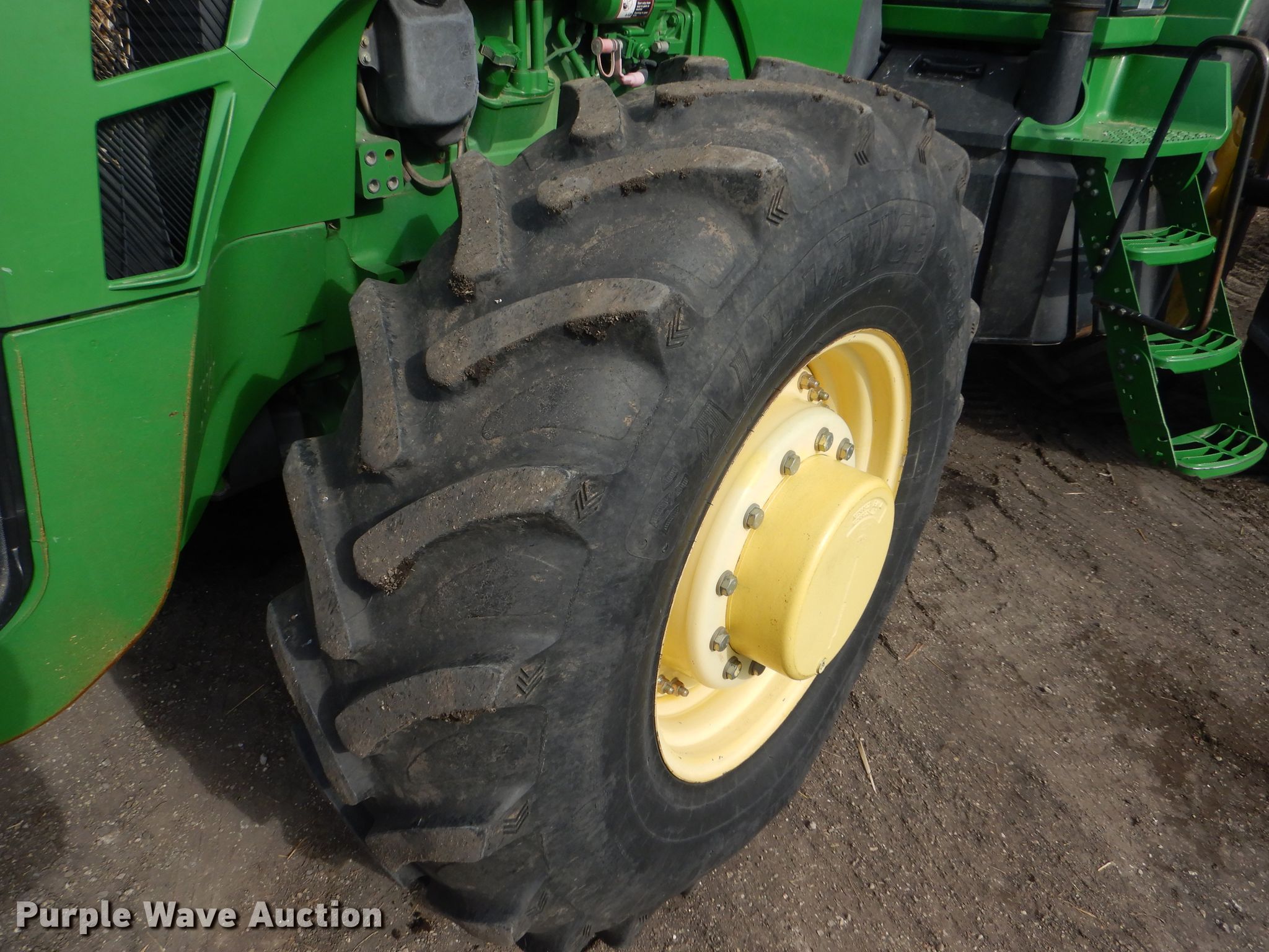 Purple Wave is selling a used Tractor in Kansas. This item is a 2008 John Deere 8130 MFWD tractor with the following: 1,552 hours on meter, John Deere 9.0L six cylinder diesel engine, Powershift transmission, 16F-4R gears, Differential lock, AC and heat, Three point, Top link, Quick attach, Seven pin outlet, Isobus outlet, Large 1000 PTO, (4) rear hydraulic remotes, 460/85R30 front tires, 480/80R46 dual rear tires, Serial RW8130P027038