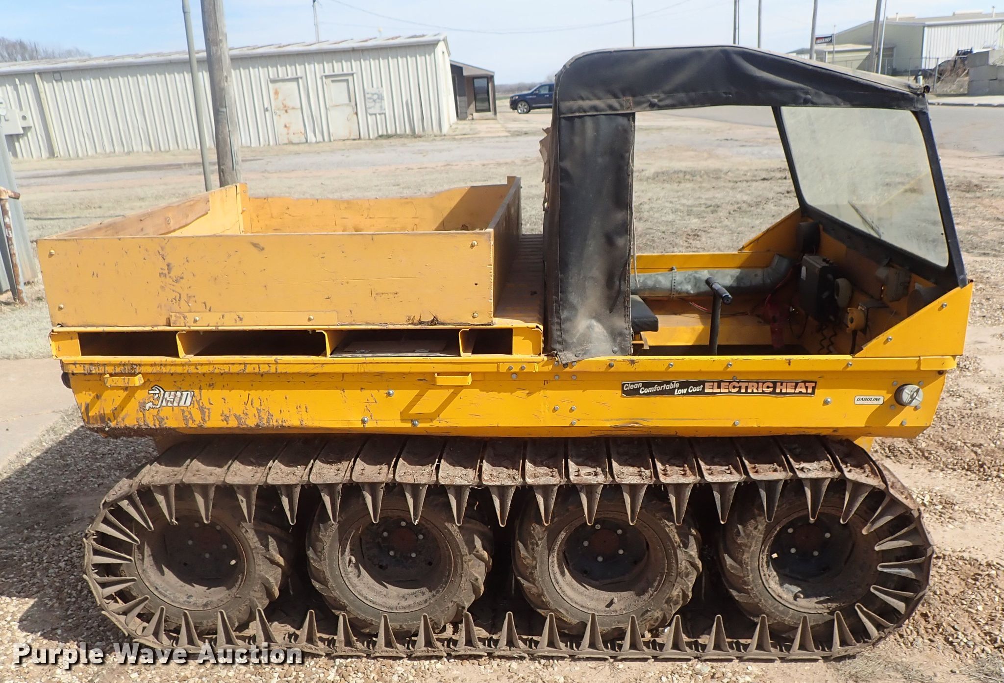 Purple Wave is selling a used Utility Vehicle in Kansas. This item is a 1971 Kinetics International amphibious vehicle with the following: Wisconsin VH4D gas engine, Hydrostatic transmission, Canopy, Front winch, 59" x 48" dump bed, Manual dump, (8) tires, 12"W steel tracks, Manuals