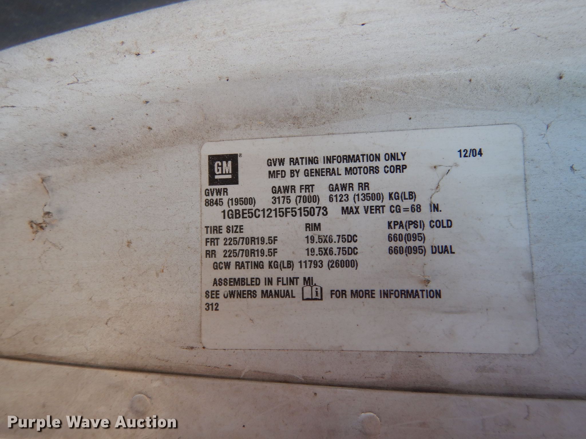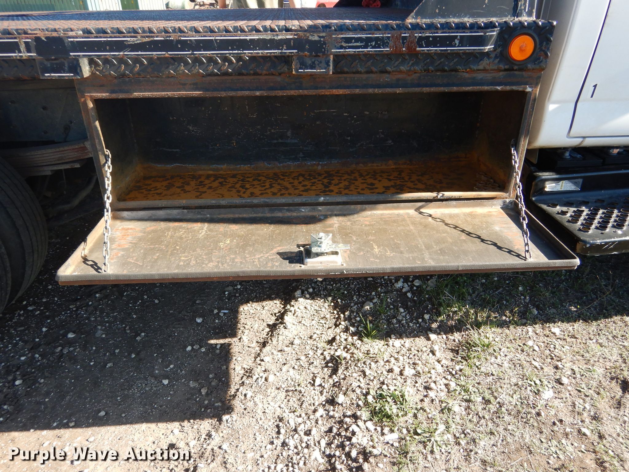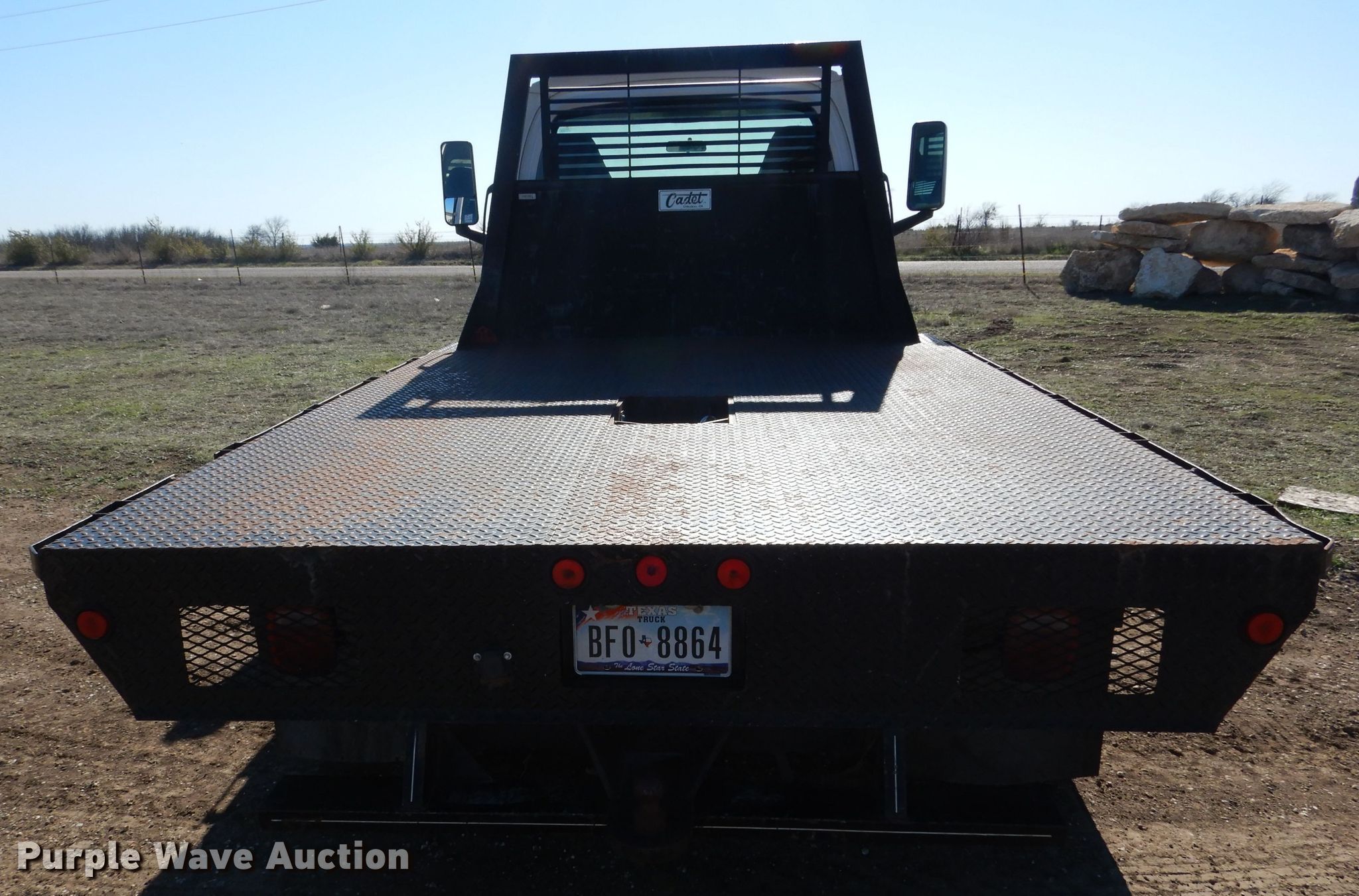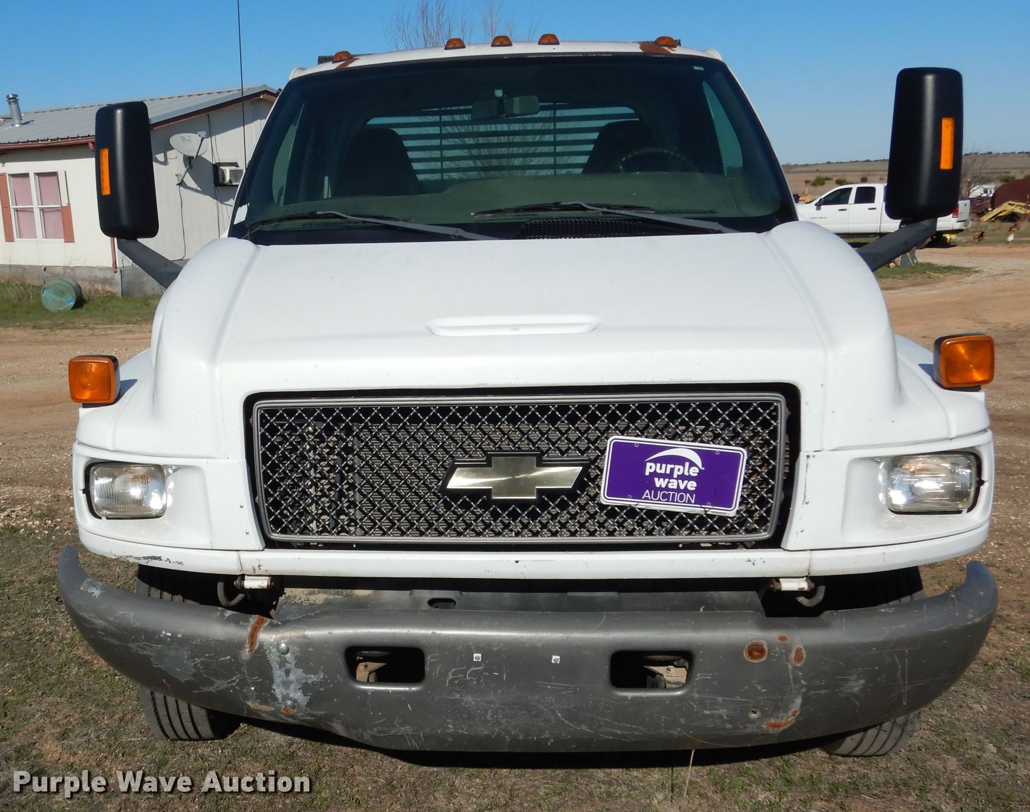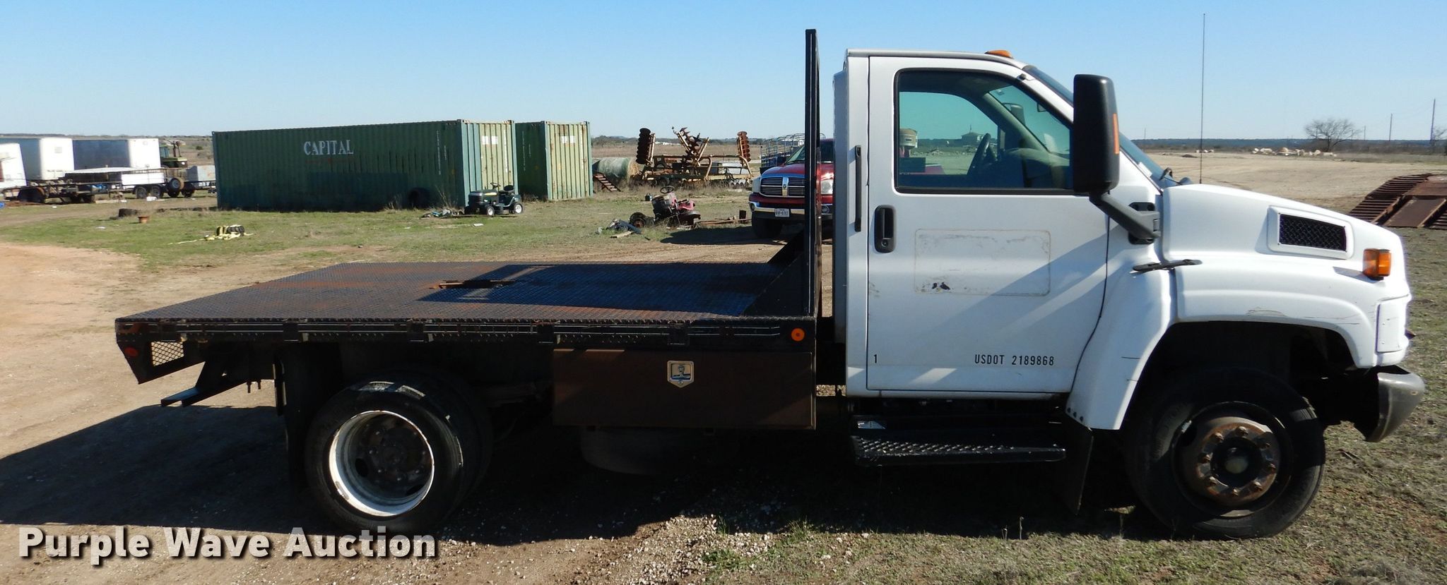 Purple Wave is selling a used Flat Bed Truck in Texas. This item is a 2005 Chevrolet C5500 flatbed truck with the following: 234,376 miles on odometer, 6.6L V8 diesel engine, Allison automatic transmission, Single axle, AC and heat, Power windows and locks, Brake controller, Cadet flatbed, 11'L x 92"W, Gooseneck hitch, Spring suspension, Hydraulic brakes, 157" wheelbase, 225/70R19.5 tires, GVWR 19,500 lbs, FAWR 7,000 lbs, RAWR 13,500 lbs, Cracked windshield