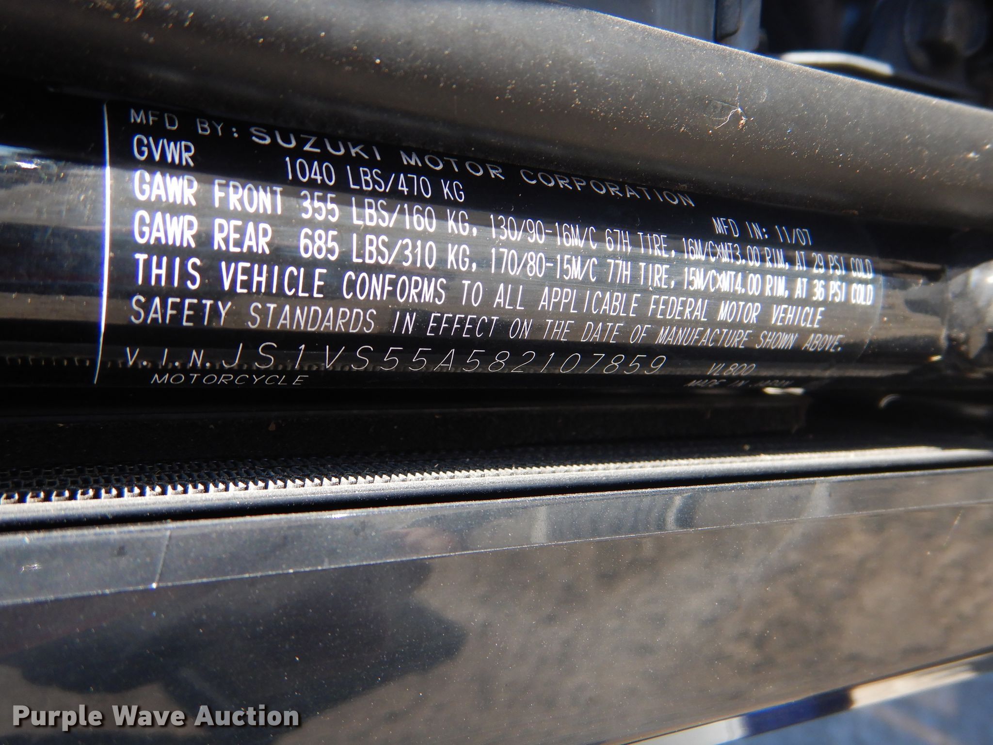 Purple Wave is selling a used Motorcycle in Oklahoma. This item is a 2008 Suzuki VL800 motorcycle with the following: 2,574 miles on odometer, 805 cc gas engine, Five speed manual transmission, 130.90-16 front tire, 170.80-15 rear tire