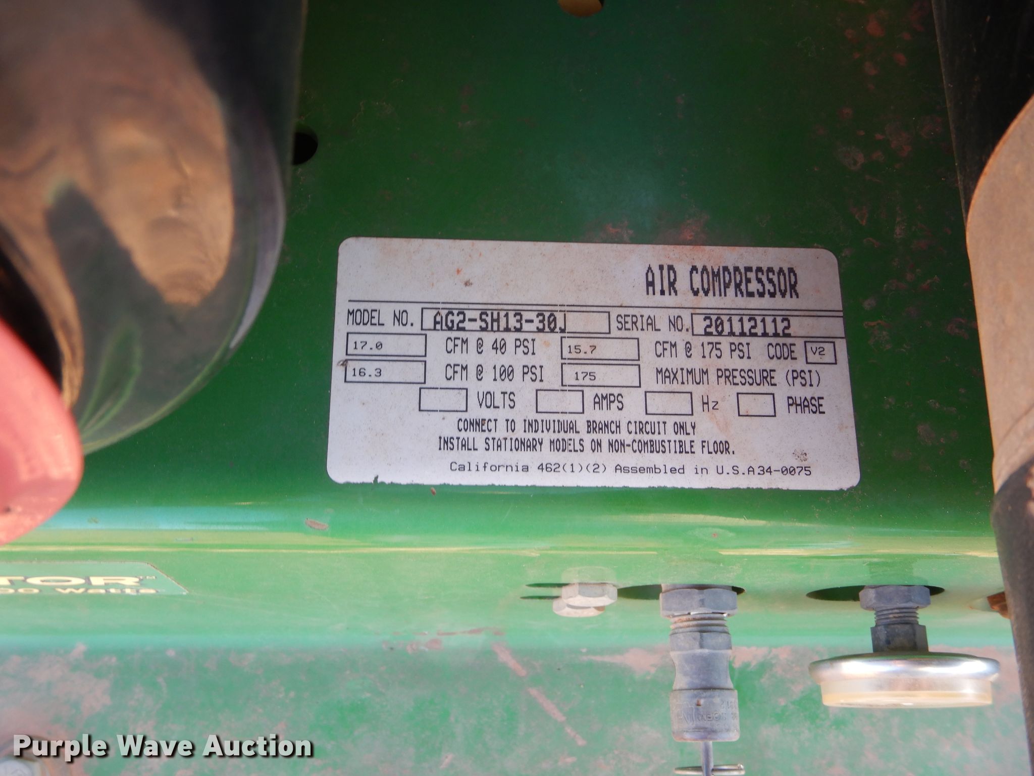 This John Deere AC2-CH35H-30 air compressor will sell to the highest bidder regardless of price.