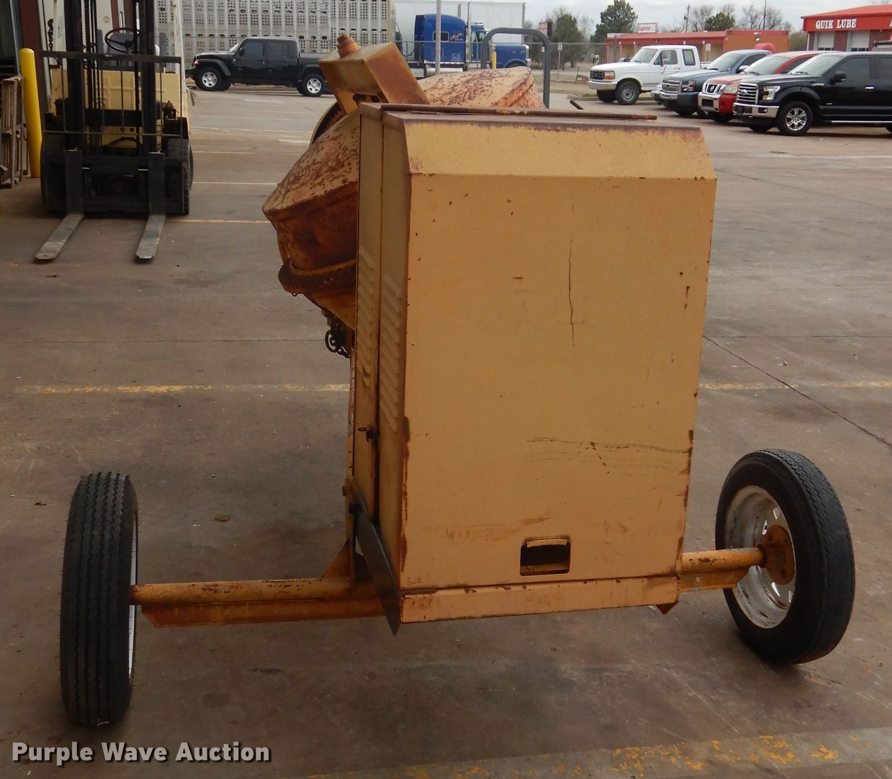 Purple Wave is selling a used Concrete Dispenser in Oklahoma. This item is a Concrete mixer with the following: Honda GX240 single cylinder gas engine, Approx. 18" drum, 4.80-12 tires, (2) additional tires